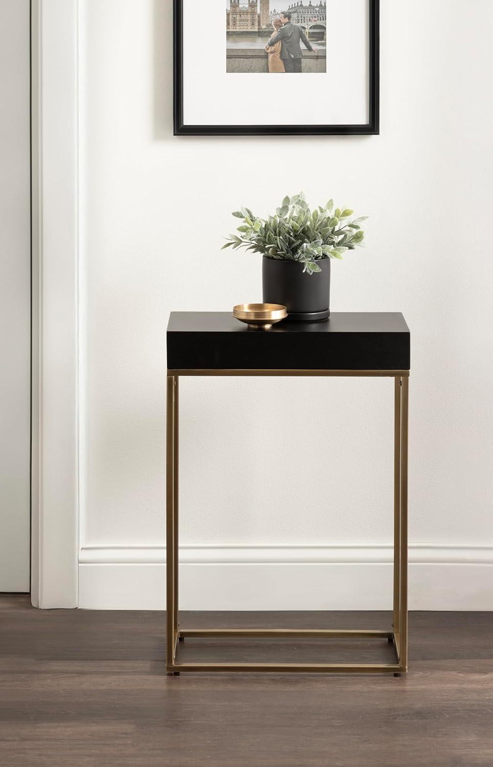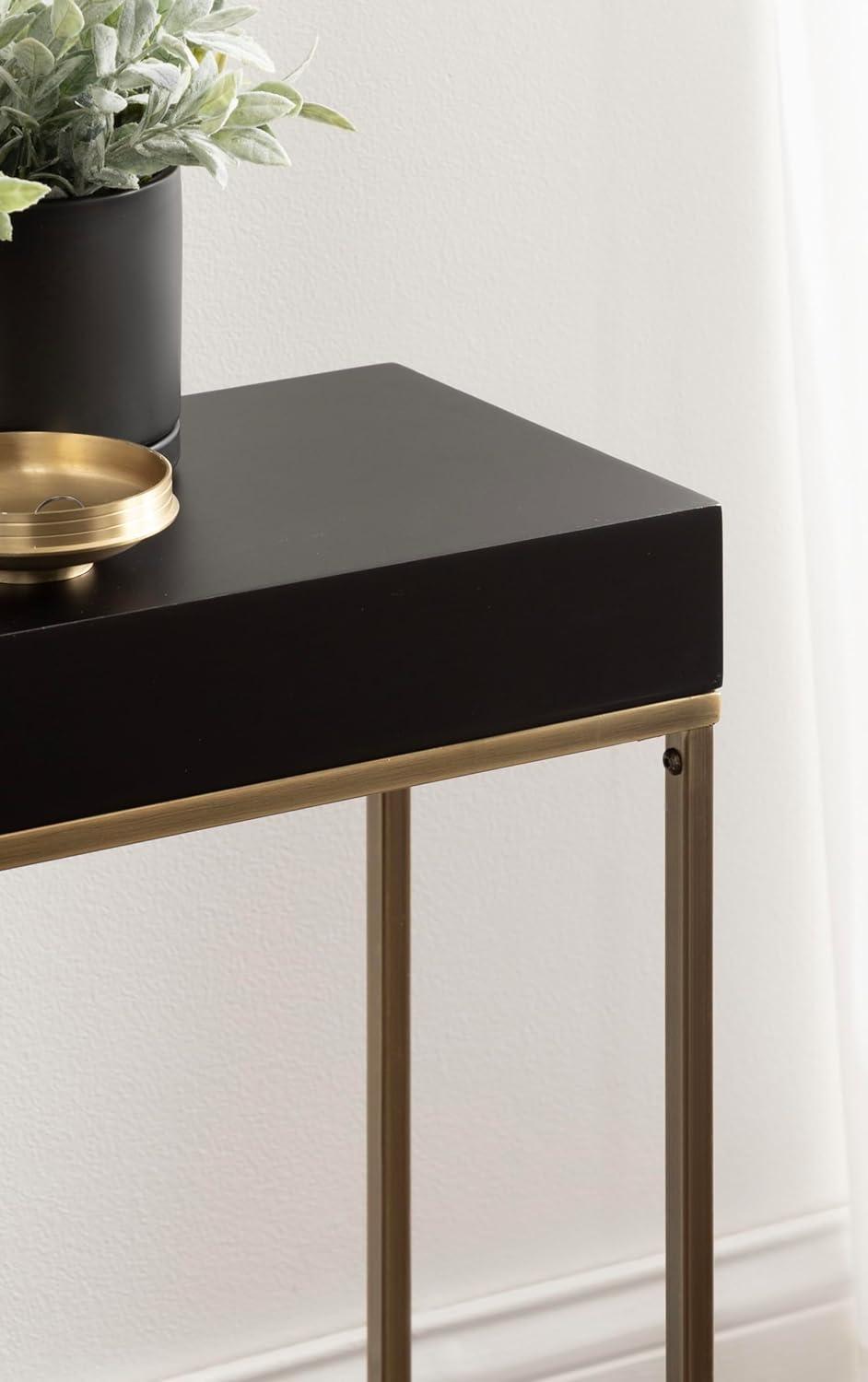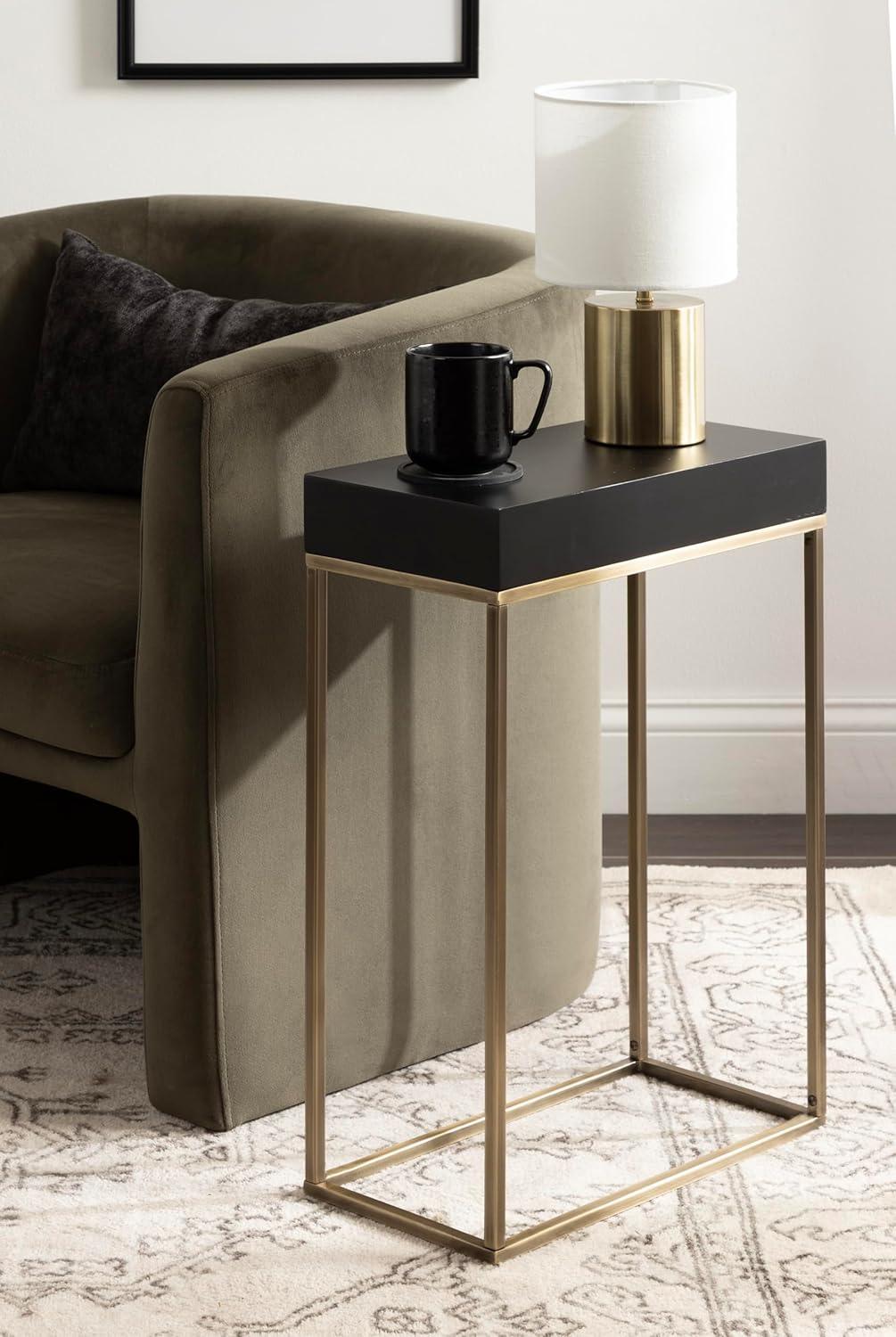 Kate and Laurel Karlsen Modern Wood and Metal Narrow Side Table, 16 x 8 x 24, Black and Antique Brass, Minimal Slim End Table for Use as Bedroom Nightstand or Accent Entryway or Living Room Decor(Gold/Black)
