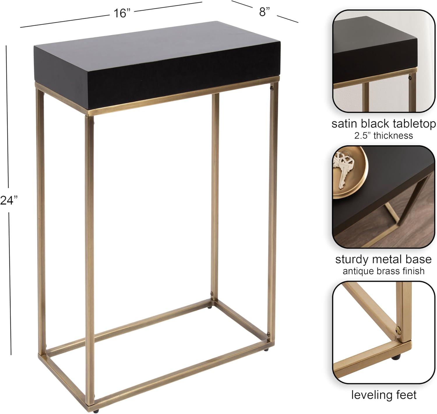 imageKate and Laurel Karlsen Modern Wood and Metal Narrow Side Table 16 x 8 x 24 Black and Antique Brass Minimal Slim End Table for Use as Bedroom Nightstand or Accent Entryway or Living Room DecorBlack