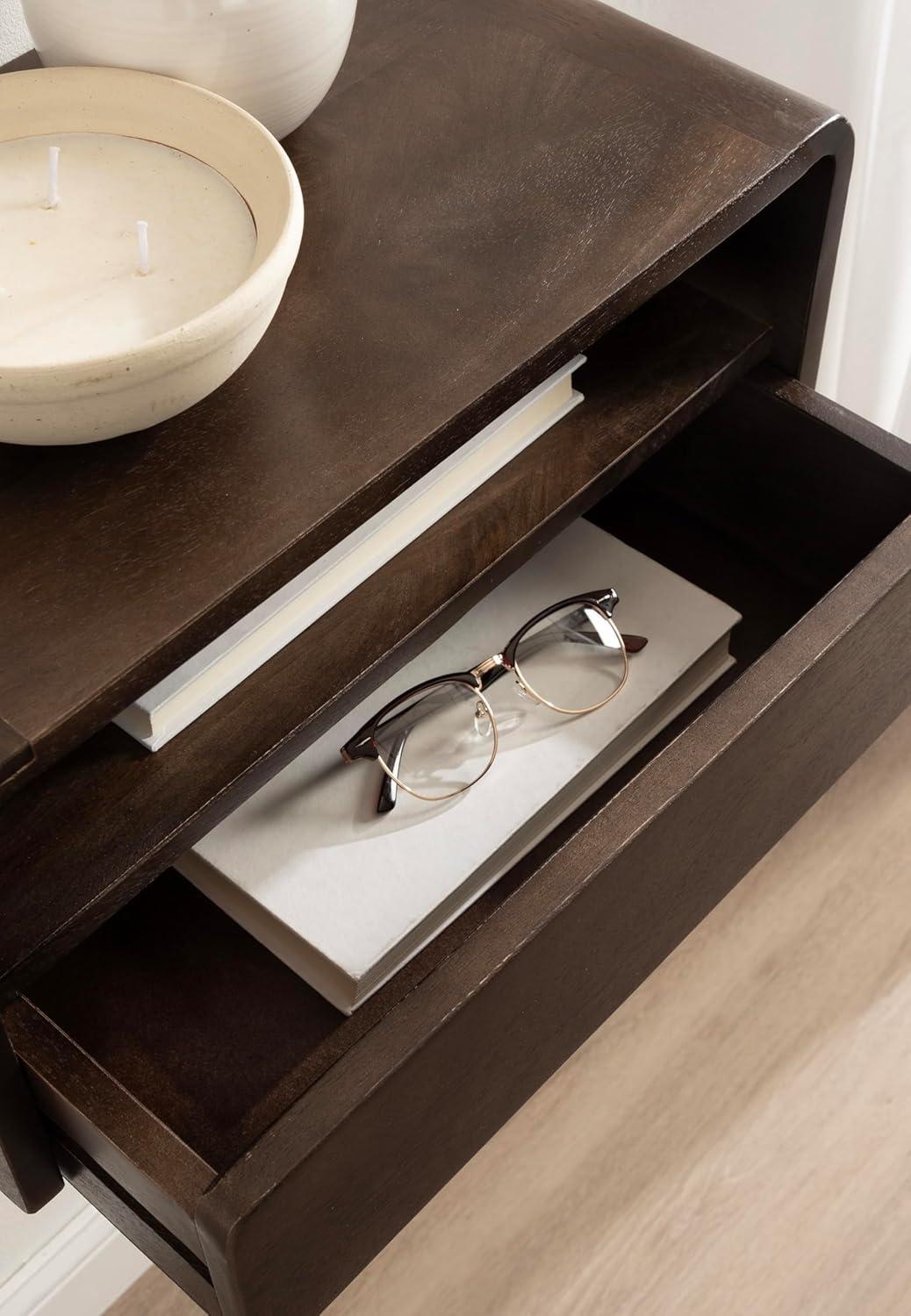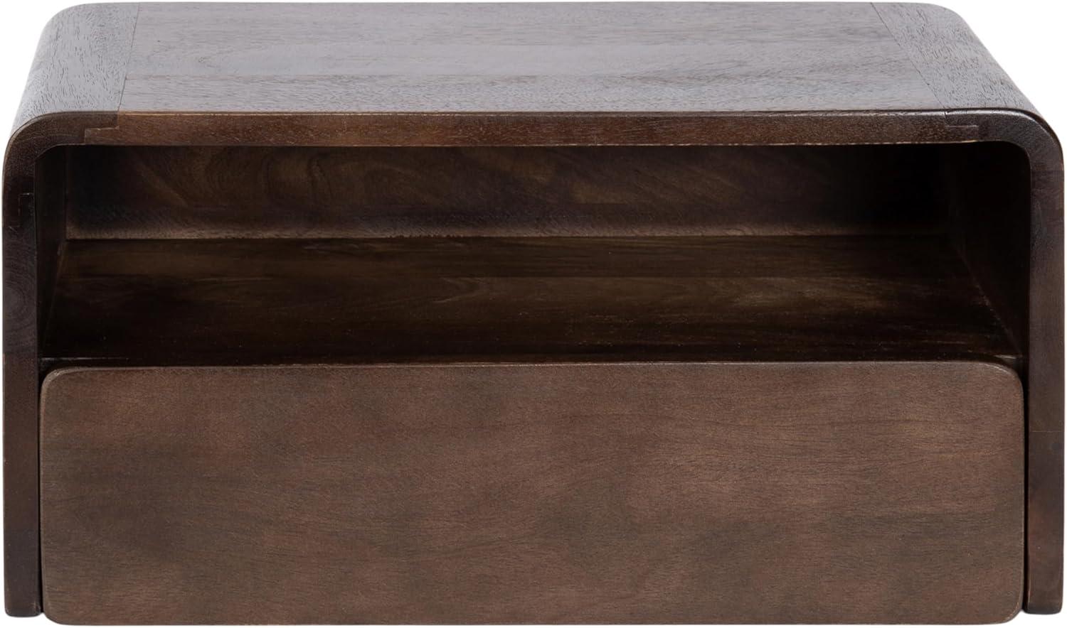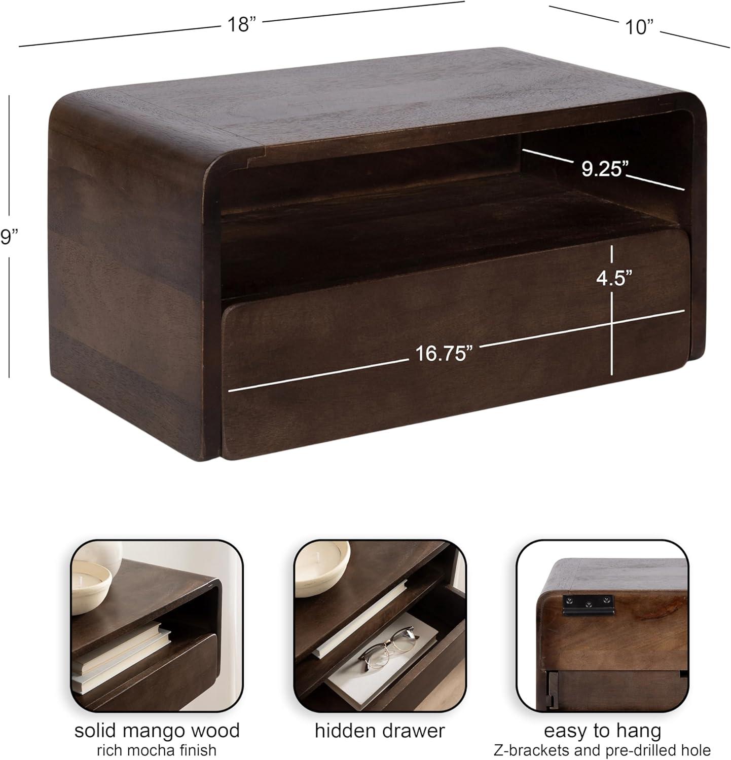 Kate and Laurel Kato Modern Mango Wood Floating Side Table with Drawer, 18 x 10 x 9, Dark Brown, Contemporary Wooden Floating Nightstand for Bedroom Bedside Table or Living Room Wall Storage(Dark Brown)