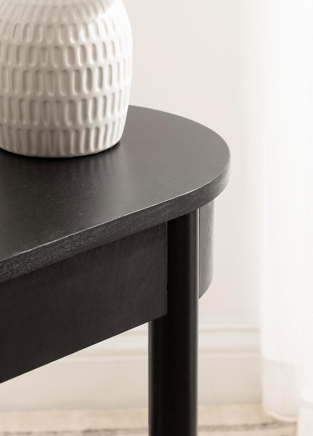 Showcase your transitional-inspired style with the Koji side table from Kate and Laurel. The dark and elegant finish of the wood adds a touch of sophistication to any space, while the simple and clean lines of the design make it easy to blend seamlessly with any decor style. The versatile black finish also lends itself to modern design, giving it that look of transitional, timeless decor. A careful blend of solid wood and resilient wooden material was used to create this beautiful side table, creating a statement that is as durable as it is beautiful. Its overall dimensions are 22 inches wide by 11.75 inches deep by 24 inches tall, allowing the table to function well in small corners, in a bedroom, near an entryway, or paired with living room furniture. The top wooden tier is perfect for creating a lovely display area for candles, small lamps, and other accents. The bottom tier of the Koji is great for storing your favorite household accessories, from small blankets to lush faux greenery. Assemble this table in only a matter of minutes with a straightforward, three-step assembly process.
