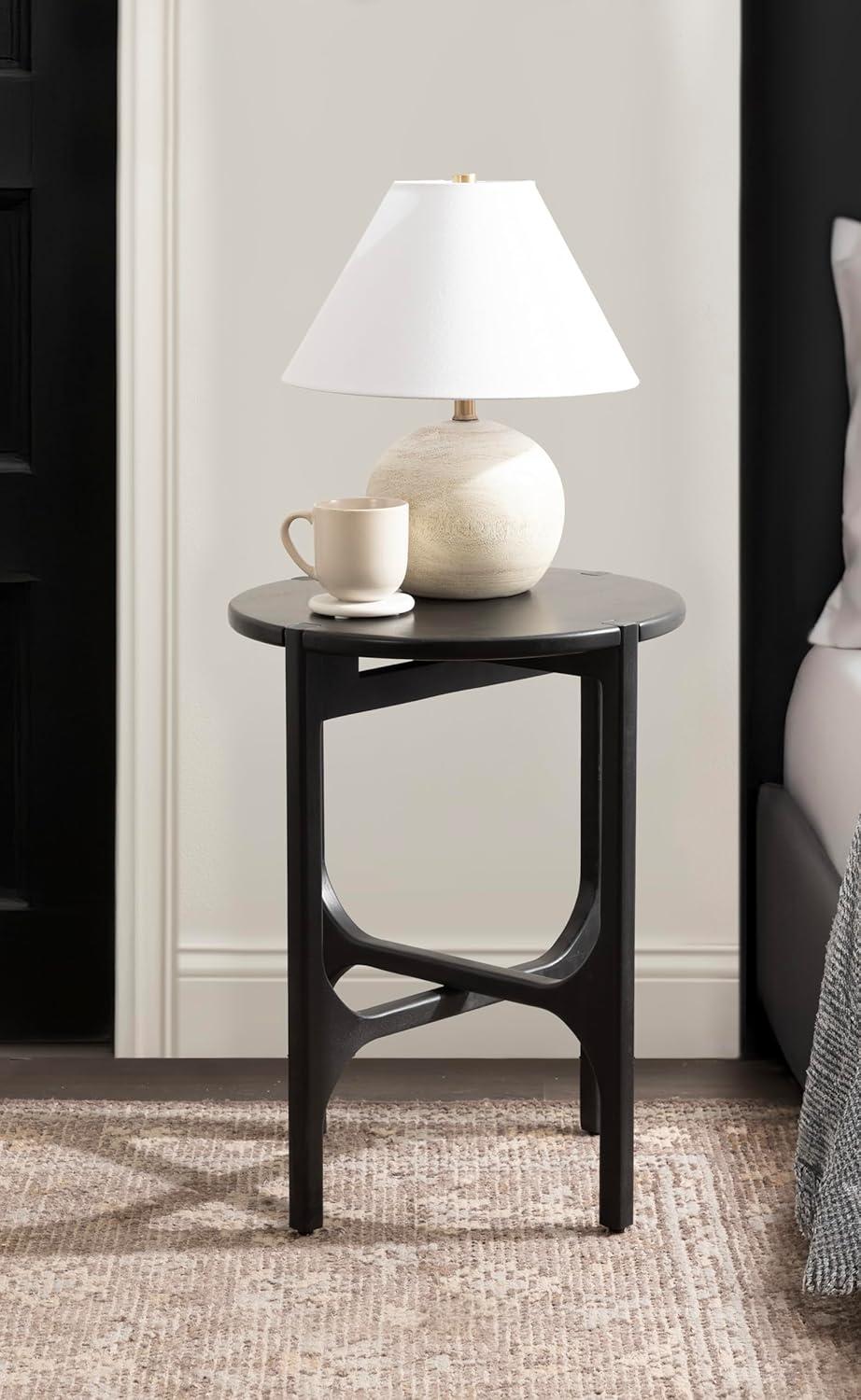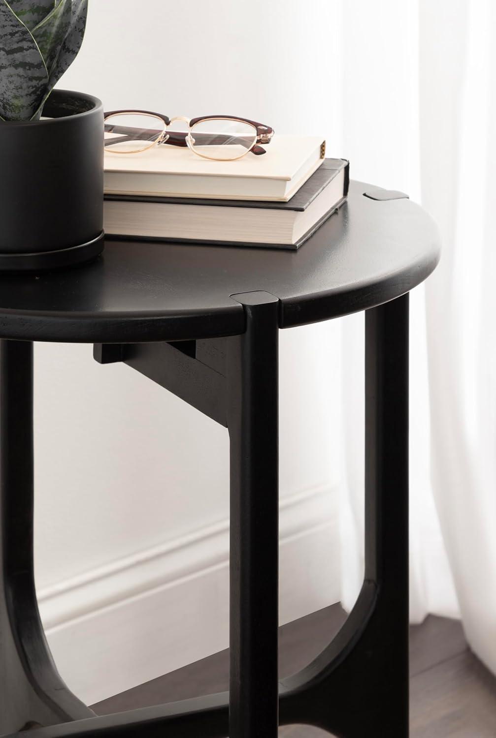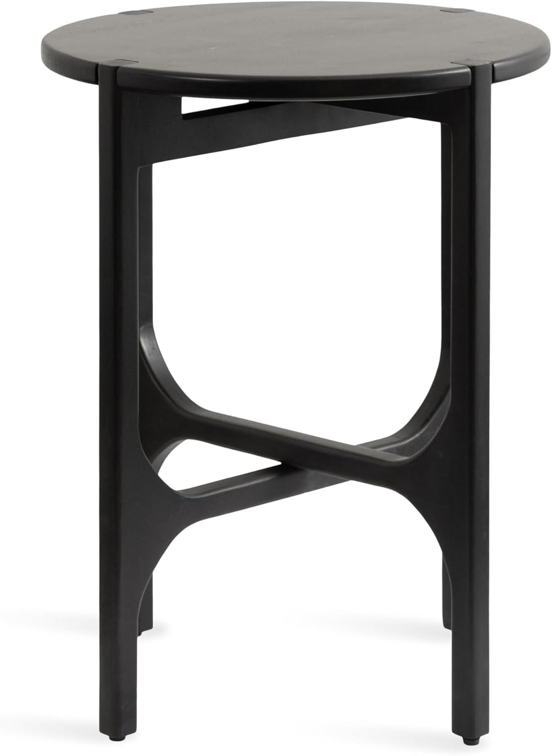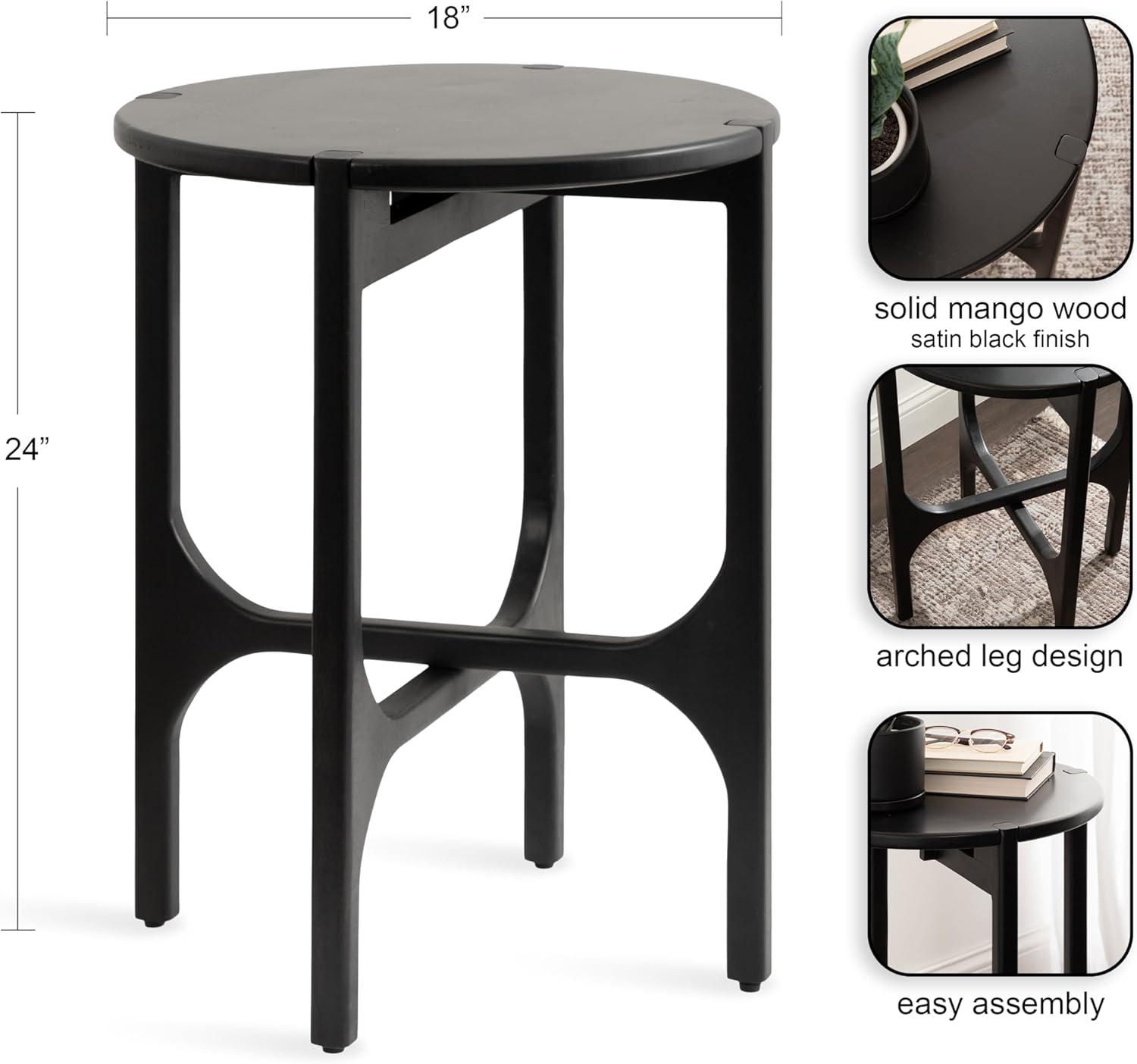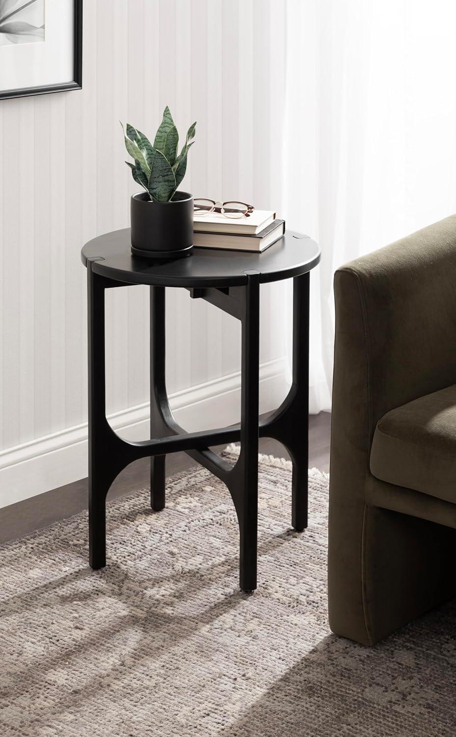 Showcase your modern-inspired style with the Kroscove round side table from Kate and Laurel. The natural and elegant walnut brown finish of the wood adds a touch of sophistication to any space, while the unique arched curvature of the base makes it easy to blend seamlessly with any decor style. The curved geometric shape of the table legs makes it a youthful living room accent table. The walnut finish also lends itself to modern design, giving it that look of transitional yet contemporary decor. A careful selection of solid mango wood was used to create this beautiful side table, creating a statement that is as durable as it is beautiful. Its overall dimensions are 18 inches in diameter by 24 inches tall, allowing the Kroscove to function well in small corners, next to a bed, near an entryway, or paired with living room furniture. This geometric table boasts sturdy legs to ensure stability and is perfect for creating a curated display area for candles, small lamps, and other accents. Assemble this table in only a matter of minutes with a straightforward, three-step assembly process.