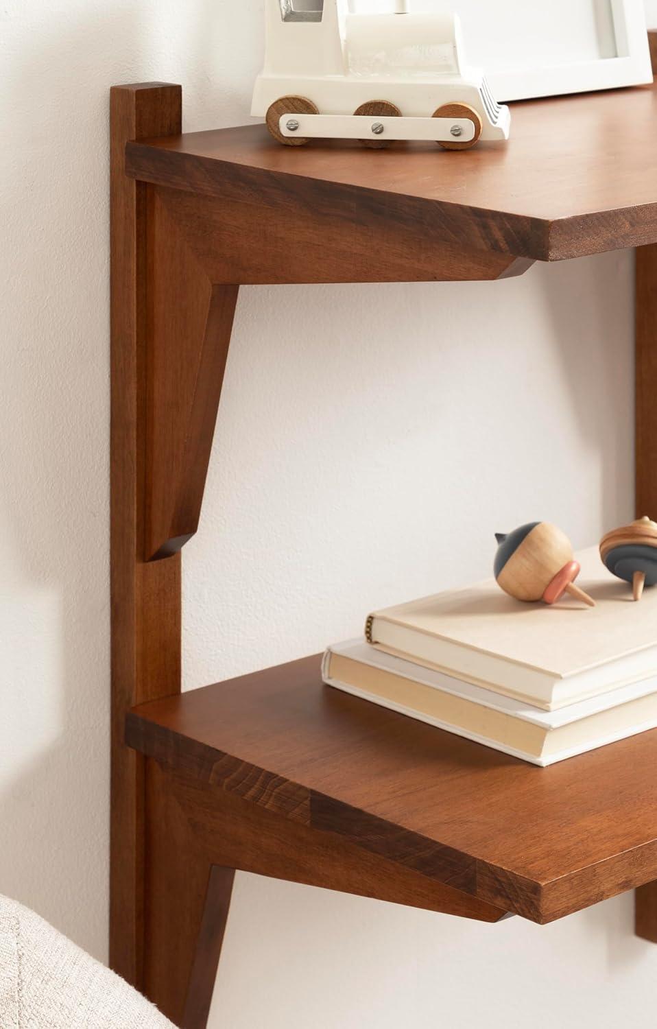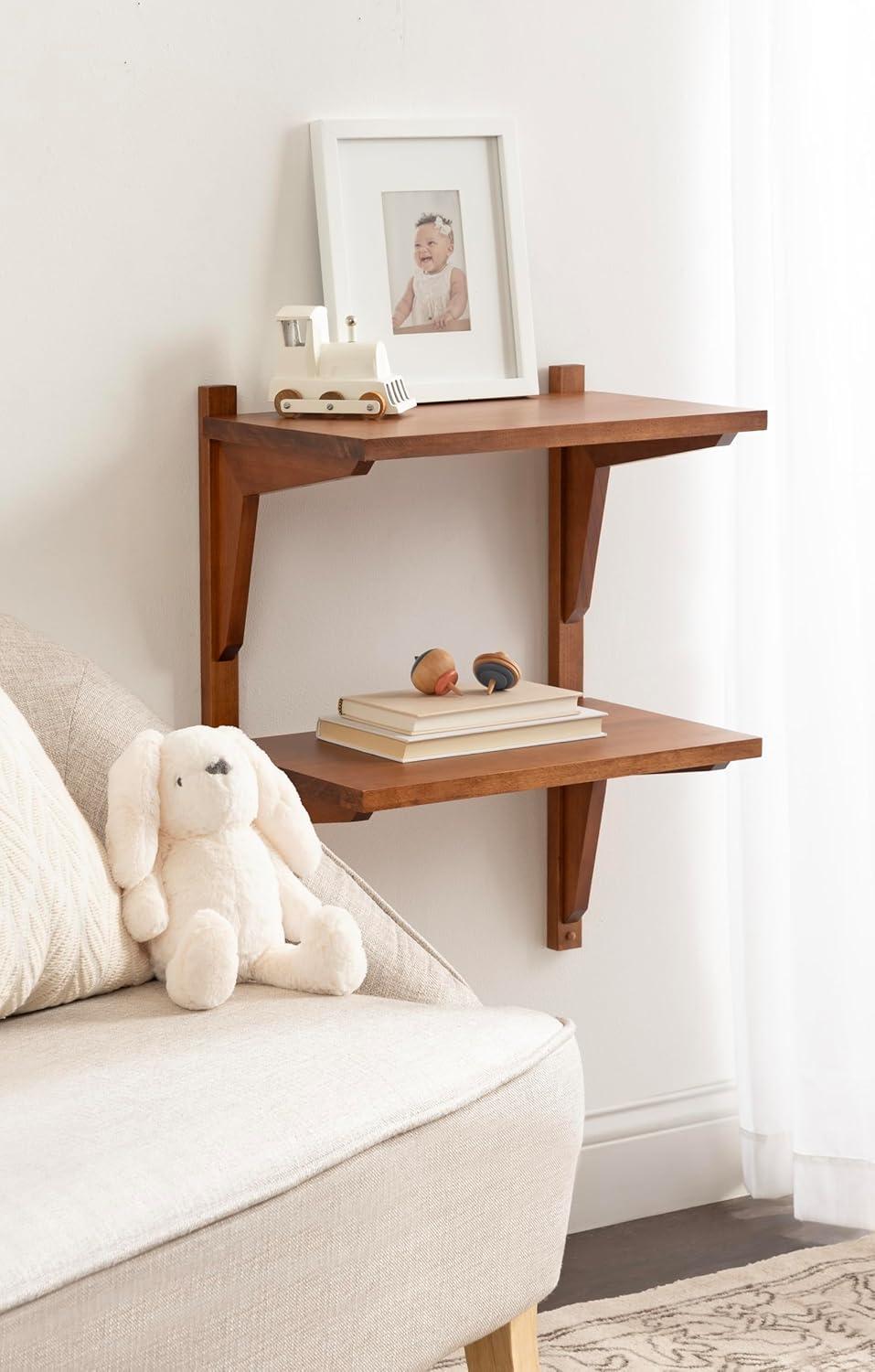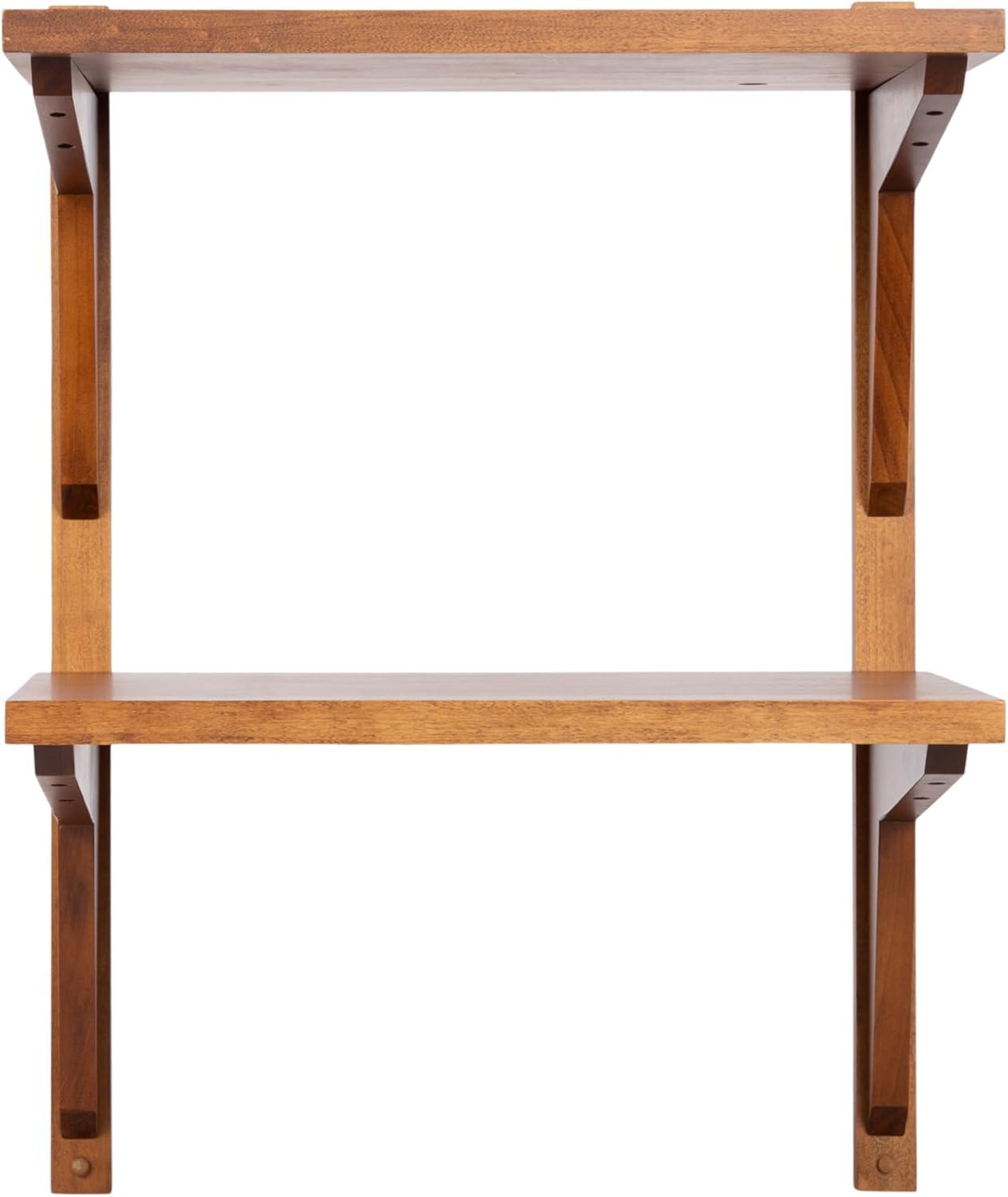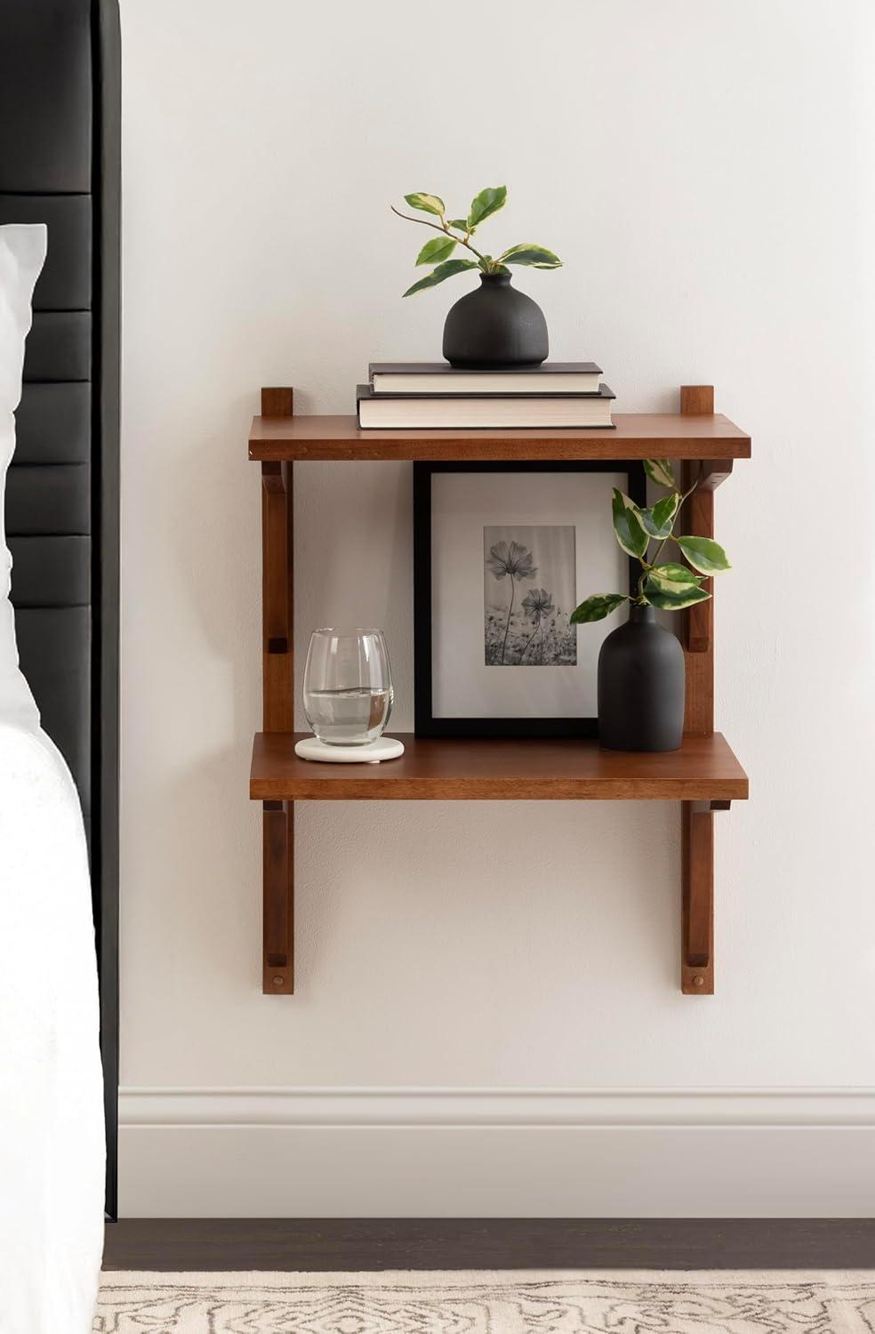 Introducing the Meridien floating side table – the perfect addition to your bedroom or living space! This modern floating wall shelf is designed to add functionality and style to any room with its two tiers and sleek design. The natural rustic wood finish adds warmth and individuality to your decor, making it a versatile piece that complements various interior styles. Featuring a simple, convenient design, this tiered wood side table provides stylish storage space for your essentials, such as books, remotes, and other small items. The floating design of this side table creates a unique and modern look, adding an aesthetic touch to your room. It is easy to install with the included hardware, making it a hassle-free addition to your home. The floating design also helps to create an illusion of more space, making it a great choice for a floating shelf in small rooms or apartments. Made from shaped solid wood, this floating side table is built to last. Measuring at 18 inches wide by 12 inches deep by 24 inches tall, this compact side table is ideal for small spaces, making it perfect for use as a bedside table or as a space-saving solution in any room. Whether you use it as a floating shelf or a sleek side table, it is sure to enhance the functionality and style of your room. After a simple, two-step assembly, you can showcase this floating table wherever it fits best in your space. Add a touch of modern sophistication to your home with this versatile and stylish floating side table!