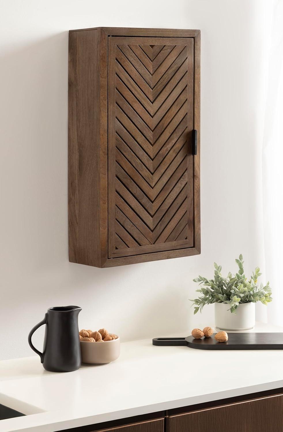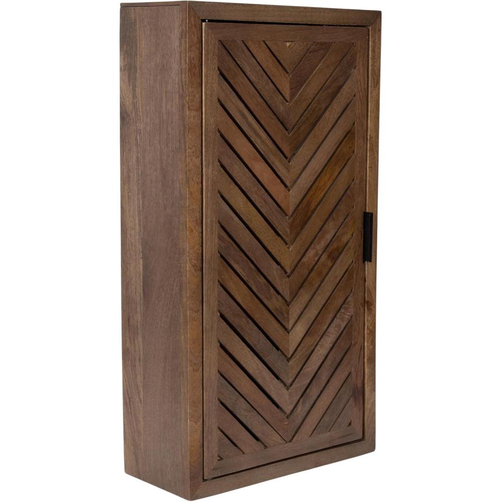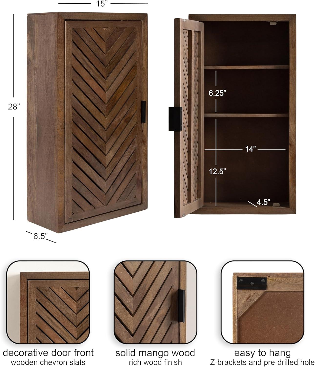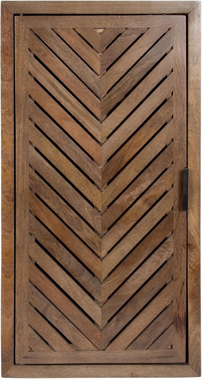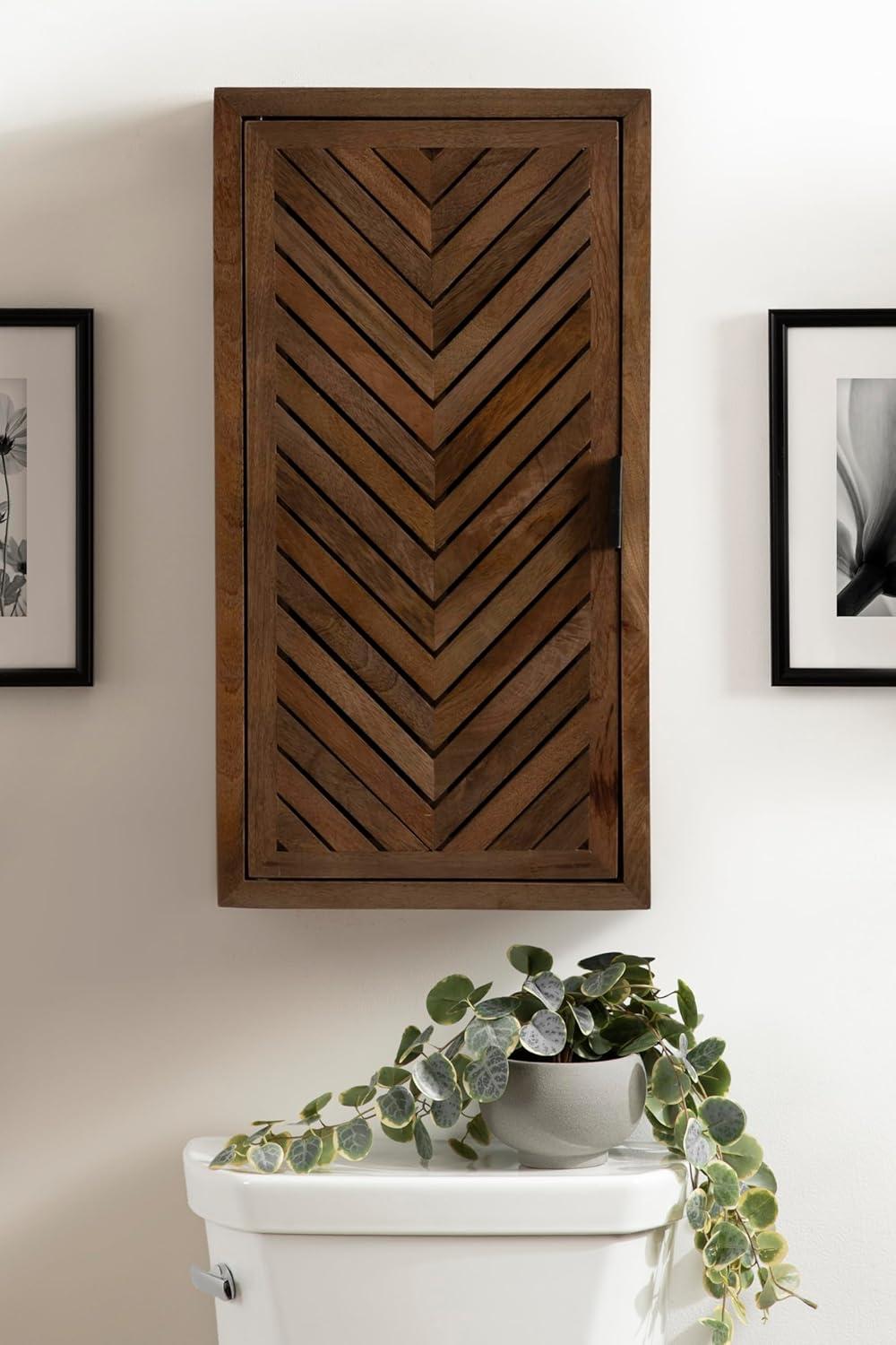 Kate and Laurel Mezzeta Decorative Modern One-Door Floating Bathroom Cabinet, 15 x 7 x 28, White, Decorative Over Toilet Storage Cabinet Made from Solid Mango Wood with Slatted Chevron Design(Brown)