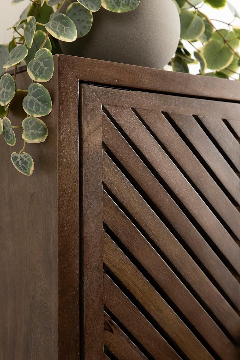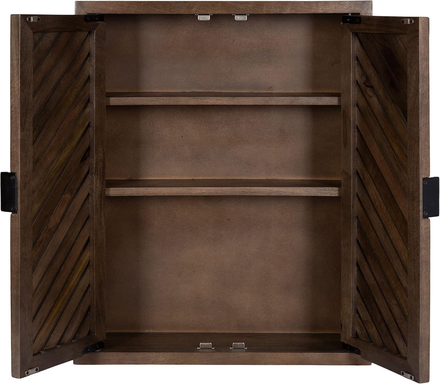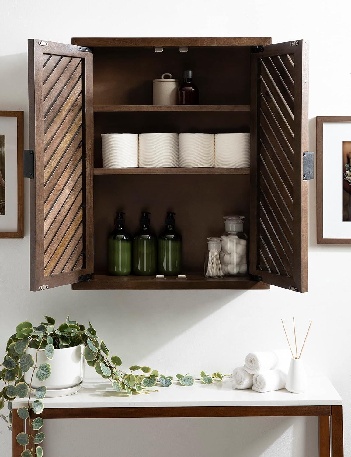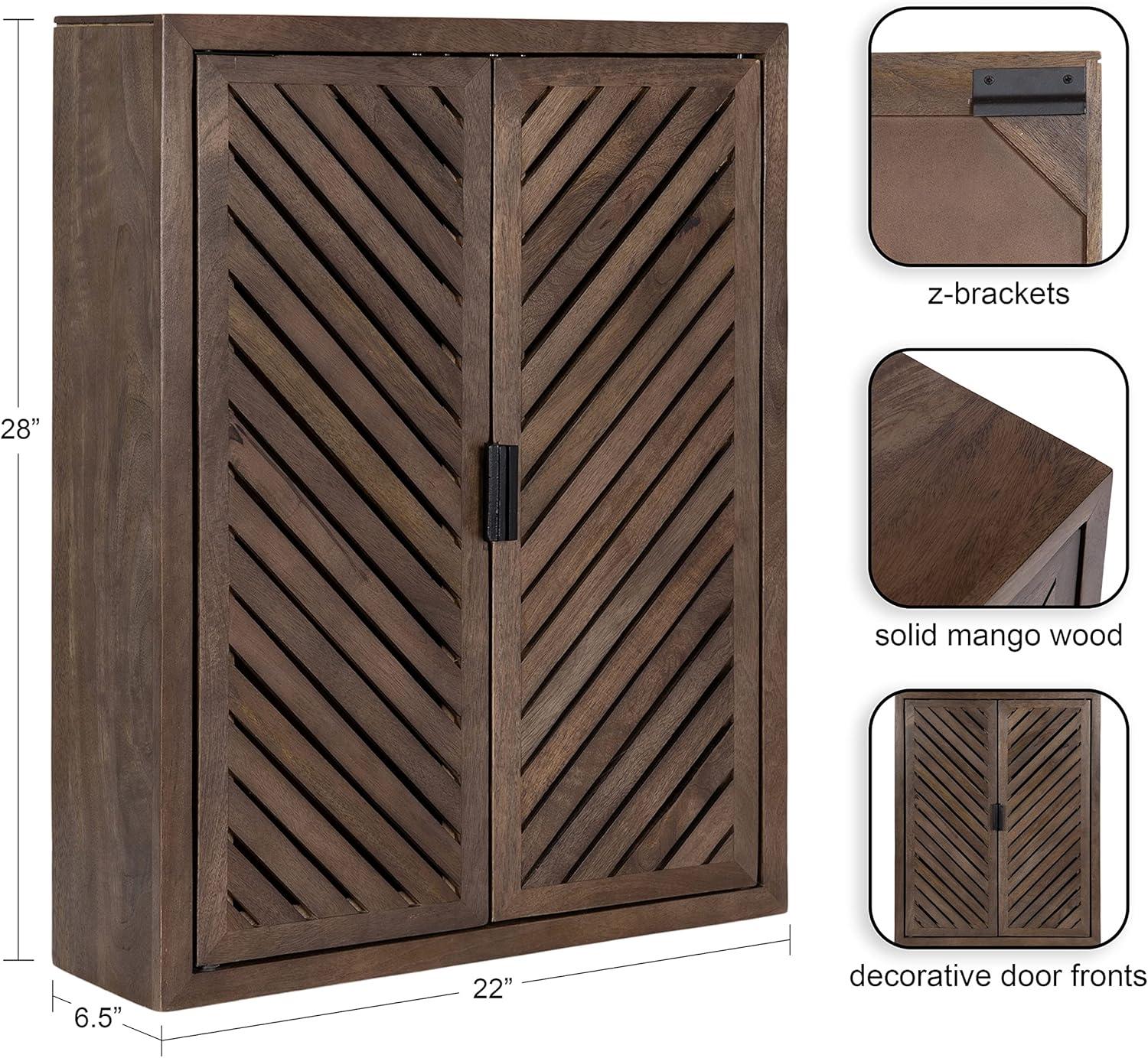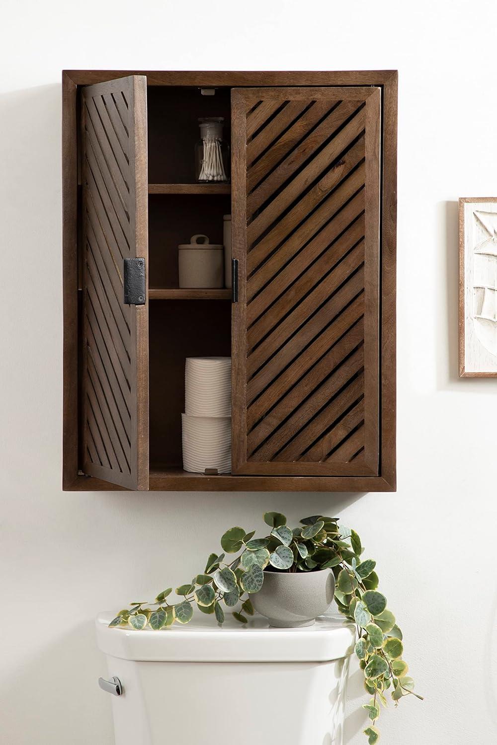 Kate and Laurel Mezzeta Decorative Modern One-Door Floating Bathroom Cabinet, 15 x 7 x 28, White, Decorative Over Toilet Storage Cabinet Made from Solid Mango Wood with Slatted Chevron Design(Brown)