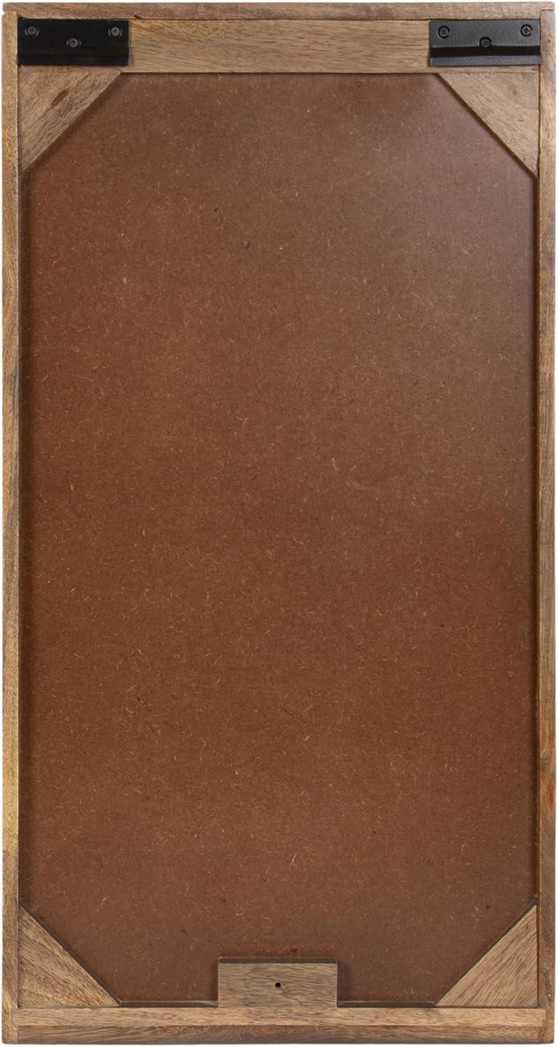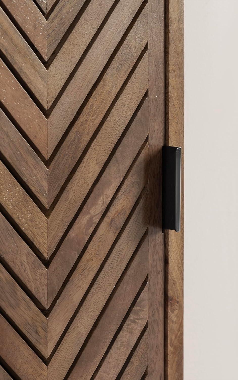 Store bathroom items, kitchen must-haves, small books, and more in this organic modern-inspired wall cabinet from Kate and Laurel. The Mezzeta cabinet has a mango wood composition, constructed in India by artisans and crafted by hand to give it a one-of-a-kind look and construction. It also features a soft white finish to give it a clean, modern look. The chevron arrows and black metal pulls also elevate this minimal modern design to blend into any boho decor. This wall cabinet's overall dimensions are 15 inches wide by 6.5 inches deep by 28 inches tall, making it an ample storage utility that doesn't take up too much space on your wall. The Mezzeta cabinet is fantastic for housing your books, towels, and other everyday essentials, or you can use it as a functional space for small plates, mugs, and cups. Due to its size, the Mezzeta wall cabinet is perfect for use in a bedroom, living room, or even in a nursery to store toys, diapers, and overall childhood clutter. Your items will be secure thanks to the doors kept closed by magnetic clasps. The Mezzeta wall cabinet hangs on your wall in a matter of seconds, thanks to the metal Z-brackets that are securely attached to the back of the wooden frame.