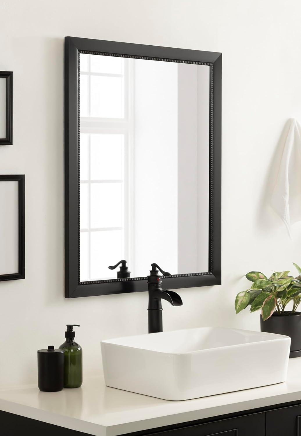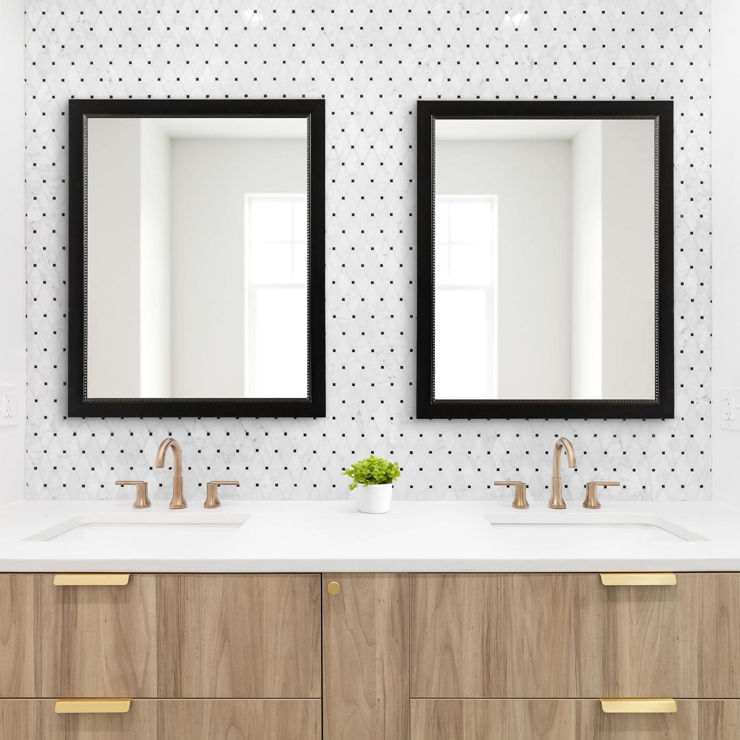Perfect Bathroom Mirror for Over Sink: At 21.25 inches wide by 27.25 inches high, this black bath mirror works well with a single vanity or hang two side by side for a double vanity