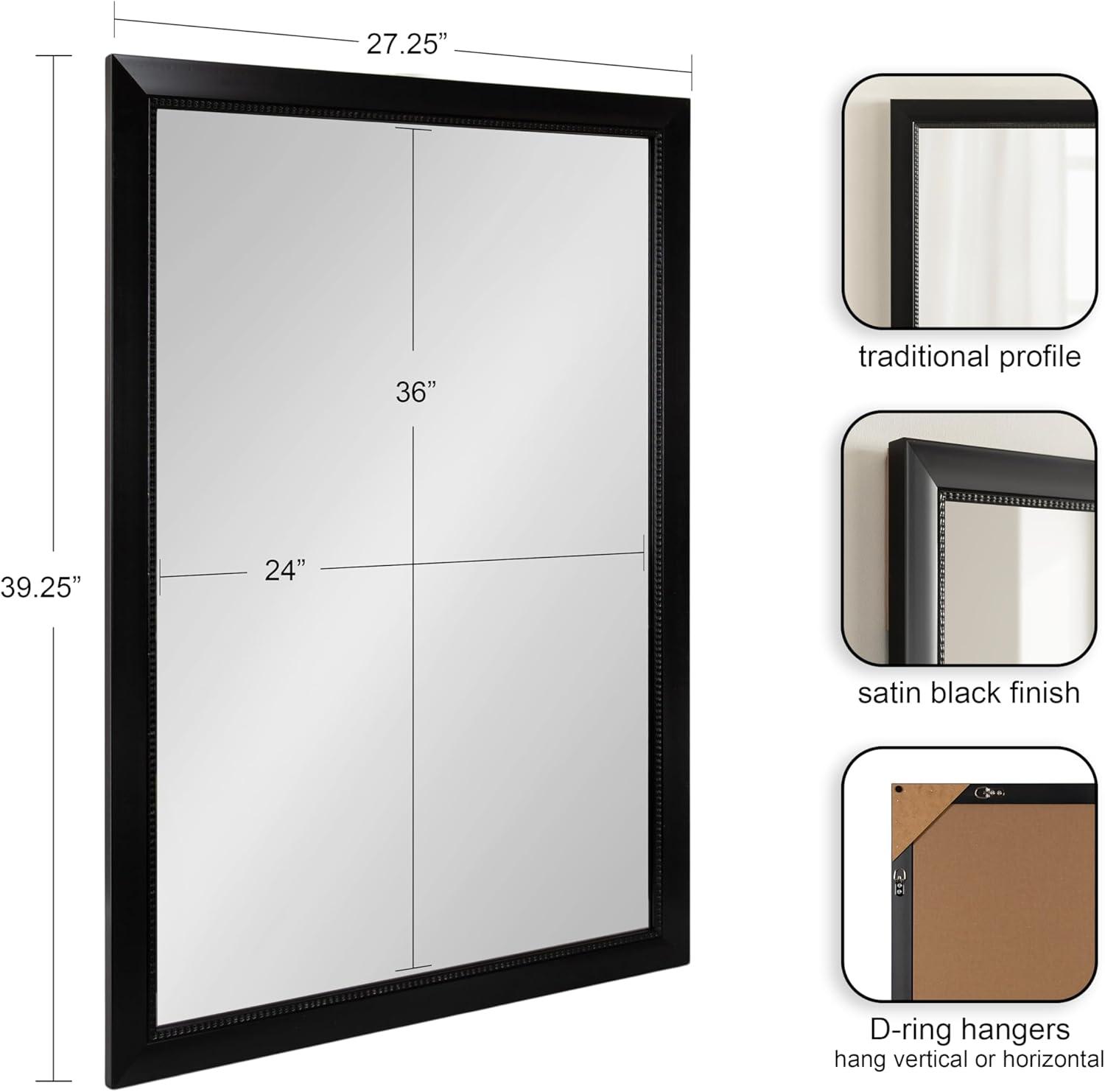 Vintage Textured Bathroom Mirror Design: The Monetta wall mirror features a satin black frame with a textured frame edge that makes it a charming statement piece