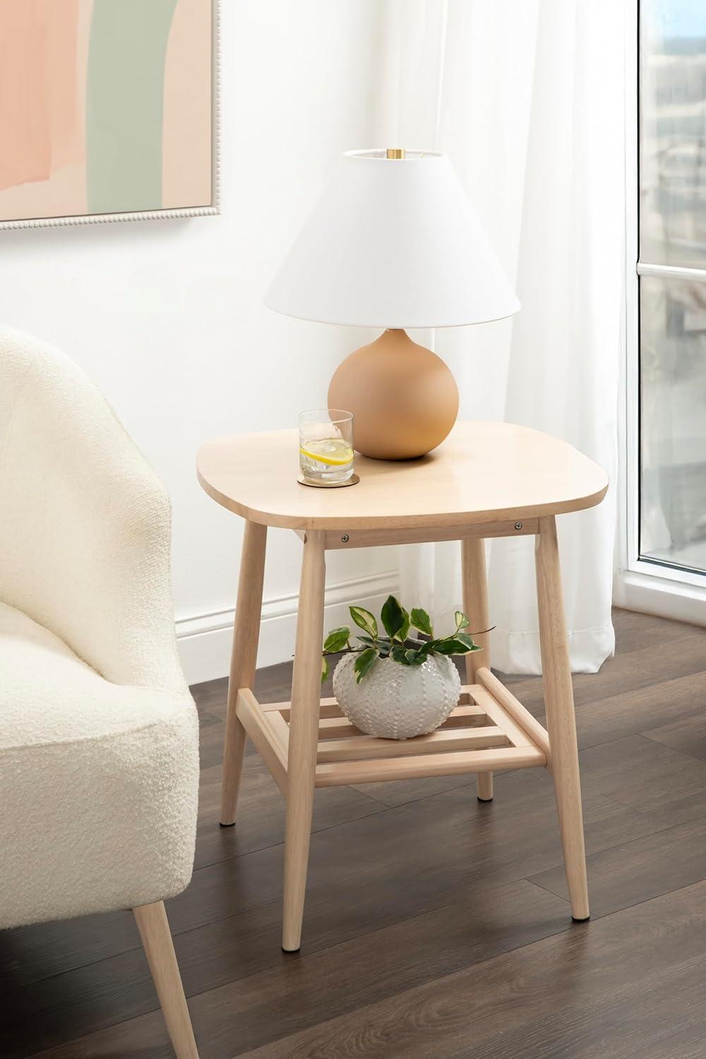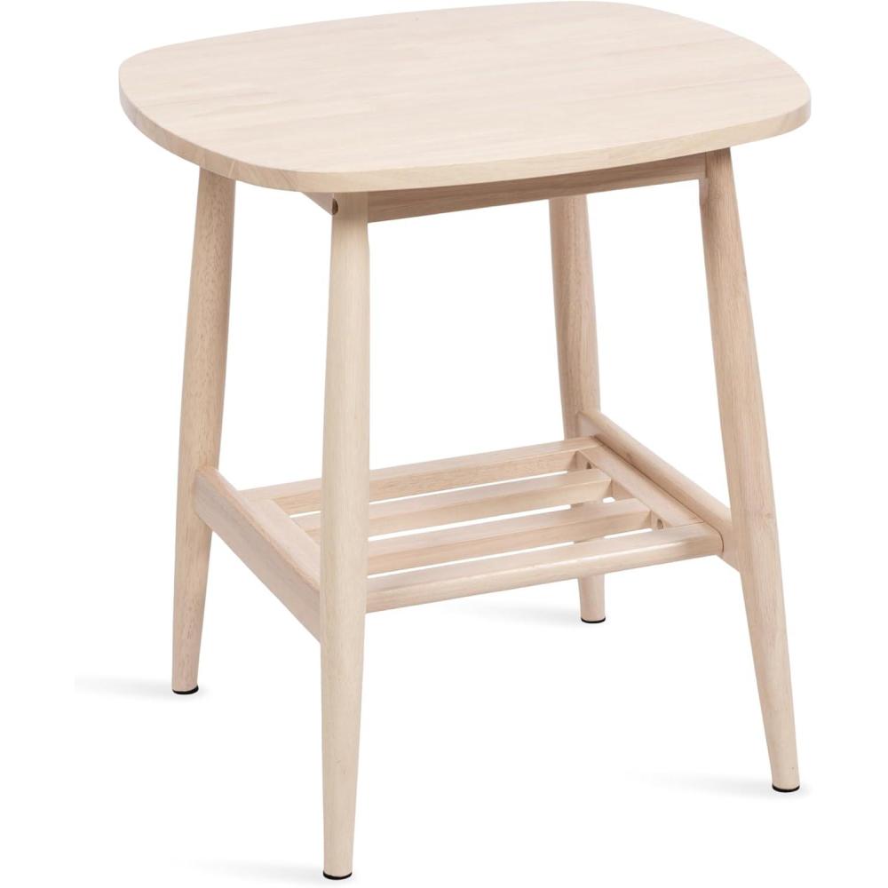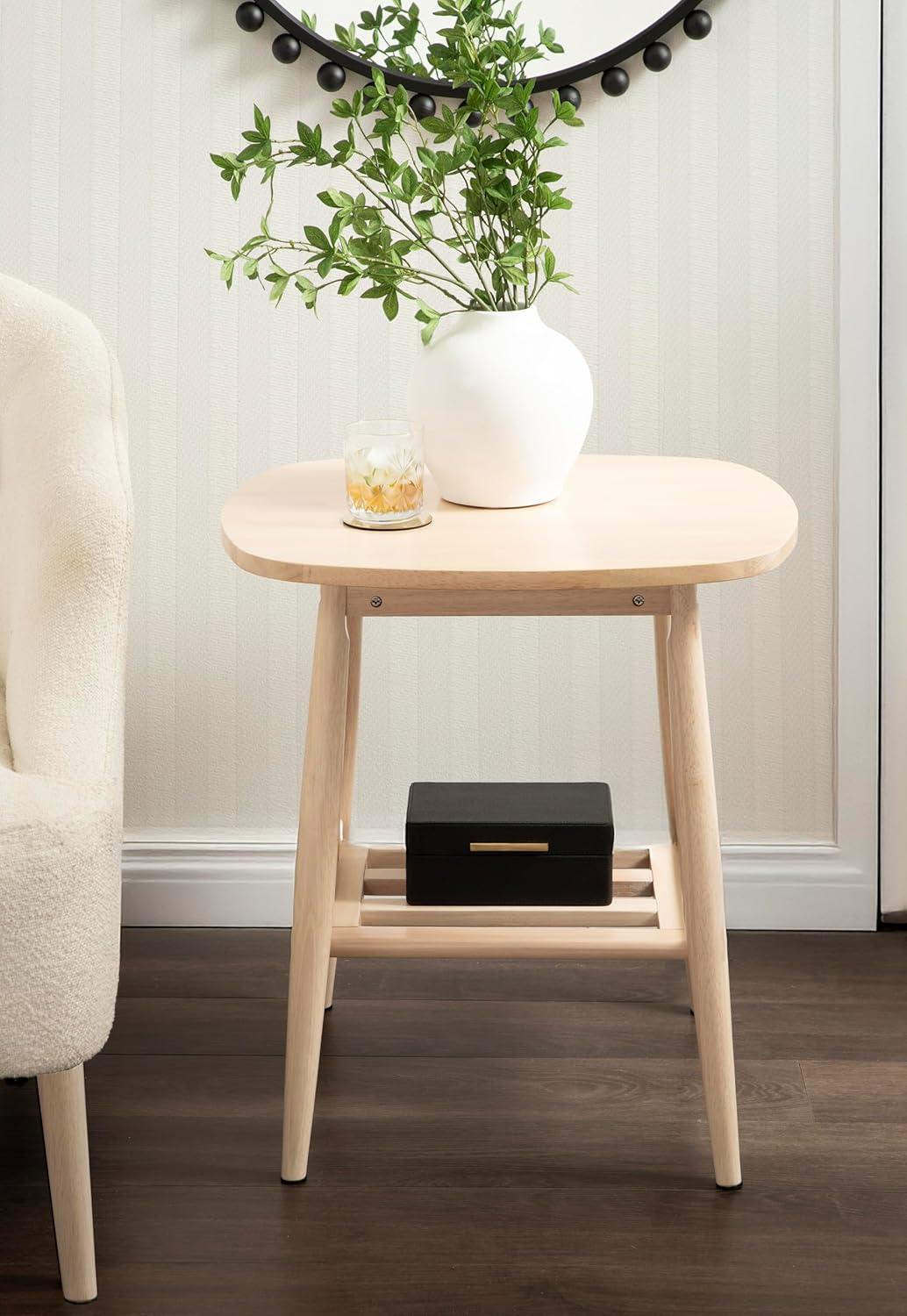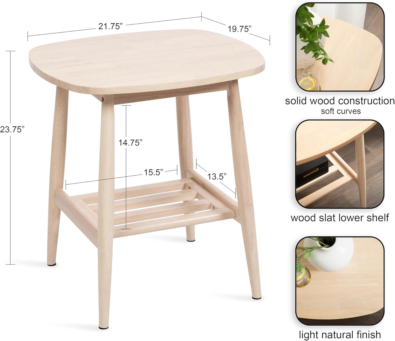 Showcase your modern-inspired style with the Nilas rectangle side table from Kate and Laurel. The light, natural finish of the wood adds a touch of sophistication to any space, while the simple and clean lines of the design make it easy to blend seamlessly with any decor style. The finish also lends itself to versatile design, giving it that look of timeless decor. Solid rubberwood is used to create this stunning living room table, crafting a statement that is as durable as it is beautiful. Its overall dimensions are 21.75 inches wide by 19.75 inches deep by 23.75 inches tall, allowing the Nilas to function well as a living room focal point or as a bedroom nightstand. The top wooden tier of this side table is perfect for creating a lovely display area for candles, small lamps, books, and other accents. The slatted bottom tier of the Nilas is great for storing your favorite household accessories, from storage baskets to books. Assemble this end table in only a matter of minutes with a simple, four-step assembly process.