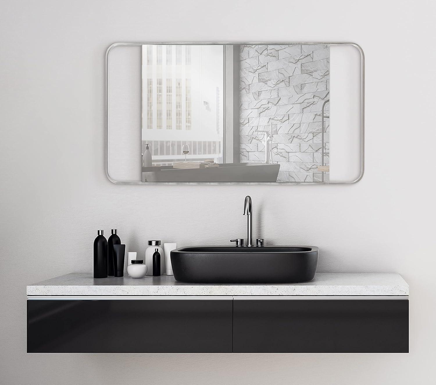 MODERN DESIGN: The Nobles mirror features a rounded rectangle frame that extends beyond the glass, giving the reflective surface a floating quality that captures the eye
