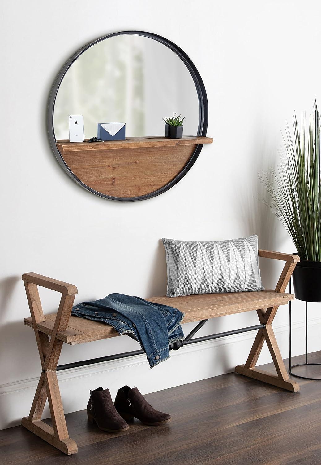 Kate and Laurel Owing Farmhouse Metal Framed Round Mirror with Wood Shelf, 30 inch Diameter, Rustic Brown and Black, Large Modern Mirror for Wall