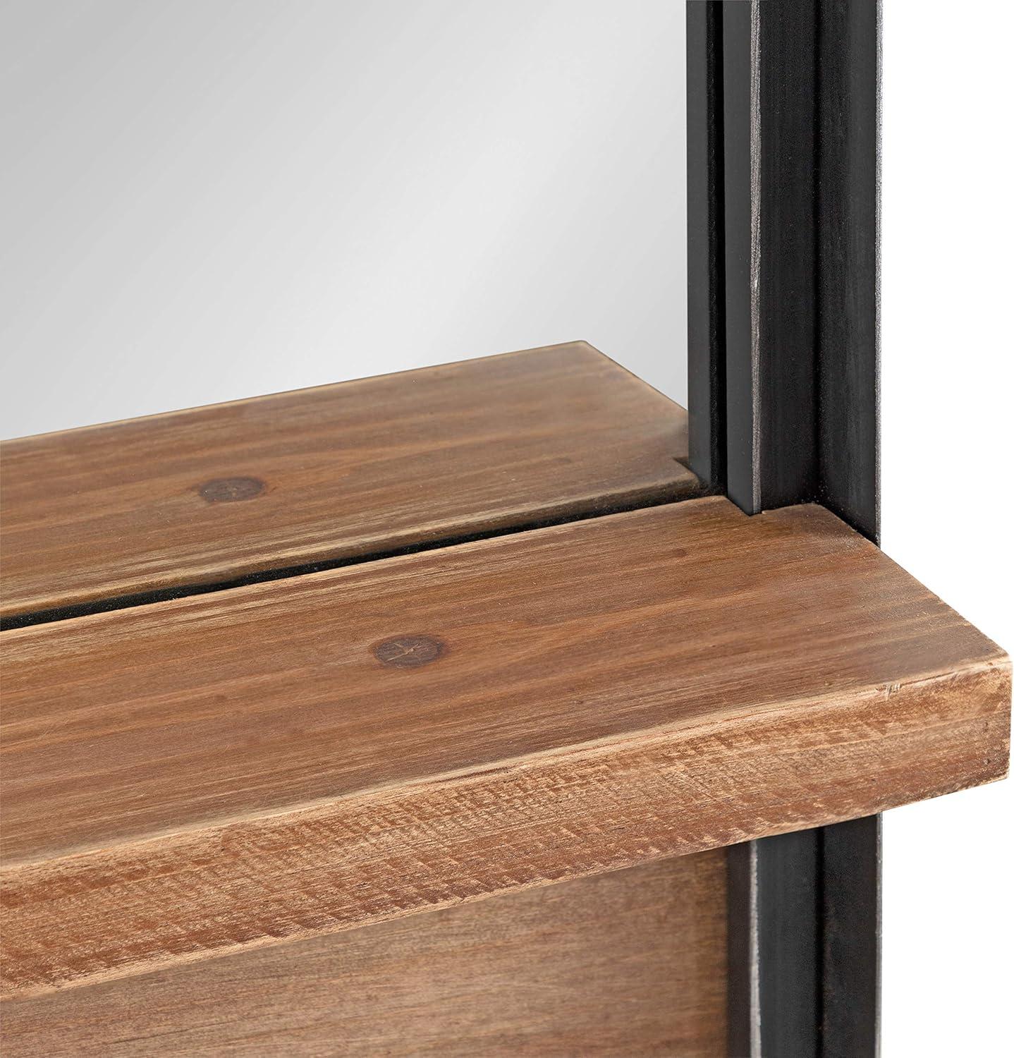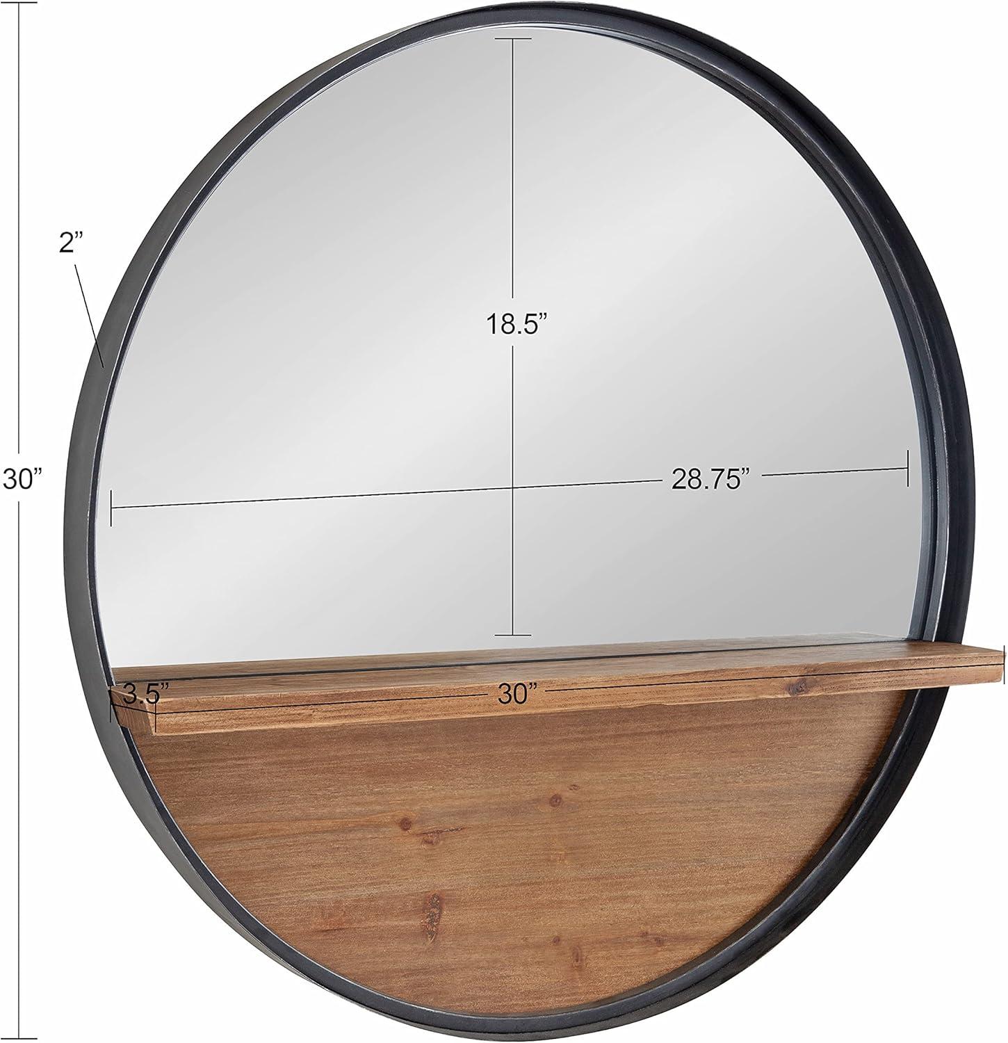 imageKate and Laurel Owing Farmhouse Metal Framed Round Mirror with Wood Shelf 30 inch Diameter Rustic Brown and Black Large Modern Mirror for Wall