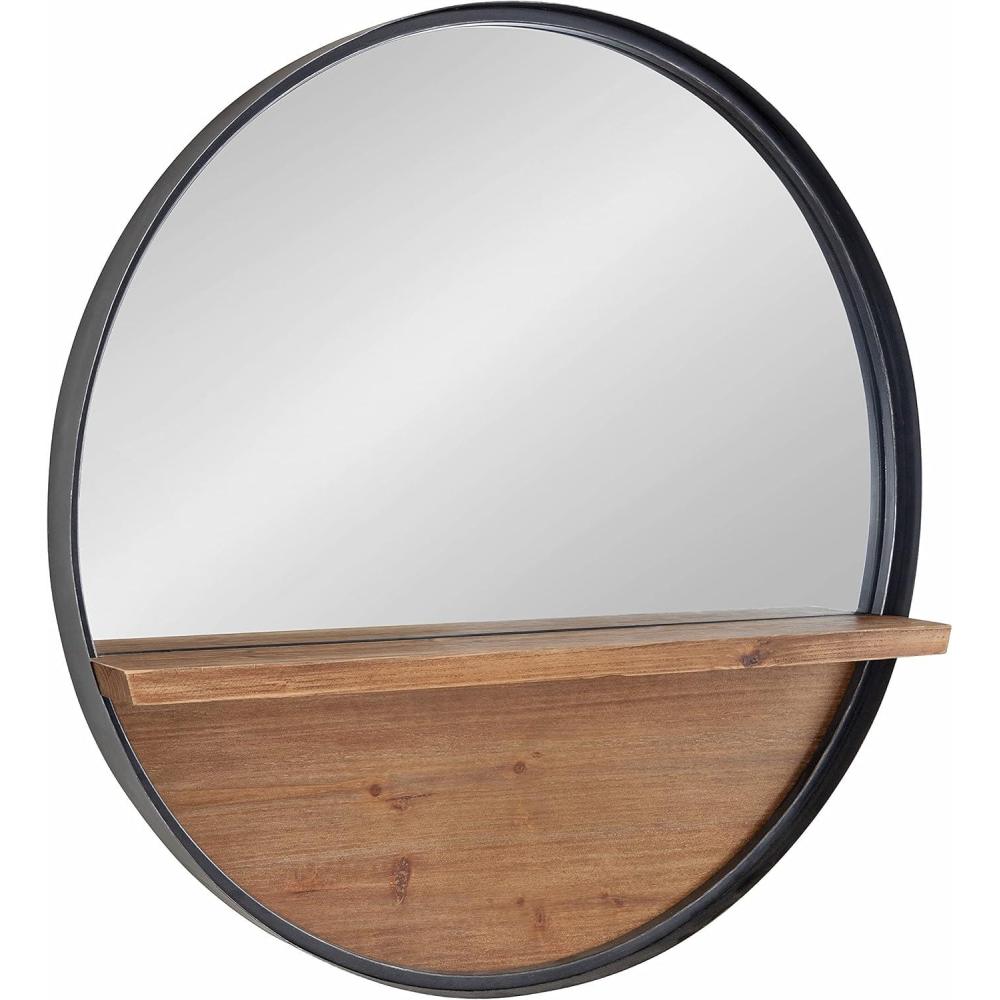 Save big on Kate and Laurel Owing Farmhouse Metal Framed Round Mirror with Wood Shelf, 30 inch Diameter, Rustic Brown and Black, Large Modern Mirror for Wall during our summer blowout sale. Limited quantities available.