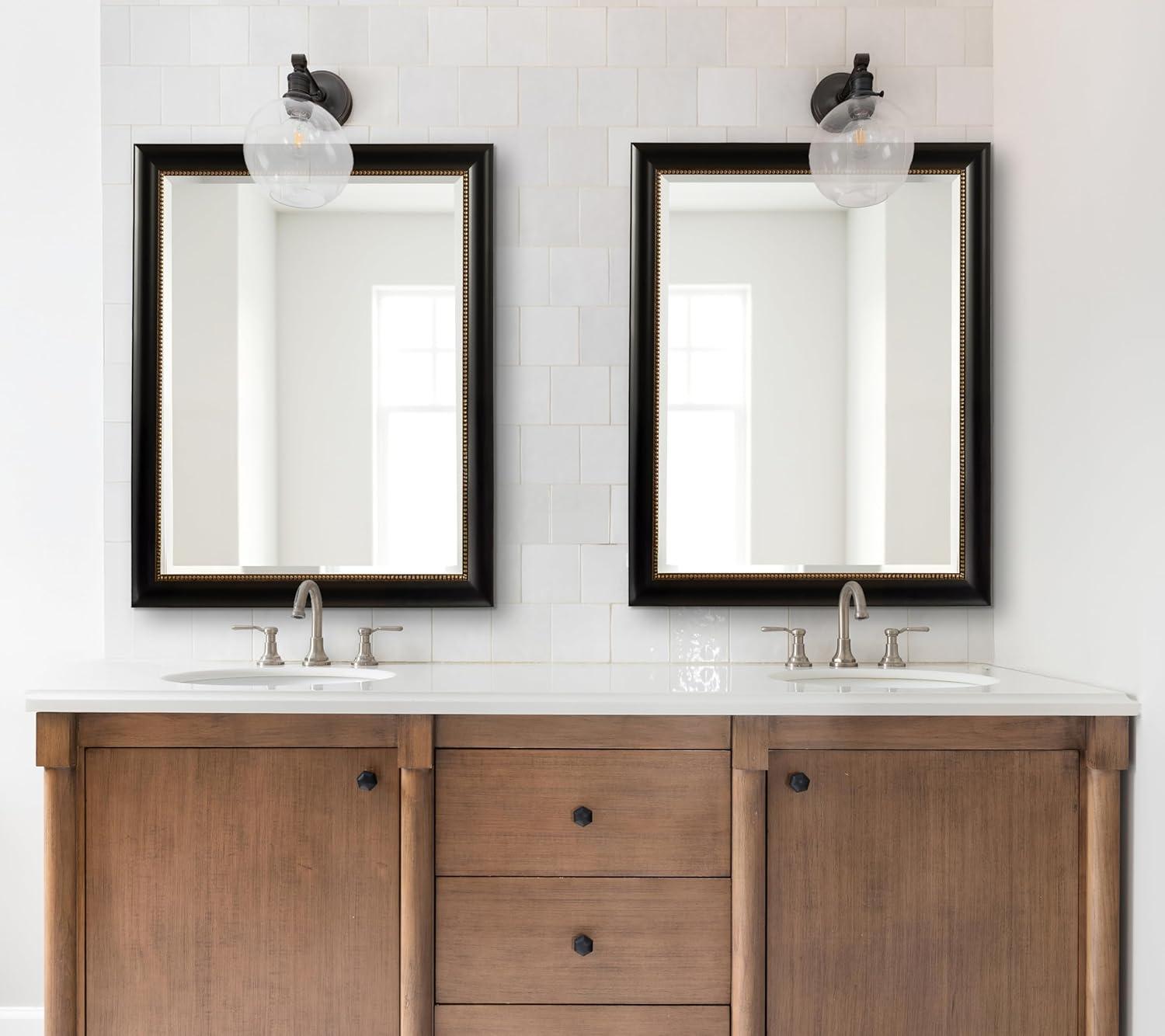 Perfect Bathroom Mirror for Over Sink: At 22 inches wide by 28 inches high, this black bath mirror works well with a single vanity or hang two side by side for a double vanity