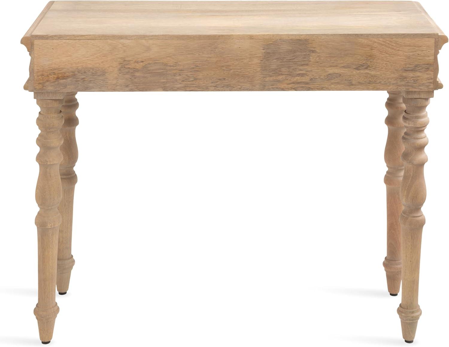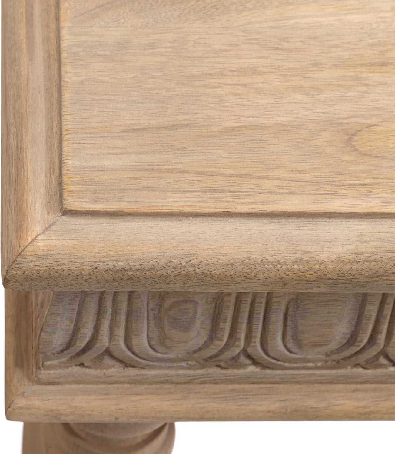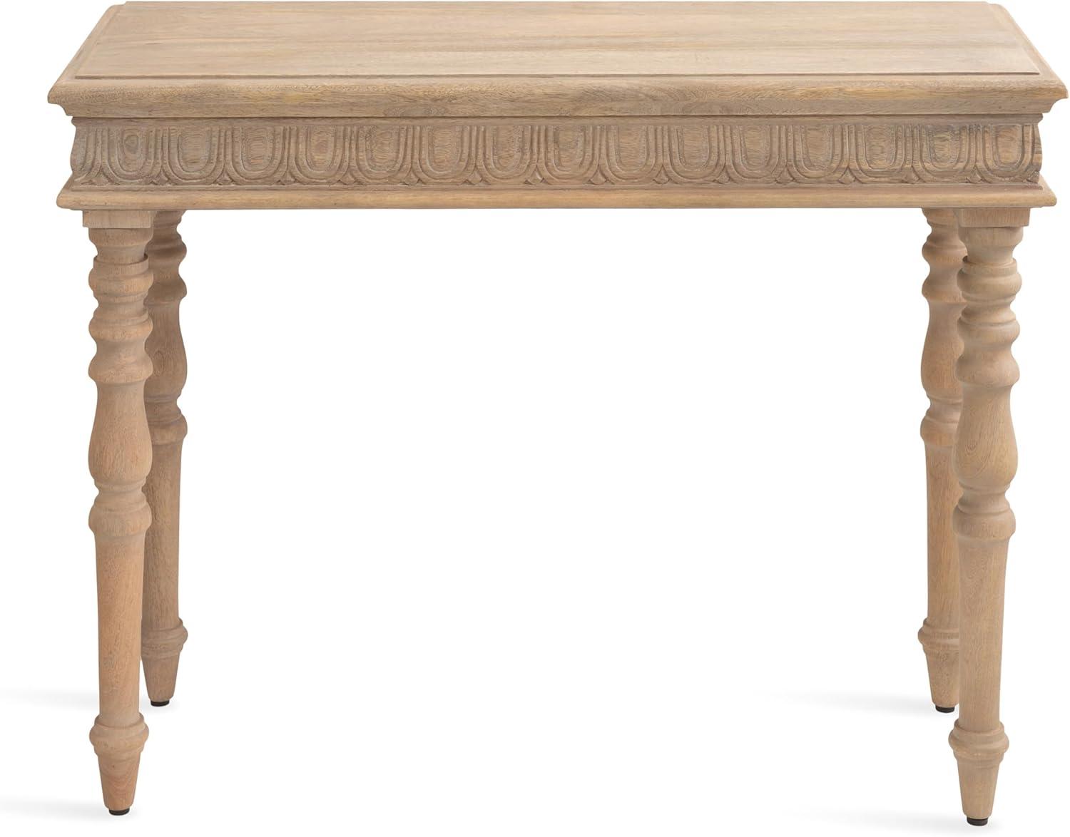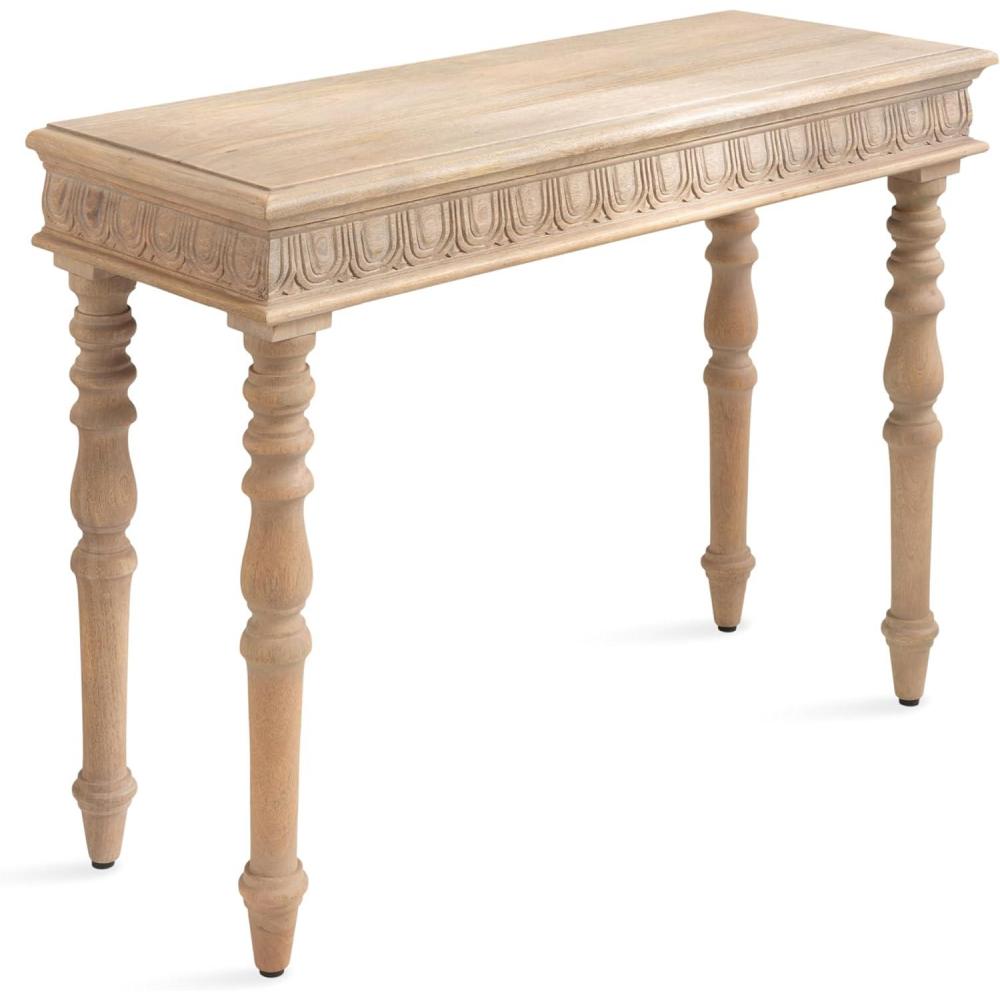 Ornate Carved Detailing: Crafted from solid mango wood, the Patresa console table features carved details along the sides of the table