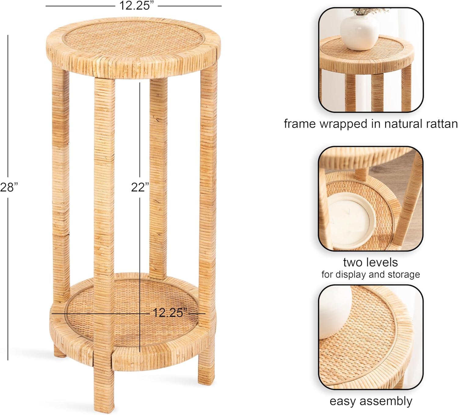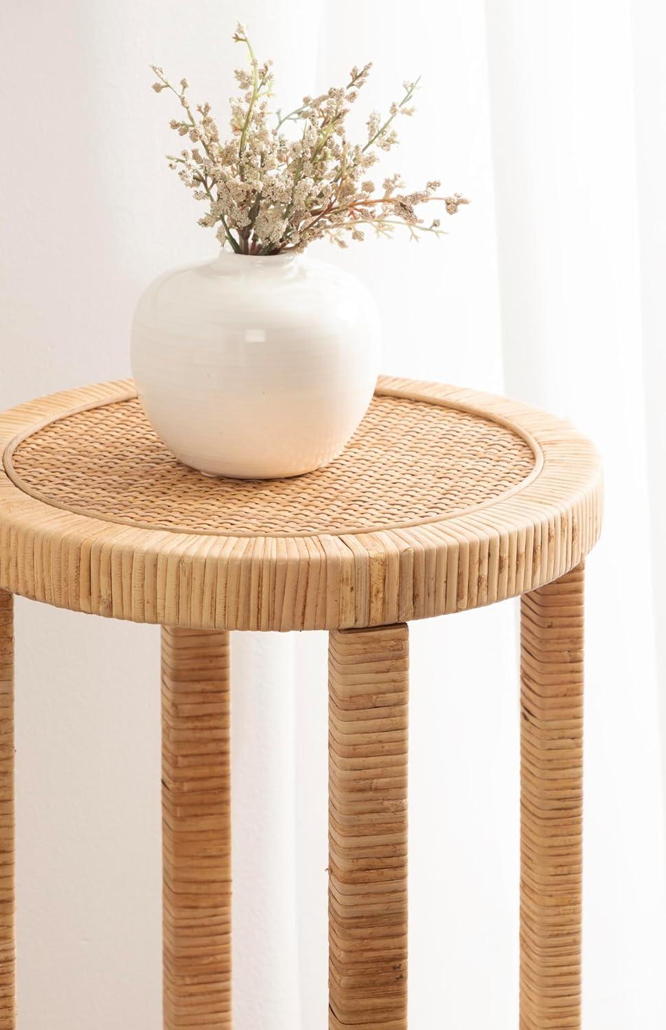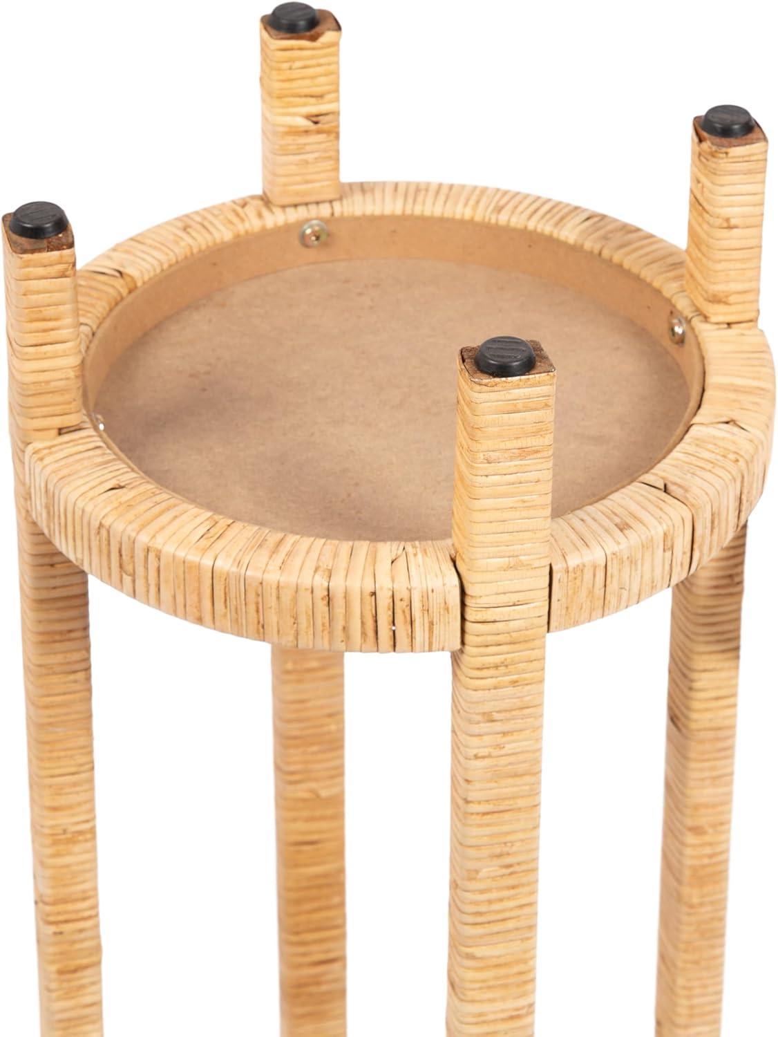 Add a charming accent to your home with this Rafina rattan drink table. Between its rattan-wrapped table legs and round tabletop, the table serves as the most delightful display accent. Crafted from premium materials, this tall drink table features high-quality natural cane wrapping for a boho rattan table look. The Rafina is the optimal accent table for your living room, bedroom, or home office area. Commonly used as a living room drink table, this table also serves as a lovely boho plant stand. Perfect for a beach house or vacation home, this coastal accent table perfectly accentuates your beachy decor. At 28 inches tall, it is the perfect height for easy access to your drink as you relax on a comfy sofa or chair. The platform diameter of 12.25 inches is the perfect size to hold a drink or a smaller plant with a little extra wiggle room. With its unique design, this coastal drink table comes with a very simple two-step assembly, so you can start enjoying and decorating it at once. The table's unique negative space gives you openings between each of the four table legs. Complete your living room or bedroom decor scheme with this boho decor piece.