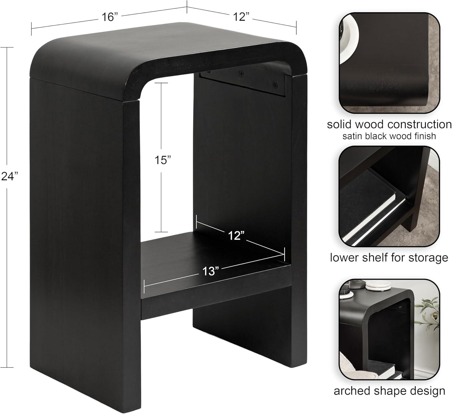 Kate and Laurel Reddy Modern Arched Wood Side Table, 16 x 12 x 24, Walnut Brown, Transitional Two-Tier End Table for Use as a Bedroom Nightstand or Small Record Player Stand(Black)