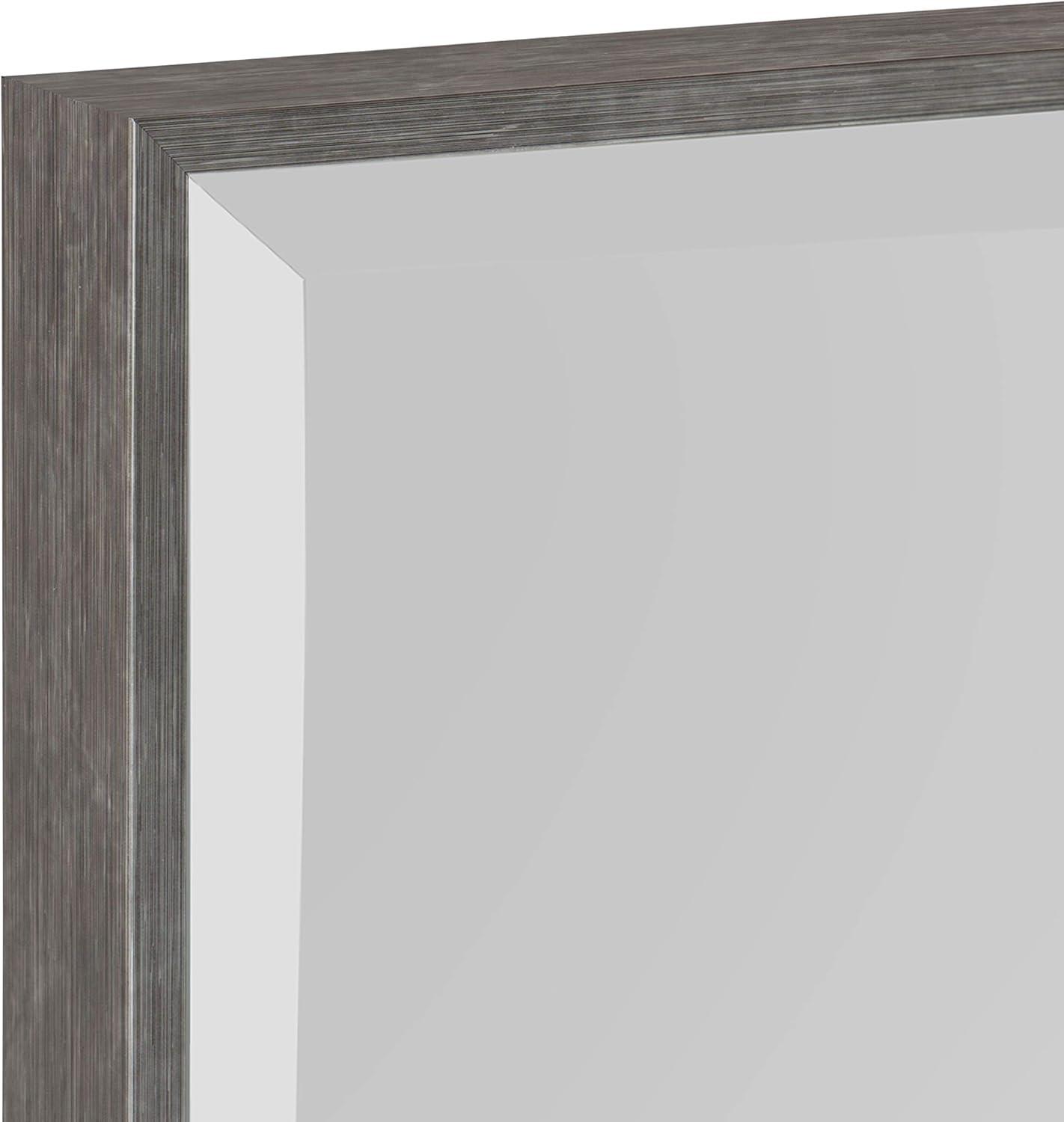 Kate and Laurel Hogan Farmhouse Wall Mirror, 18 x 24, White, Modern Rectangular Wood Mirror for Wall(Grey)