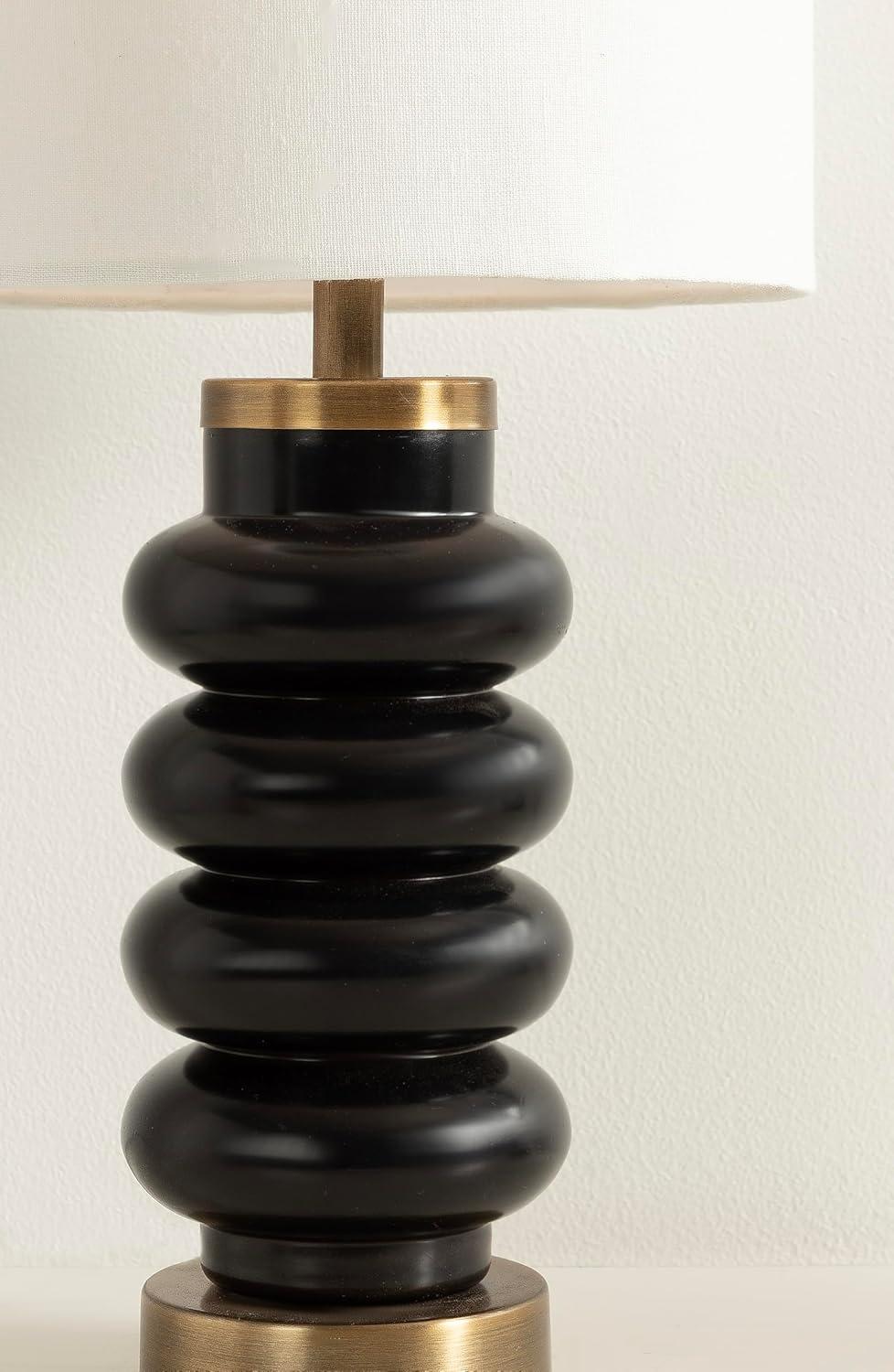 Kate and Laurel Wylla Modern Rattan Bedside Table Lamp, 8 x 8 x 18, Natural Rattan, Decorative Woven Tabletop Desk Lamp with Linen Shade for Living Room Decor(Black)