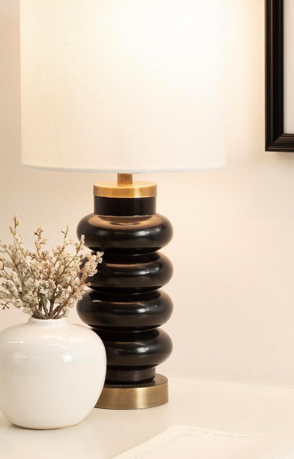 Kate and Laurel Rogala Modern Glass Bedside Table Lamp, 8 x 8 x 18, Blue and Antique Brass, Decorative Sculpted Bubble Tabletop Desk Lamp with Linen Shade for Living Room Decor(Gold/Black)