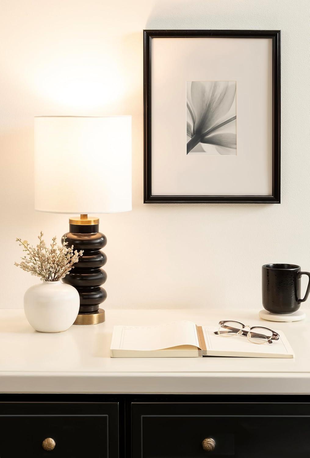 Included Soft Linen Shade: Illuminate the dark corners of your space with a warm glow thanks to this nightstand lamp's linen shade