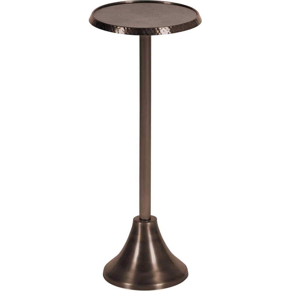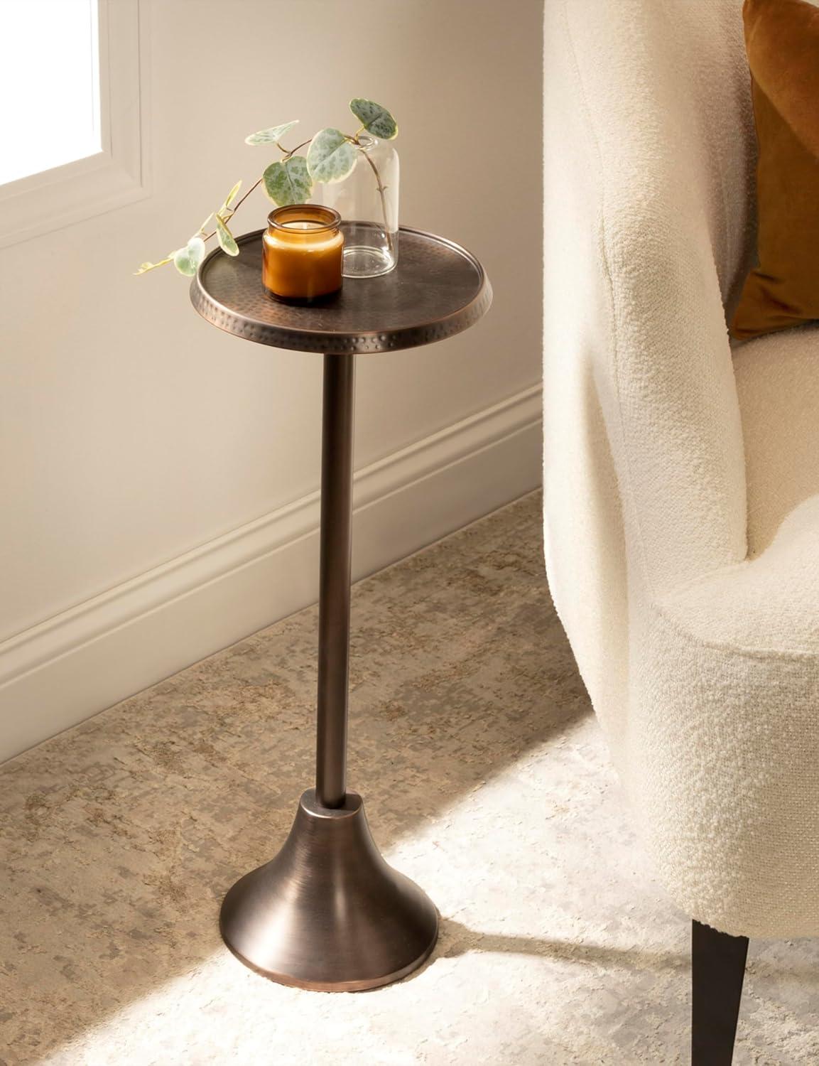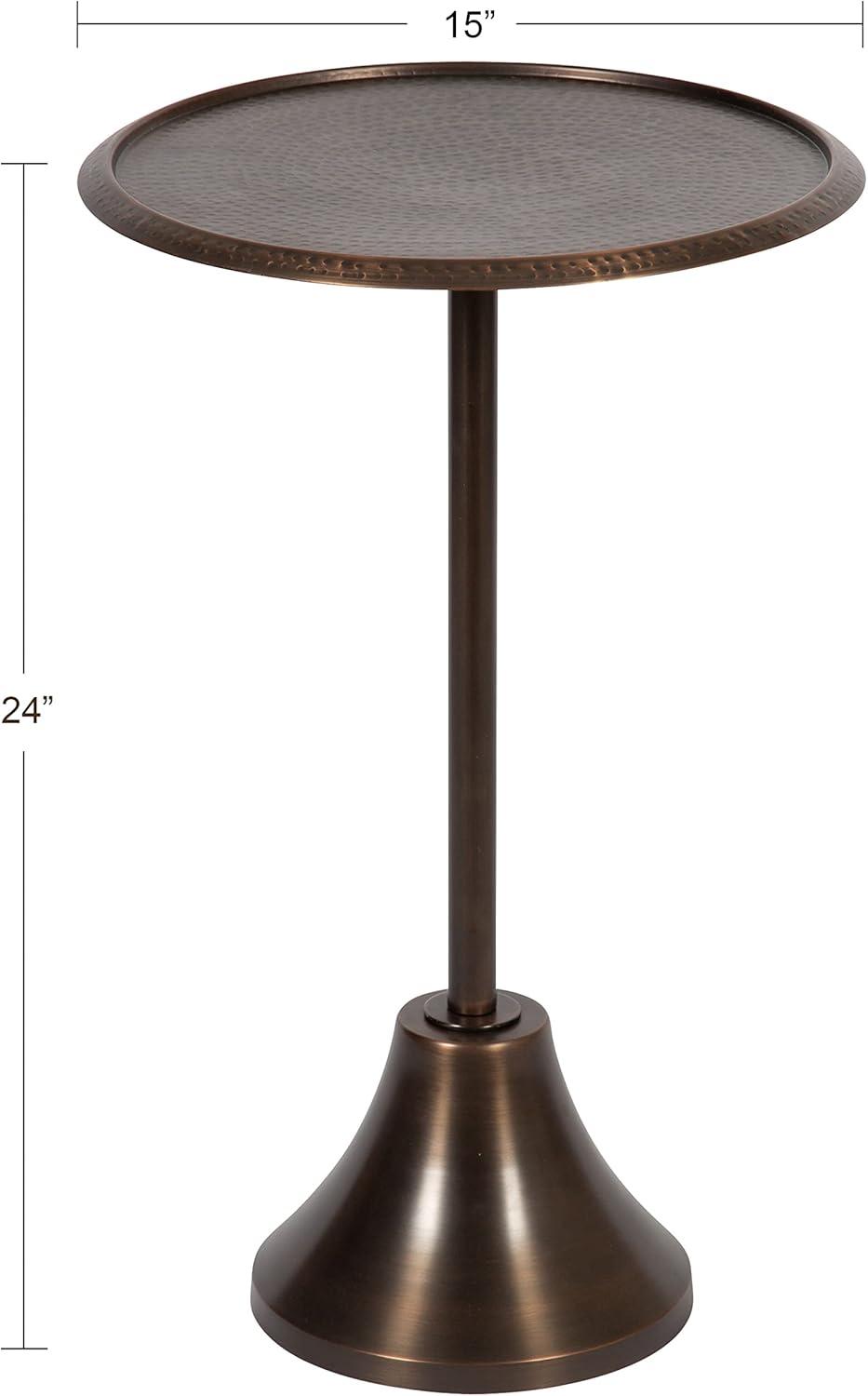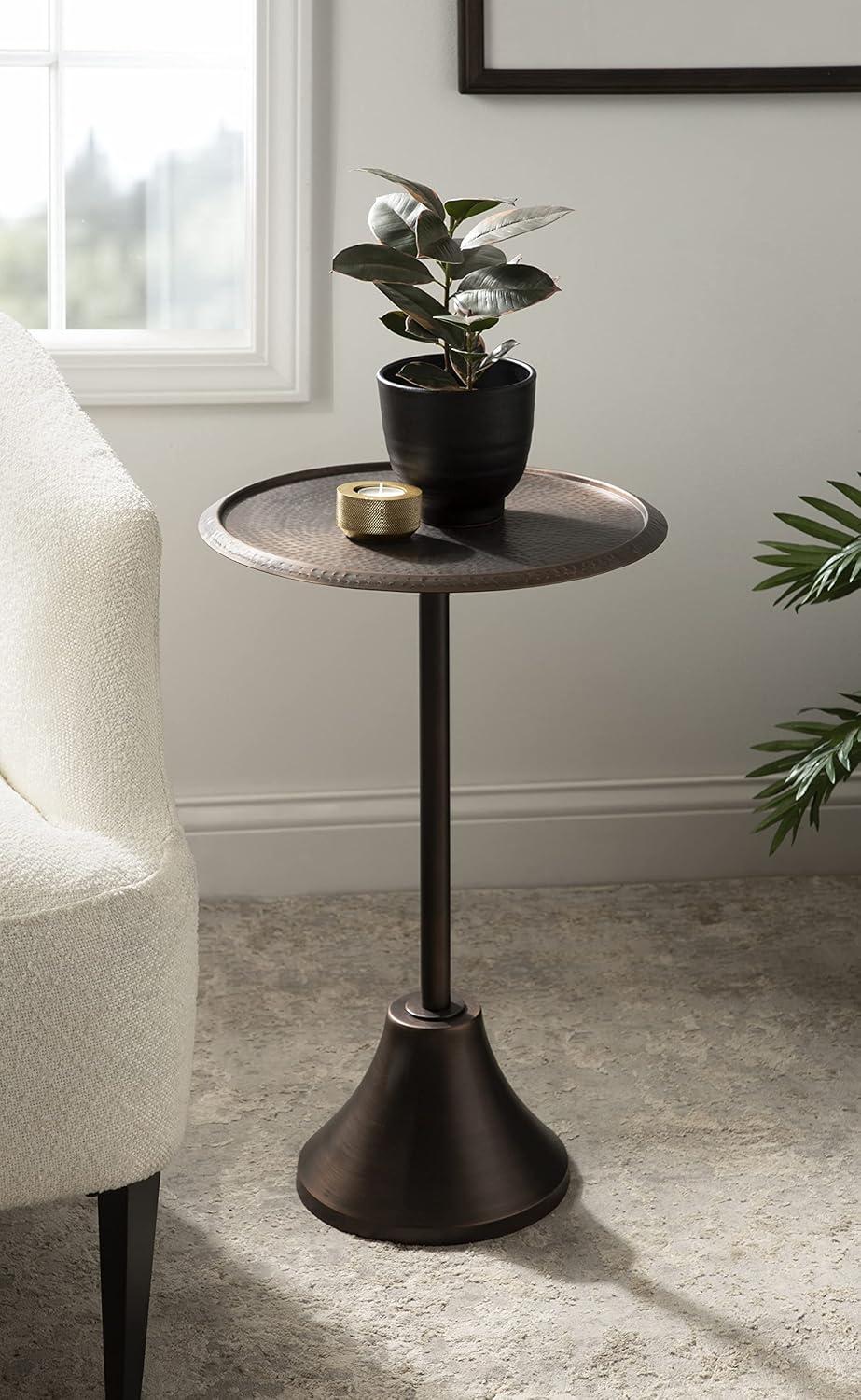 Kate and Laurel Sanzo Modern Pedestal Round Side Table; 15 x 15 x 24; Antique Brass and Black; Circle End Table with Metal Tabletop for Use as Indoor Plant Stand or Bedroom Nightstand(Bronze)