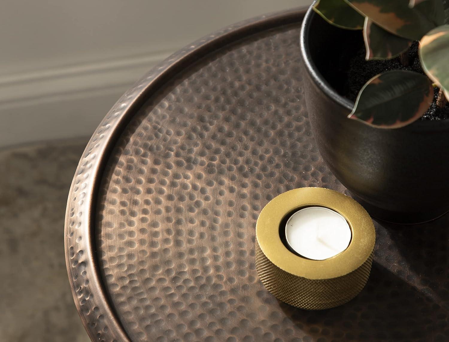 Unique Accent Table: The Sanzo side table is handcrafted in India making each piece look distinct thanks to its hand-applied brass finish on its metal tabletop