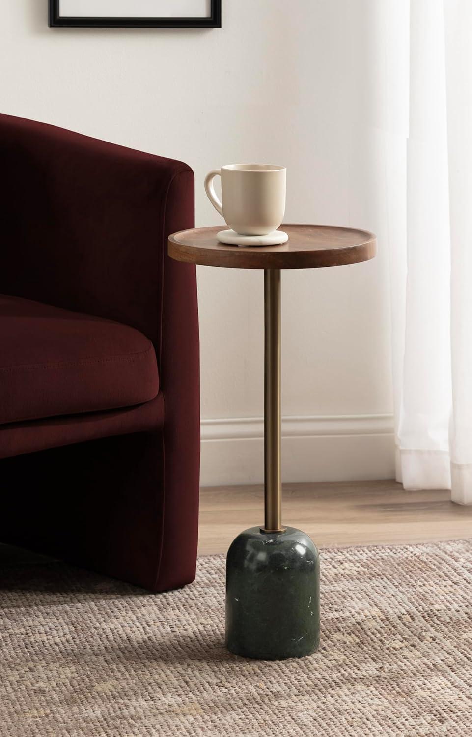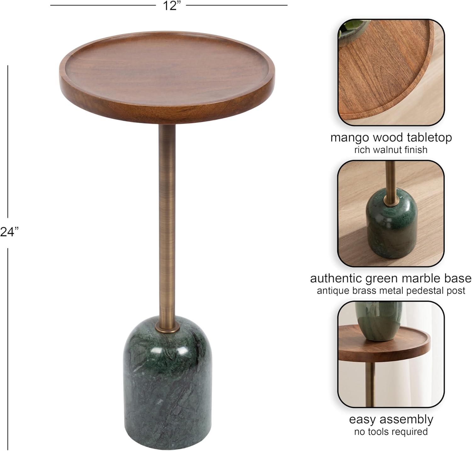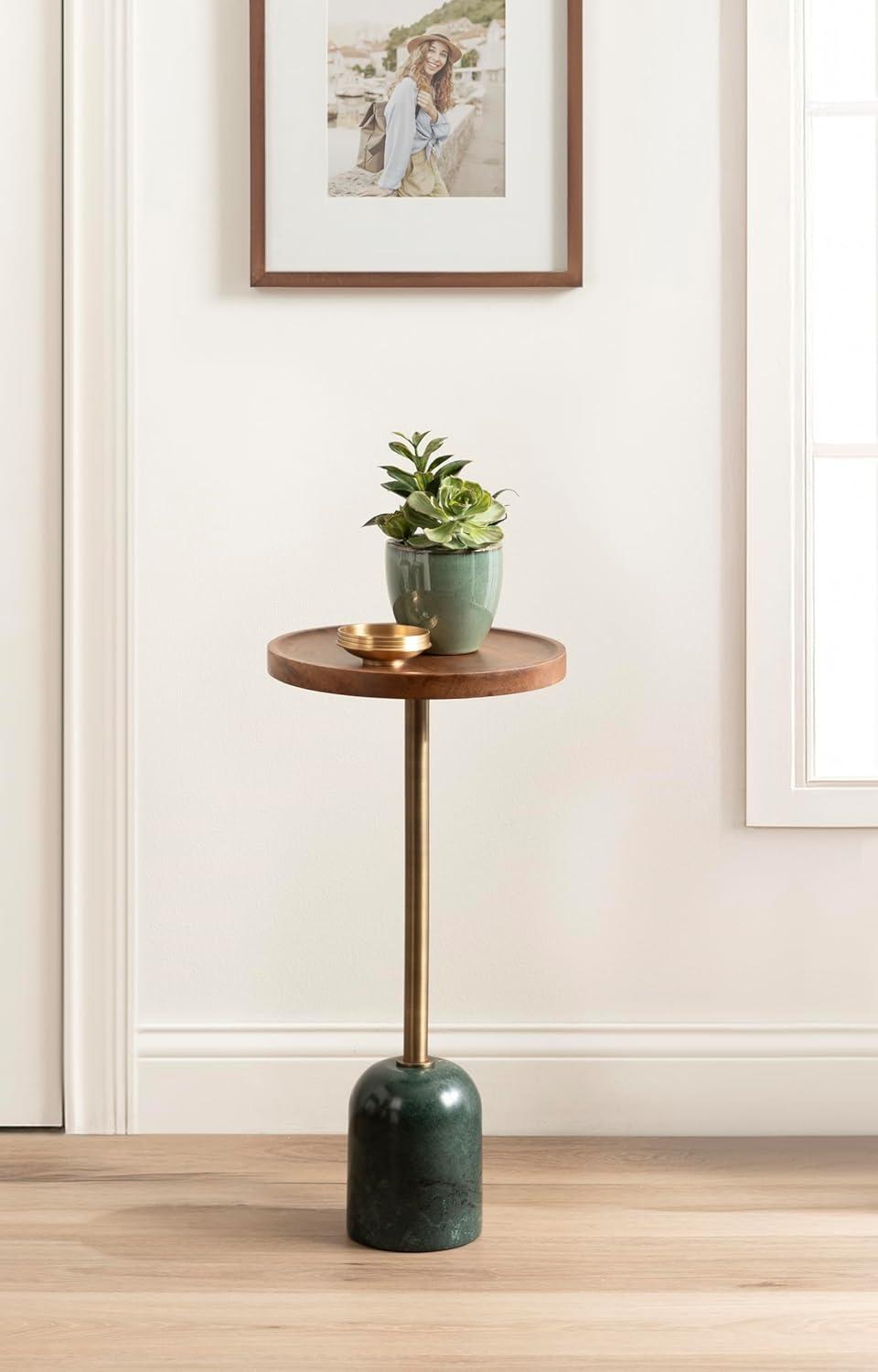 Kate and Laurel Shorrock Round Mango Wood Side Table, 12 x 12 x 24, Black, Gold, and White Marble, Modern Pedestal End Table with Marble Base for Bedroom Nightstand or Living Room Plant Stand(Walnut Brown/Gold)