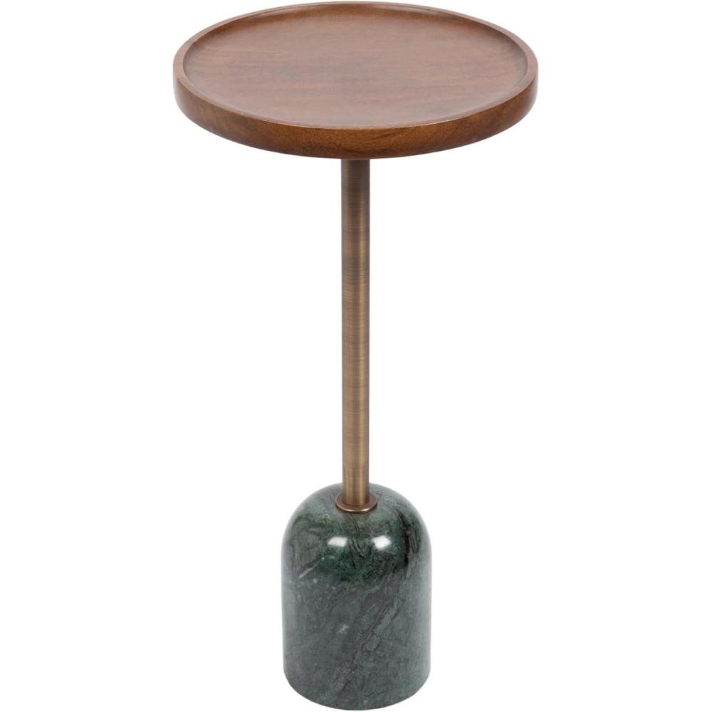 Design the minimal and modern space of your dreams by incorporating the Shorrock side table into your decor. Inspired by contemporary design, this table features a pedestal look, a round tabletop, and a fun, shaped base. The tabletop is crafted from solid mango wood with a rich marble stone base, while the base is crafted from resilient iron. Each Shorrock table is handcrafted in India, giving each piece its distinct woodgrain and marble veining. This edition of the Shorrock side table features a variety of finishes, providing a transitional aesthetic that works in various decor scenes. The overall dimensions of the Shorrock end table are 12 inches wide by 12 inches deep by 24 inches tall. This size is excellent for flanking your couch, entryway, or bedside. Use the 12-inch diameter of the tabletop to serve drinks, store media remotes, or display your favorite decorative accents in your space. This stunning small side table is a fabulous way to get the conversation going and showcase your effortlessly elegant style in your favorite room. When your new table arrives, it takes a matter of minutes to put together with the convenient no-tools two-step assembly instructions.