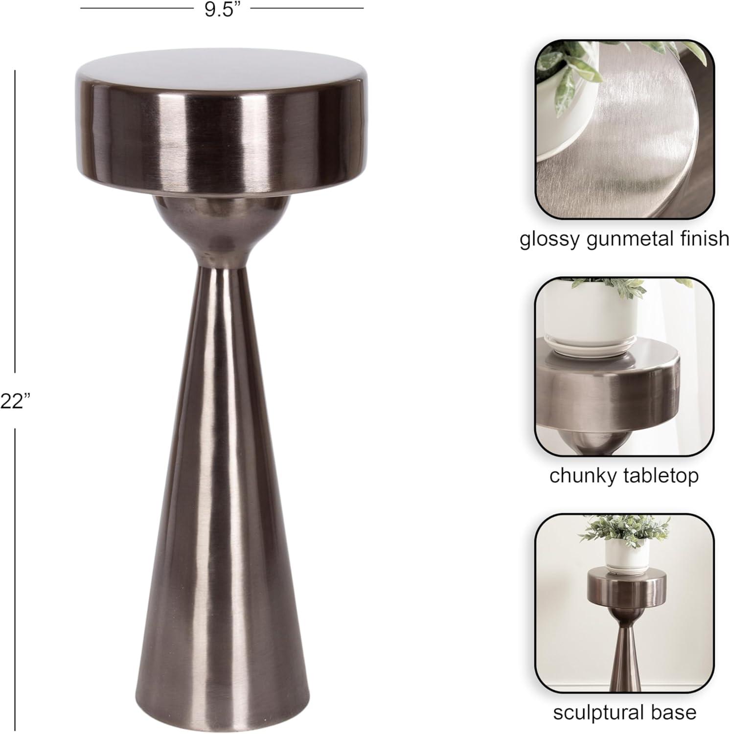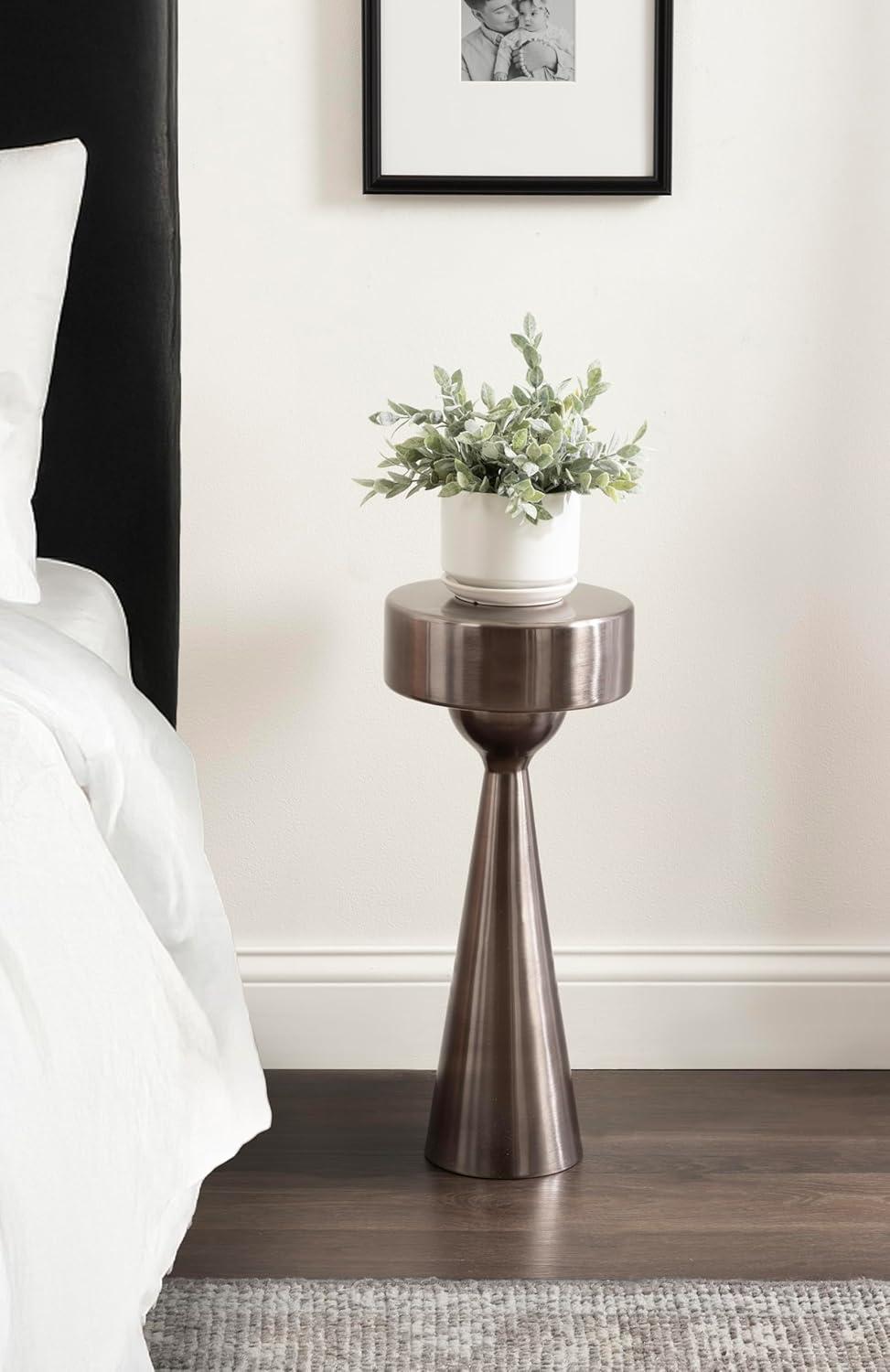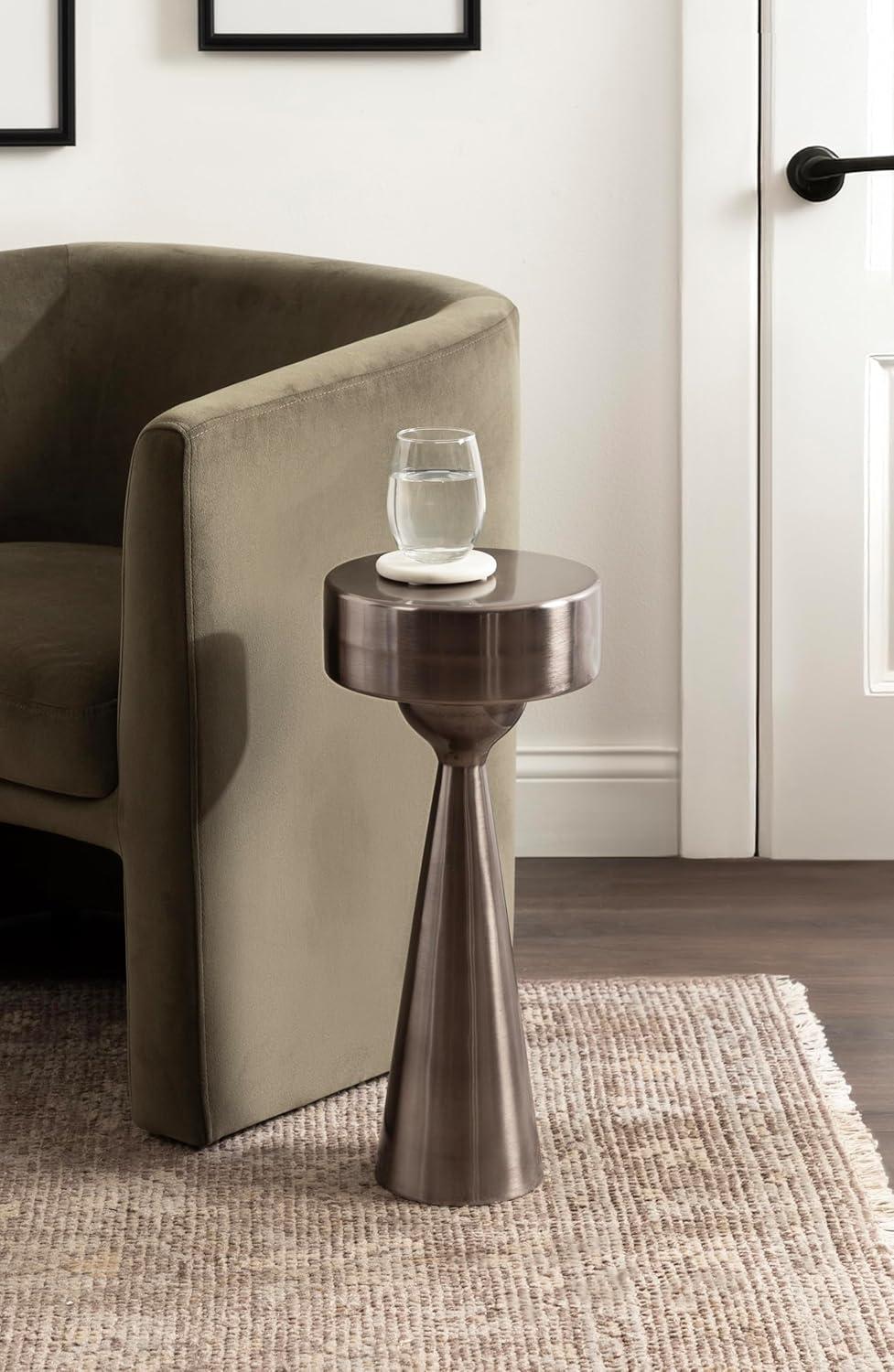 Add a much-needed accent to your living space with the smooth, soft curvature of this Solbrett drink table. Designed with versatility in mind, this table allows for direct functionality with a coaster and a drink, or use it to display your favorite houseplant. Based on unique sculptured table designs, this Solbrett table provides that aesthetic with smoother, more polished curves. At 22 inches tall with a 9.5-inch diameter tabletop, you'll see that this table is the perfect size to accentuate your sofa or a couple of your favorite cozy chairs. We designed the Solbrett to include a weighted base to increase stability and keep your carpet free from coffee spills. Also, the table includes padding on the bottom of the base to protect against scuff marks and secure the table on hard surfaces. The Solbrett was crafted as a highly versatile accent table. From a sophisticated drink accent to a modern plant pedestal, it is a stunning piece that fits a variety of decor styles.