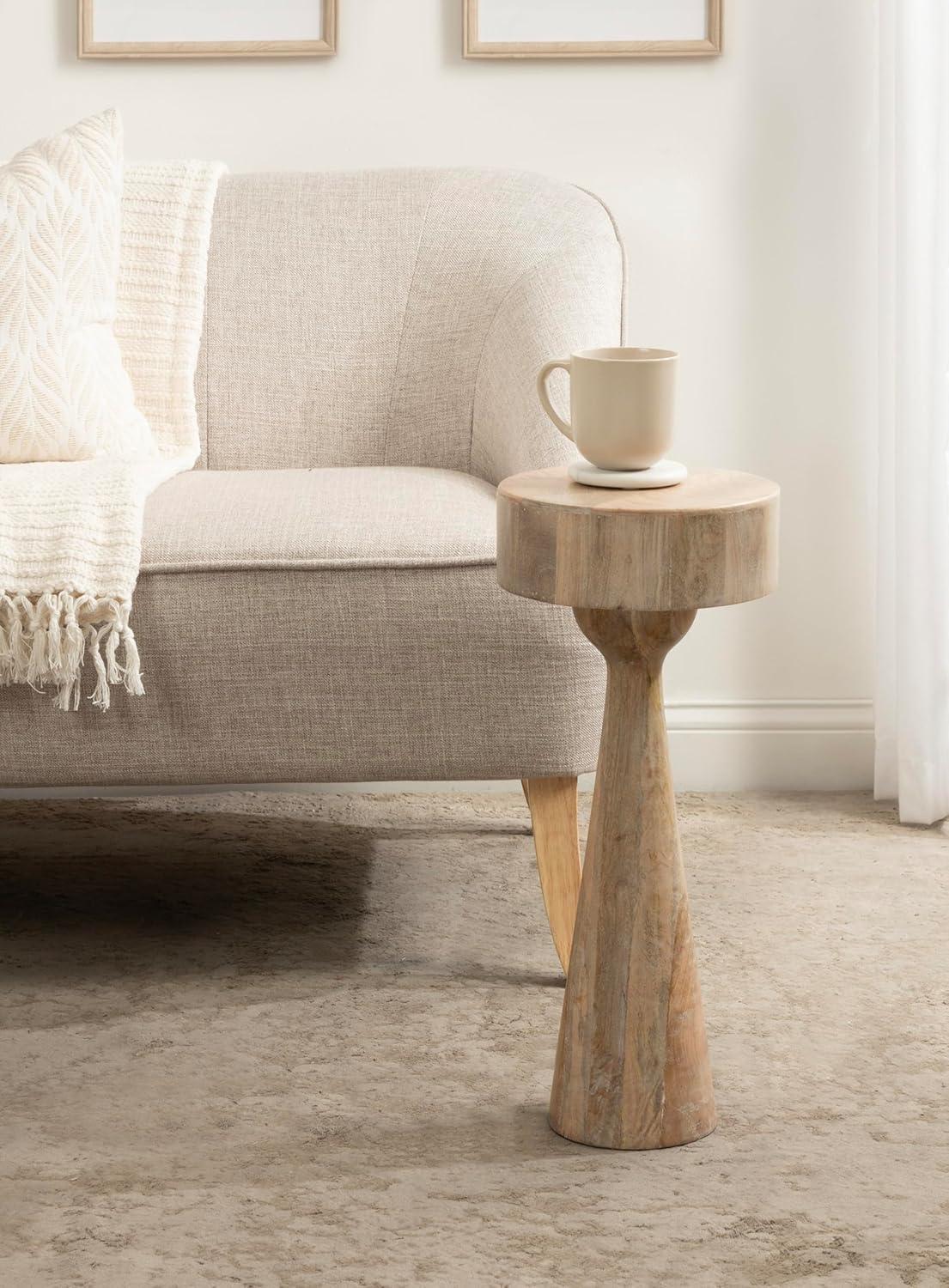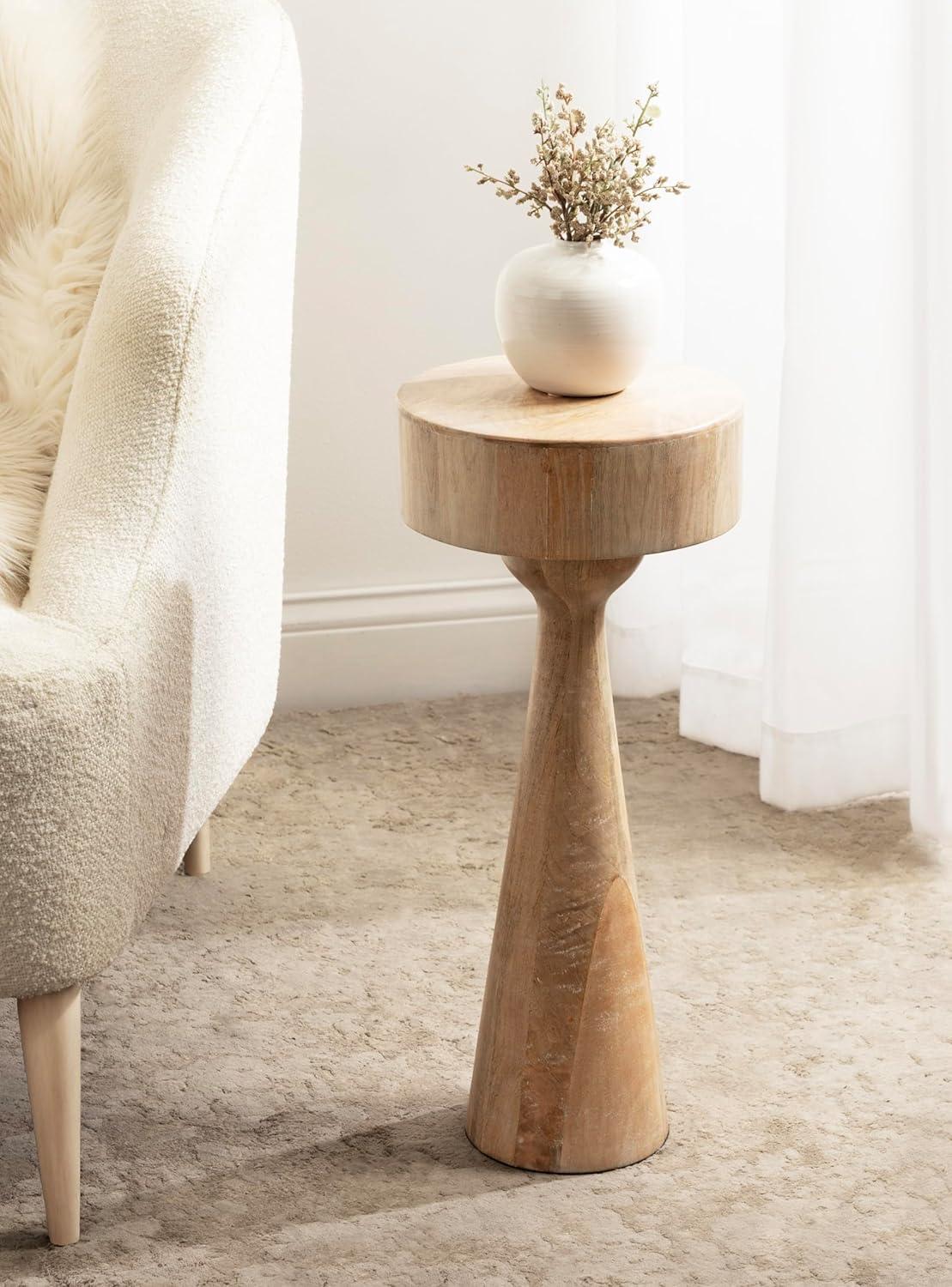 Kate and Laurel Solbrett Transitional Sophisticated Round Drink Table; 10 x 10 x 22; Natural Wood; Sculptural Bedroom Nightstand with Unique Pedestal Table Design for Use as Indoor Plant Stand(Natural)
