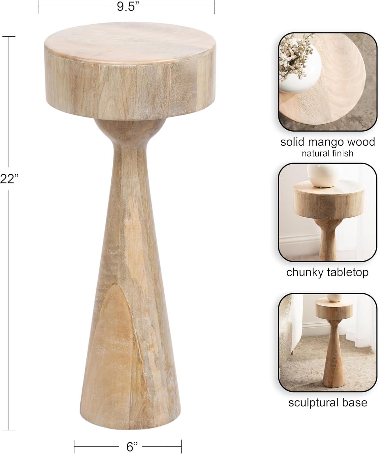 Add a much-needed natural accent to your living space with the smooth, soft curvature of this Solbrett drink table. Designed with versatility in mind, this table allows for direct functionality with a coaster and a drink, or use it to display your favorite house plant. Based on unique sculptured table designs, this Solbrett table provides a modern aesthetic with unique curvature. Built from solid mango wood, this organic table features slight variations in the wood grain. At 22 inches tall with a 9.5-inch wide tabletop, you'll see that this table is the perfect size to accentuate your sofa or a couple of your favorite cozy chairs. Also, the table includes padding on the bottom of the base to protect against scuff marks and secure the table on hard surfaces. The Solbrett was crafted as a highly versatile accent table. From a sophisticated drink accent to a modern plant pedestal, it is a stunning piece that fits a variety of decor styles.
