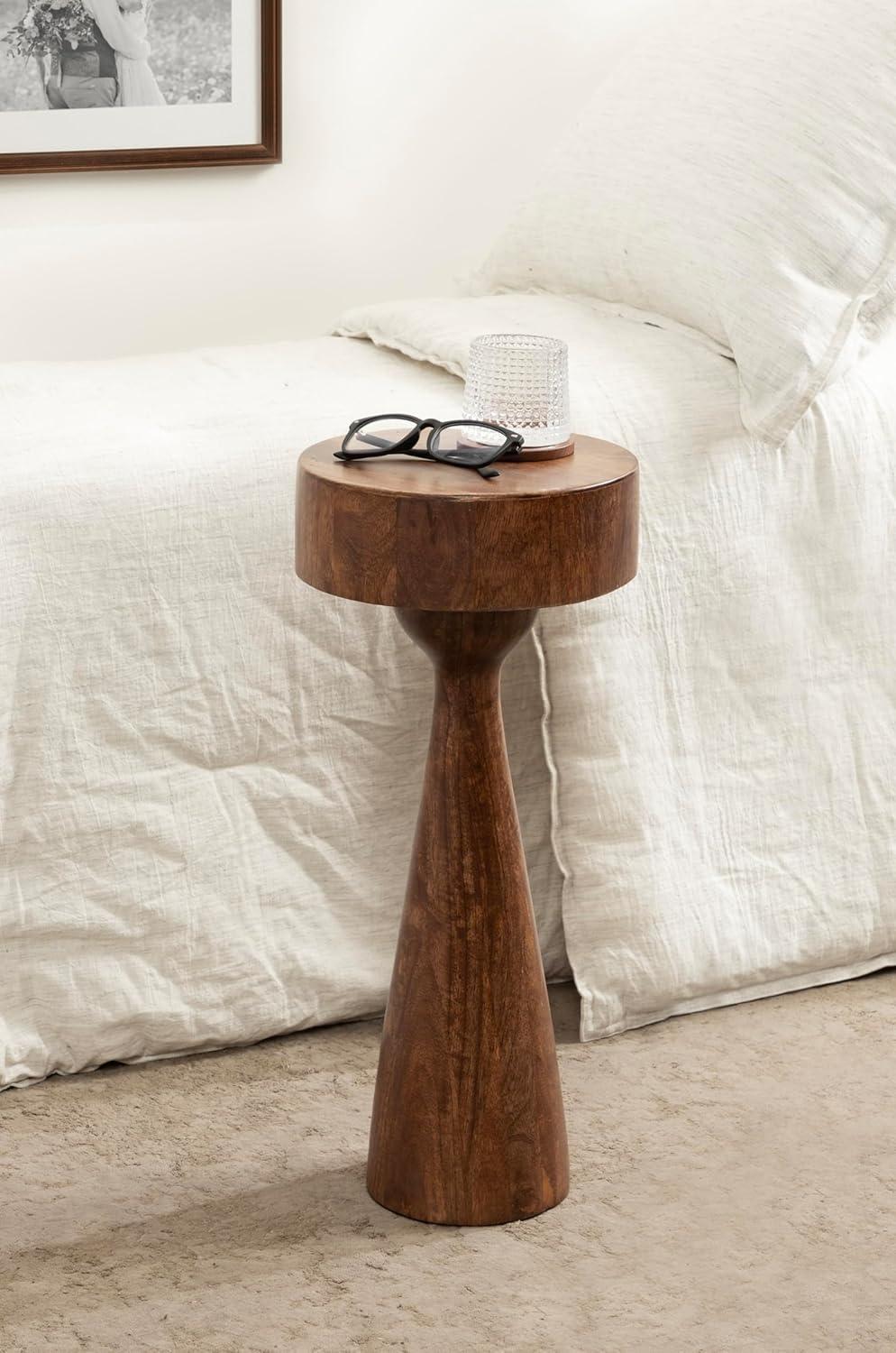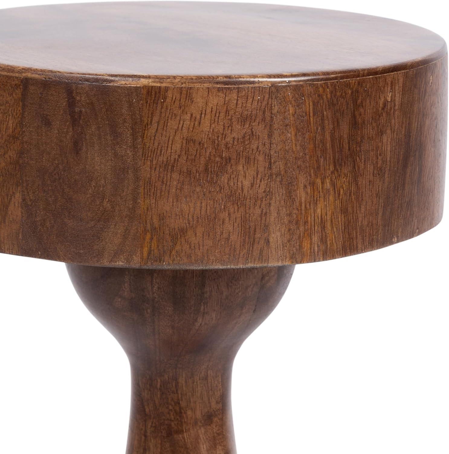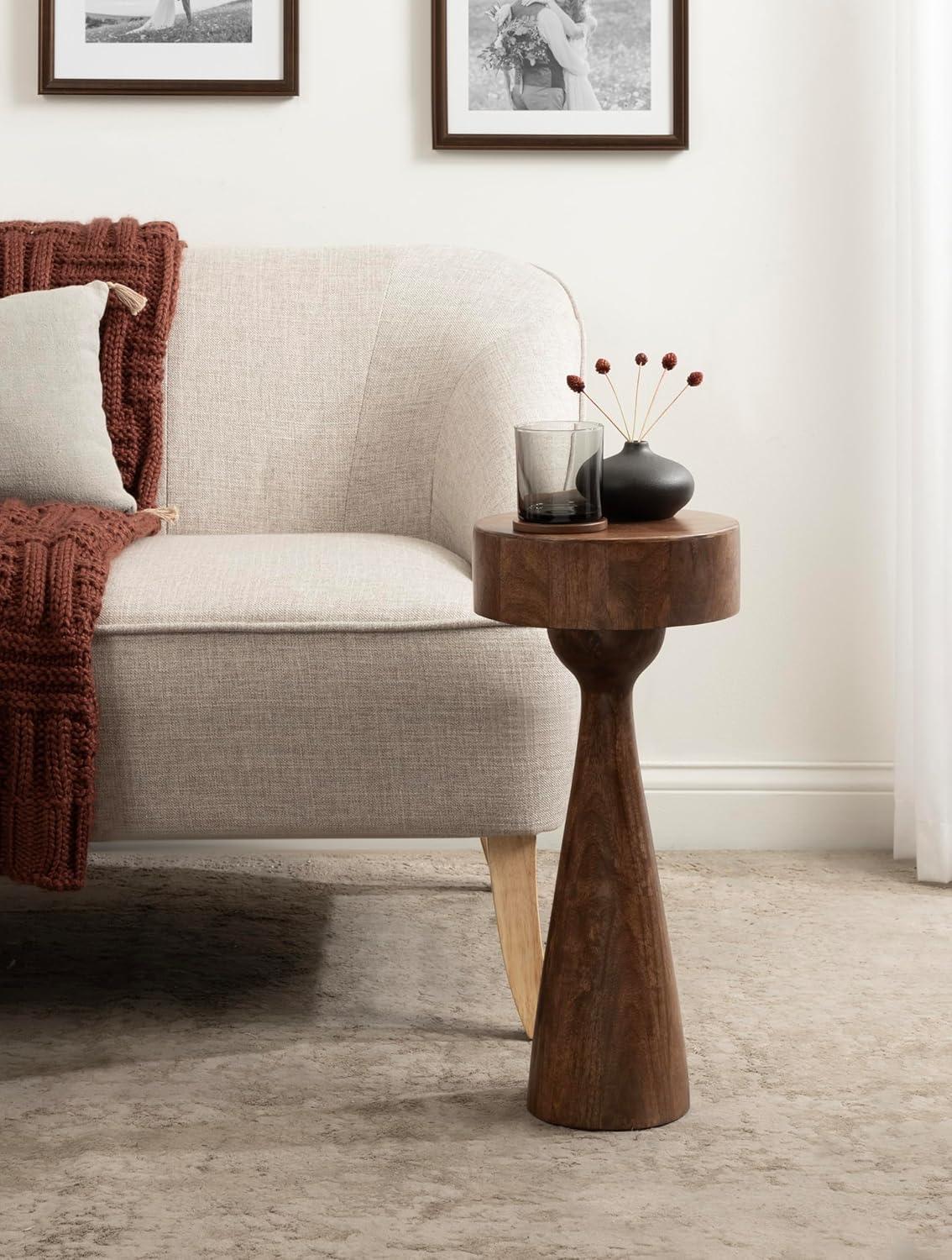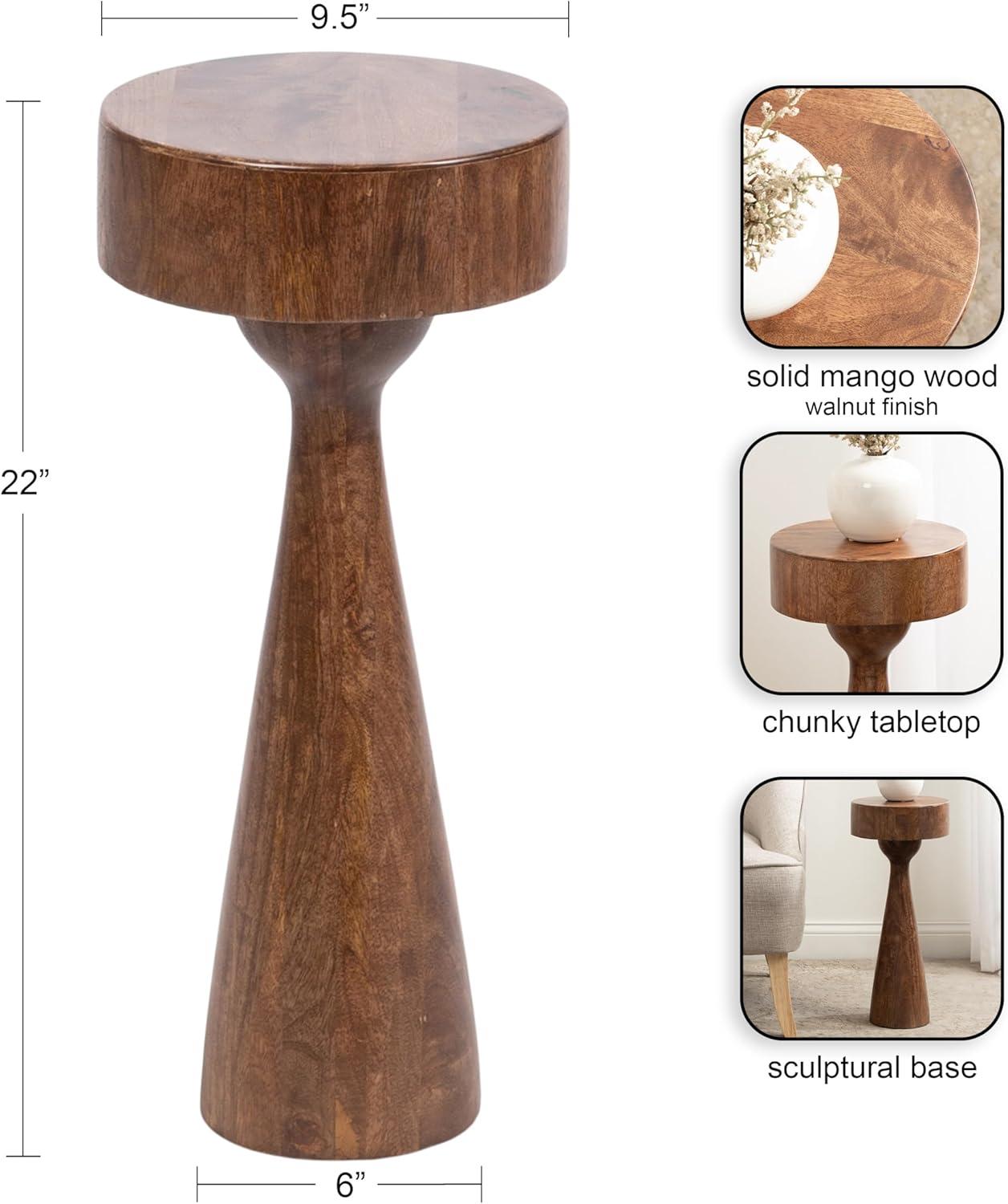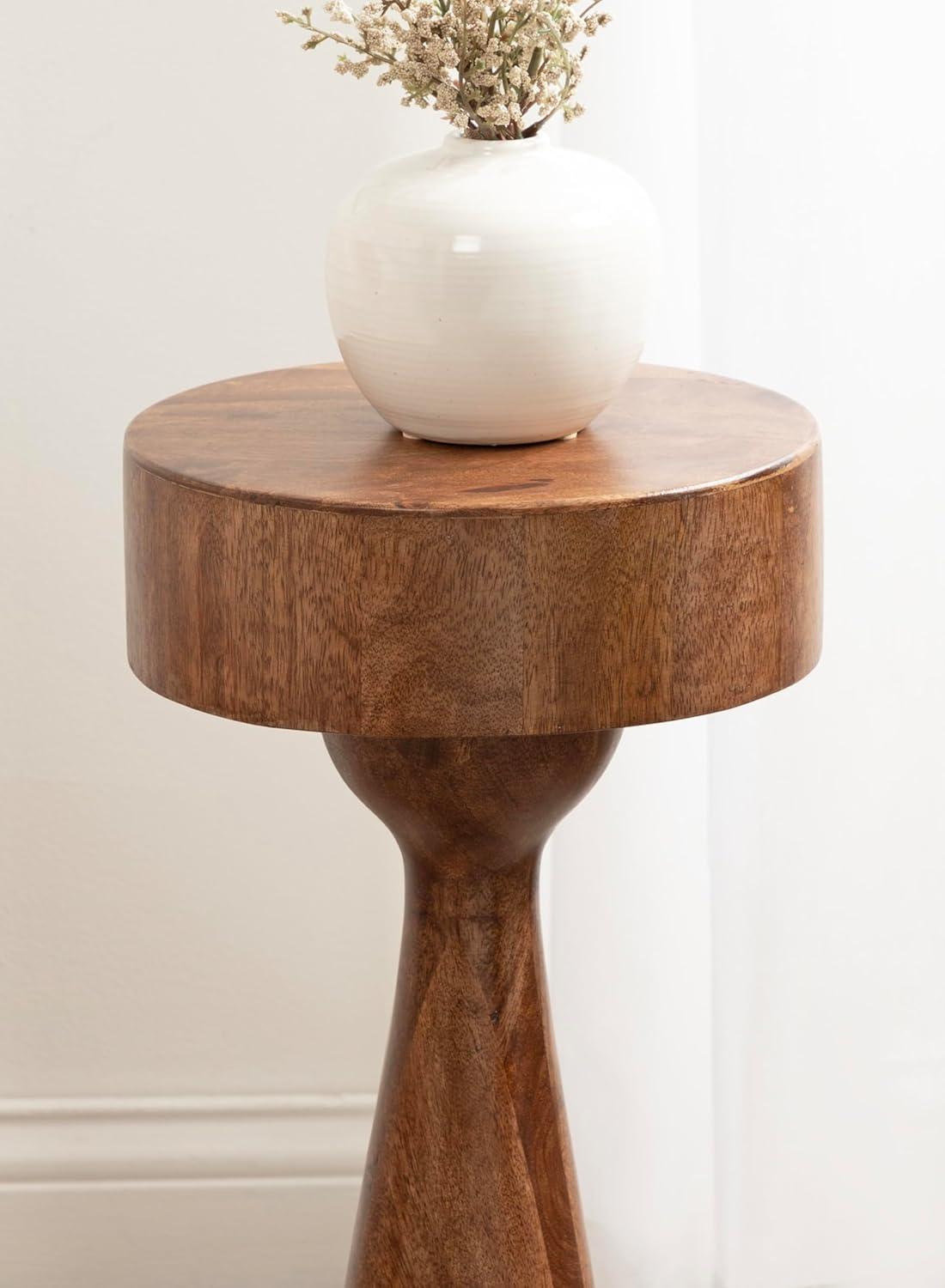 Add a much-needed natural accent to your living space with the smooth, soft curvature of this Solbrett drink table. Designed with versatility in mind, this table allows for direct functionality with a coaster and a drink, or use it to display your favorite house plant. Based on unique sculptured table designs, this Solbrett table provides a modern aesthetic with unique curvature. Built from solid mango wood, this organic table features slight variations in the wood grain. At 22 inches tall with a 9.5-inch wide tabletop, you'll see that this table is the perfect size to accentuate your sofa or a couple of your favorite cozy chairs. Also, the table includes padding on the bottom of the base to protect against scuff marks and secure the table on hard surfaces. The Solbrett was crafted as a highly versatile accent table. From a sophisticated drink accent to a modern plant pedestal, it is a stunning piece that fits a variety of decor styles.