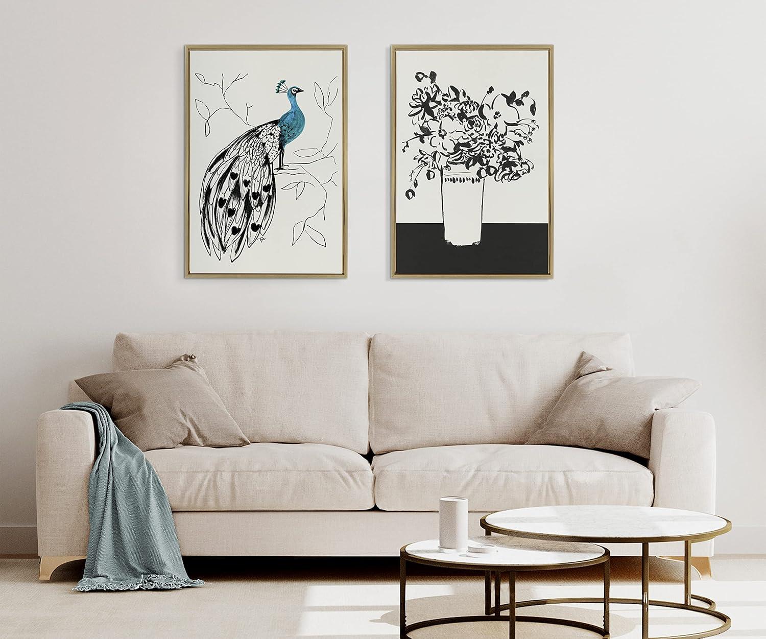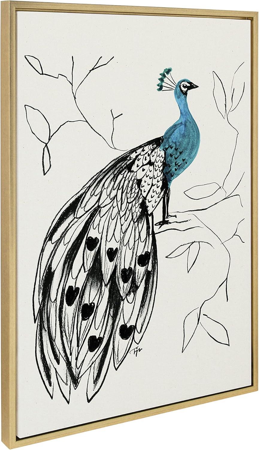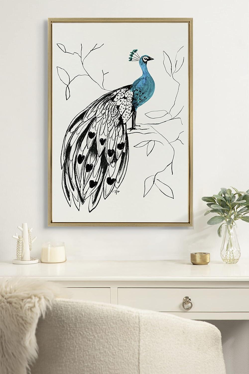 Show the unique eccentricities of your style with this striking and avant-garde peacock art print from SnazzyHues. Framed in a sleek modern frame, this contemporary design is the perfect art piece to add to your home decor collection. Printed and framed in the USA in Waunakee, Wisconsin, this framed linen textured canvas art will be a pleasure to look at every day in your living room, bedroom, office, or any room in the home. This art print also makes an excellent gift for a birthday, holiday, or house-warming. It has two hangers already attached for easy wall display. The outer dimensions are 33 inches by 23 inches by 1.6 inches. Print Name: “658 Peacock”