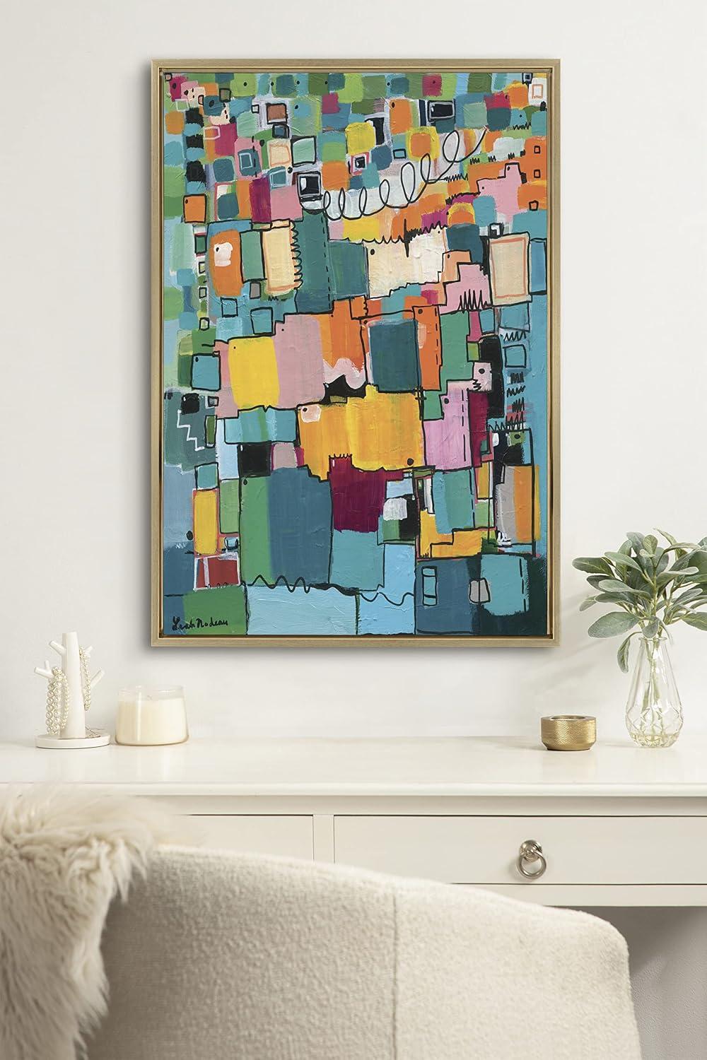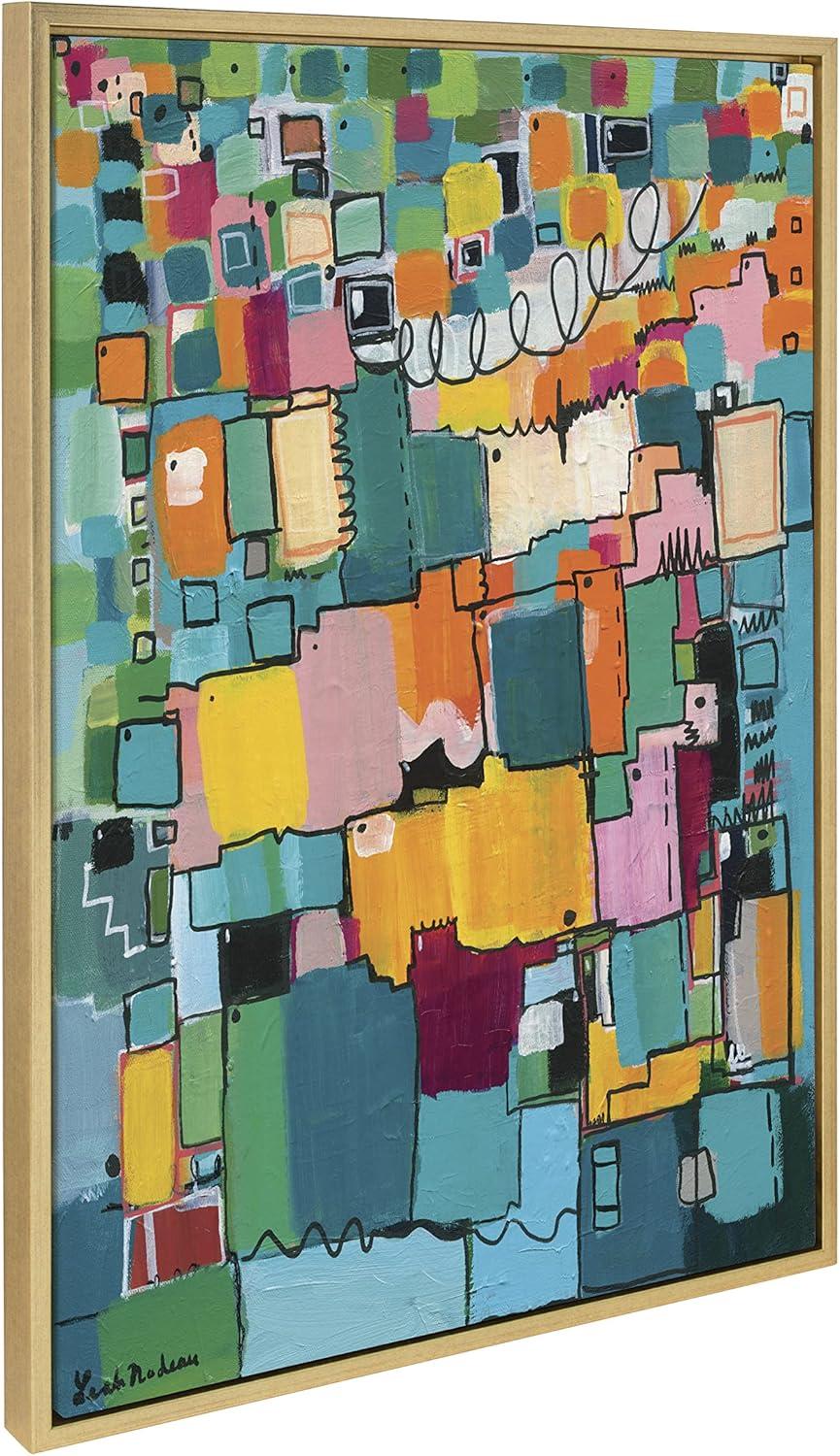 Kate and Laurel Sylvie Afternoon Delight Framed Canvas Wall Art by Leah Nadeau; 23x33 Gold; Decorative Abstract Print for Wall(Gold)