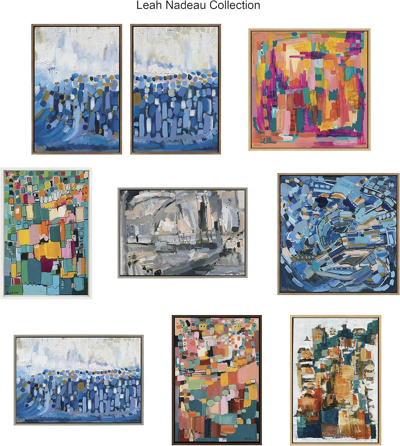 Kate and Laurel Sylvie Afternoon Delight Framed Canvas Wall Art by Leah Nadeau; 23×33 Gold; Decorative Abstract Print for Wall(White)
