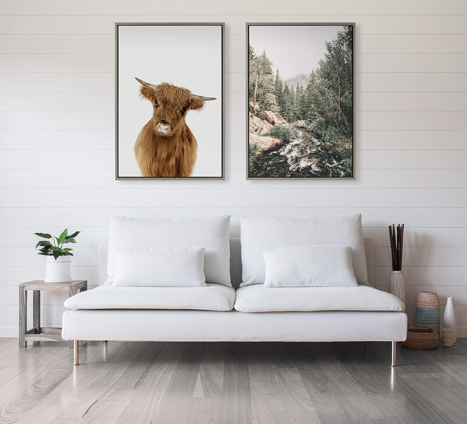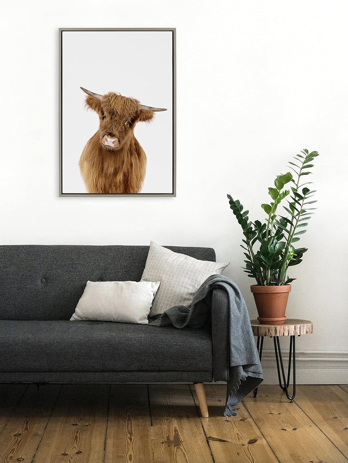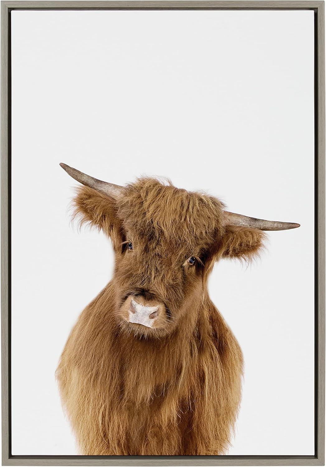 Give your space an added layer of rustic charm with this fun baby highland cow portrait. This lovely, light piece by Amy Peterson Art Studio is perfect for any animal lover. Framed in the USA in Waunakee, Wisconsin, this floating canvas art will be a pleasure to look at every day in your living room, bedroom, kitchen, home office, playroom nursery, or any room in the home. This art print also makes an excellent gift for birthdays, holidays, or house-warming parties. Printed on gallery-wrapped canvas and framed with a lightweight polystyrene frame, this wall art is easy to display on the wall. The outer dimensions are 18 inches by 24 inches by 1.6 inches. Print Name: “Animal Studio Highland”