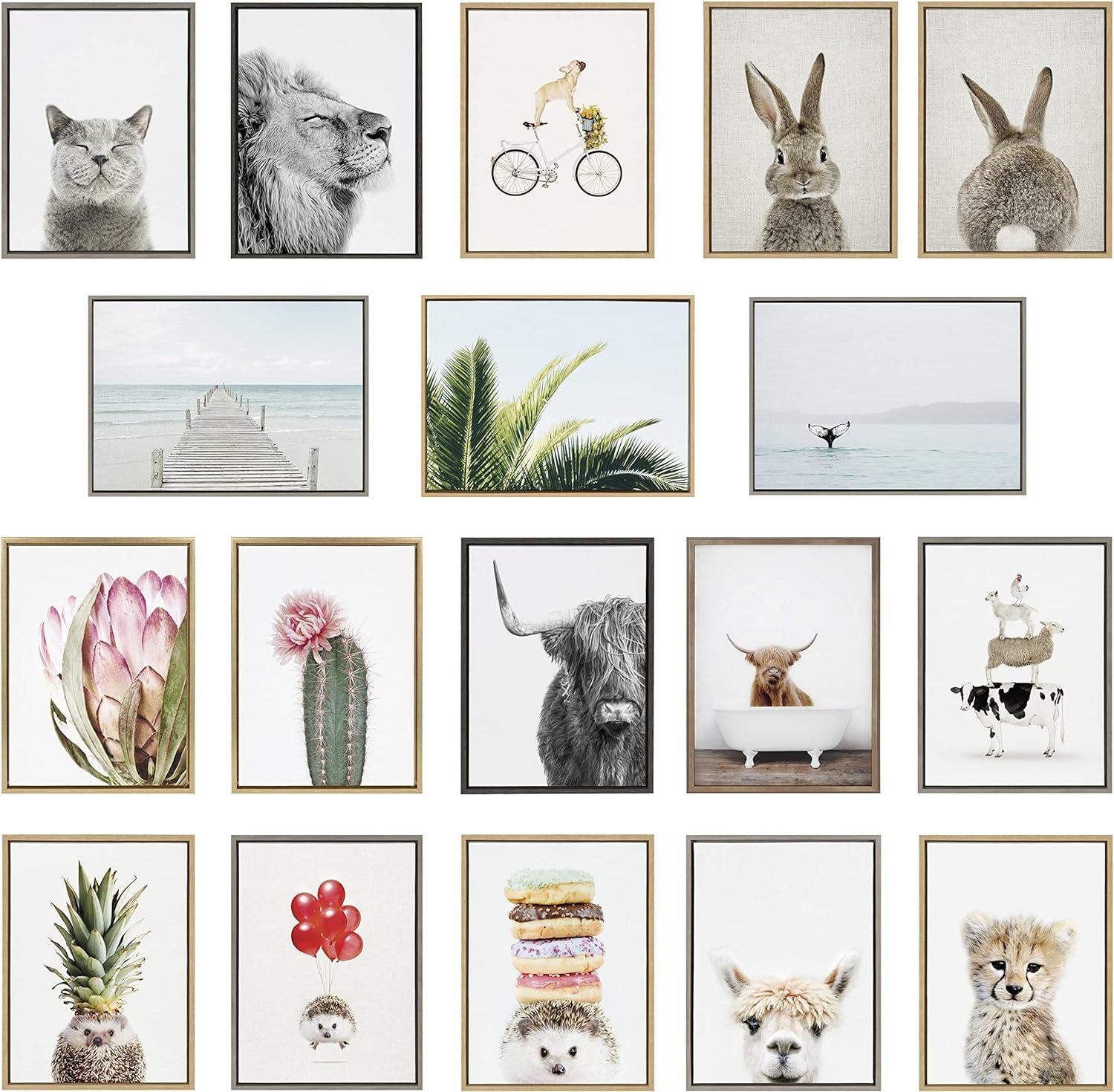 Transitional Canvas Wall Art Set: Adorable animal art set of 2 on solid framed high-quality gallery-wrapped canvas. Outside display dimensions are 18 inches by 24 inches for each canvas