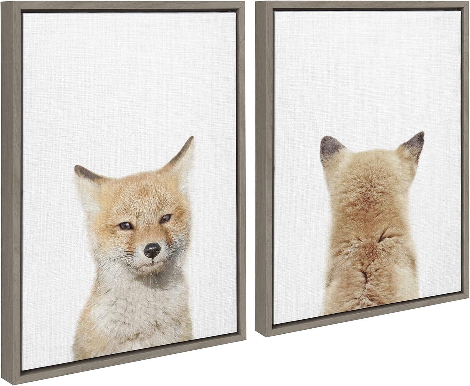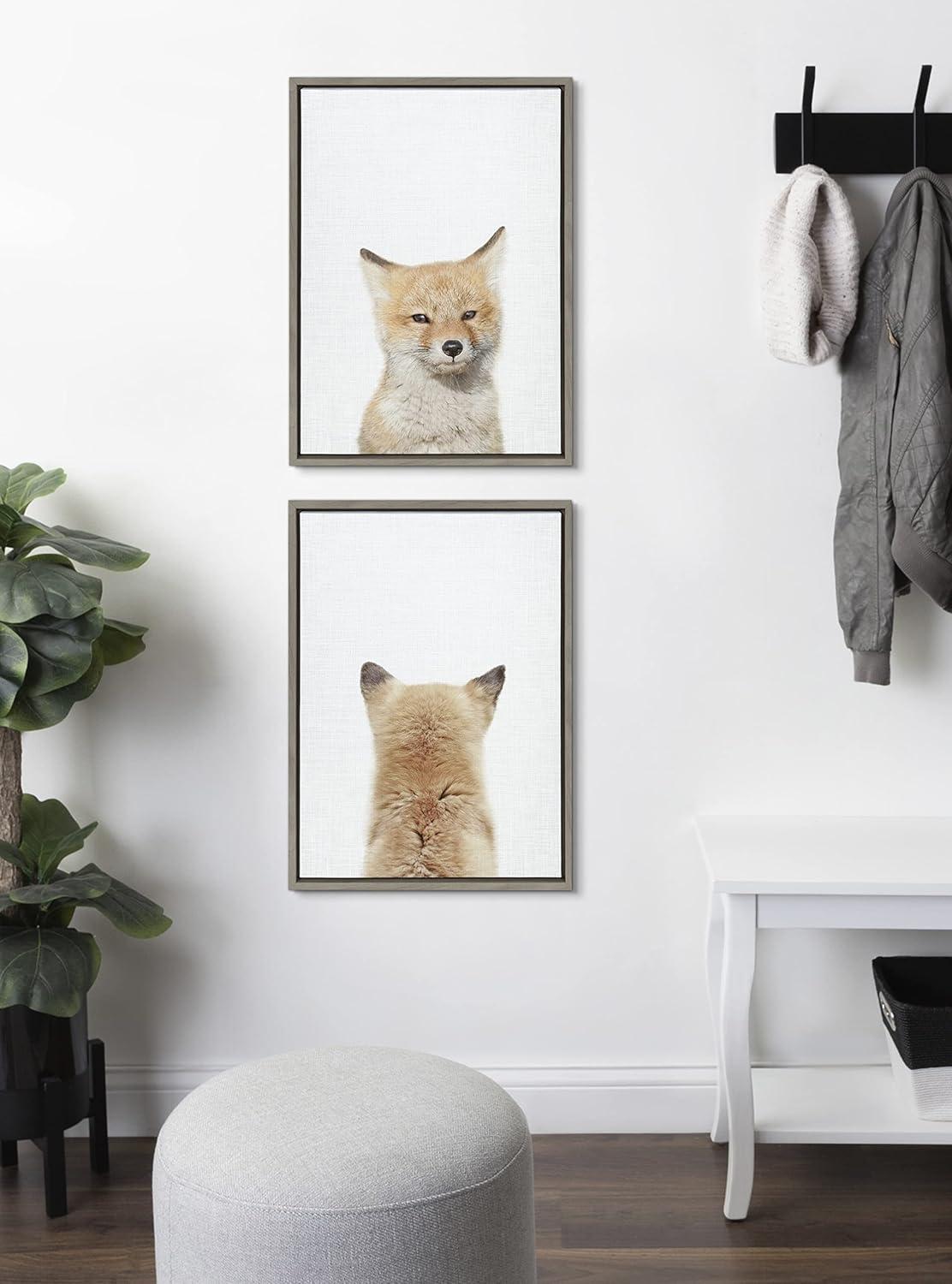 Kate and Laurel Sylvie Baby Fox Front and Back Framed Canvas Wall Art Set by Amy Peterson Art Studio, 2 Piece Set 18×24 Gray, Decorative Adorable Animal Art Set Wall Décor