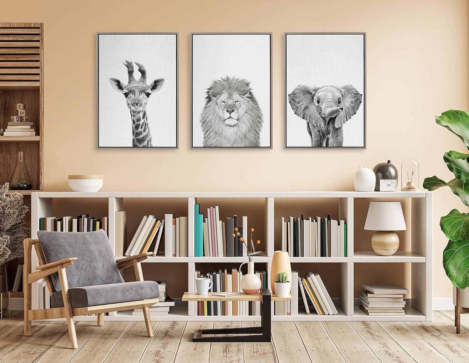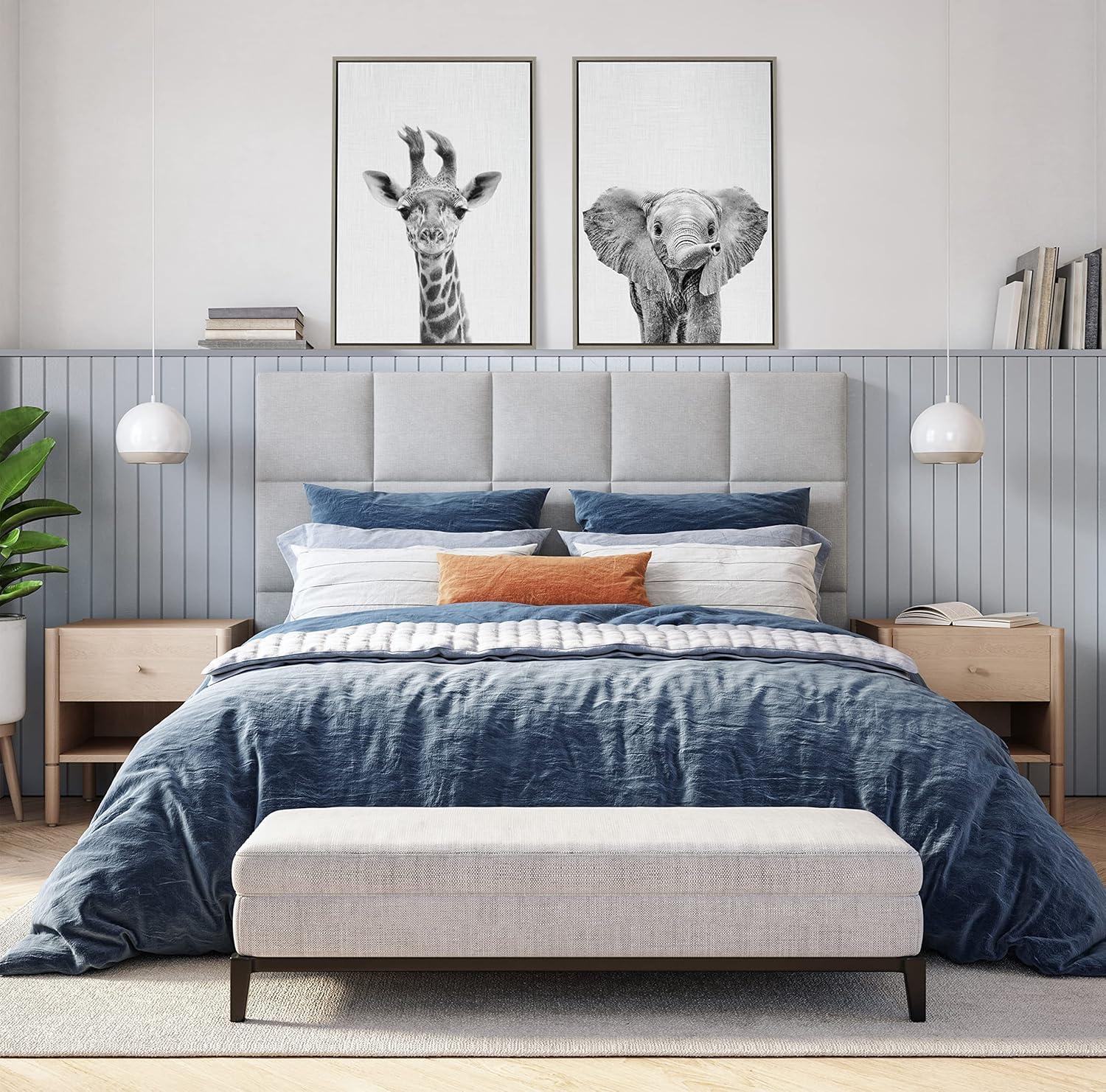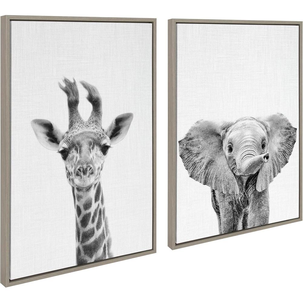 Kate and Laurel Sylvie Baby Giraffe and Elephant Framed Canvas Wall Art Set by Simon Te of Tai Prints, 2 piece 18x24 Natural, Modern Nature Animals Art for Wall Home Decor(Gray)