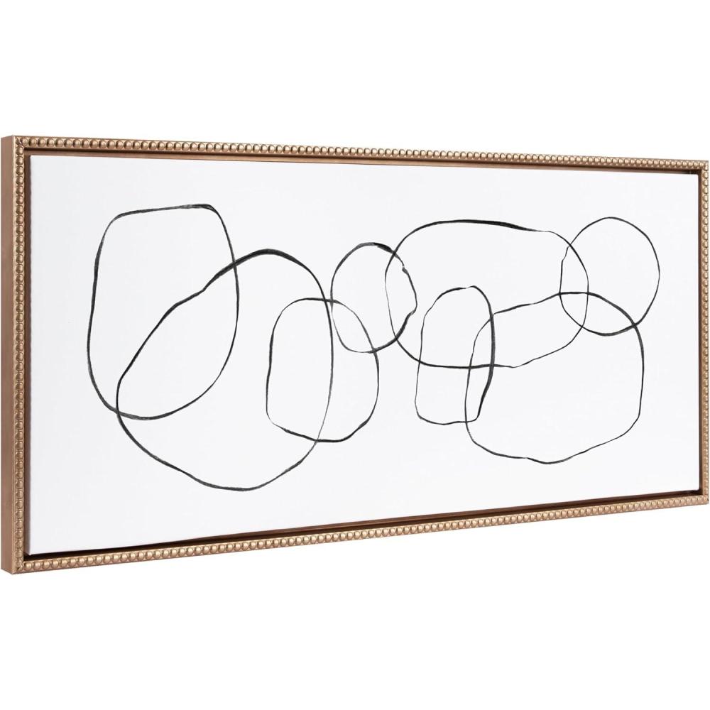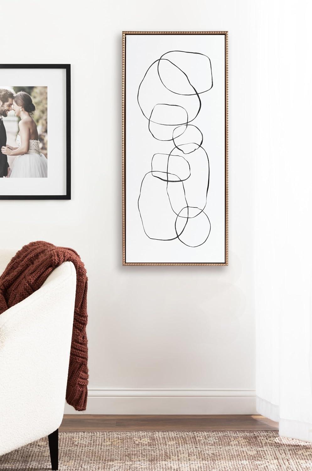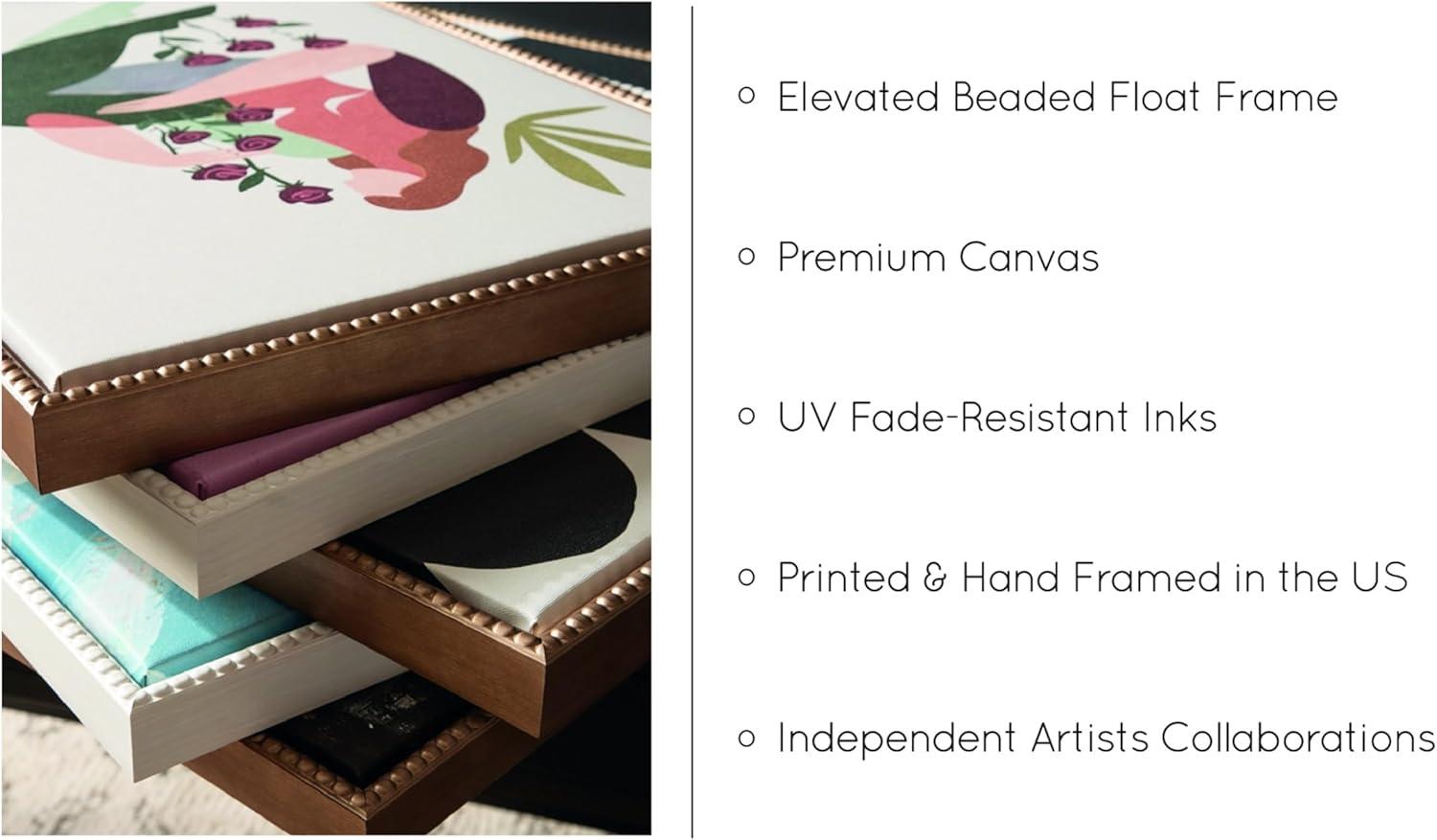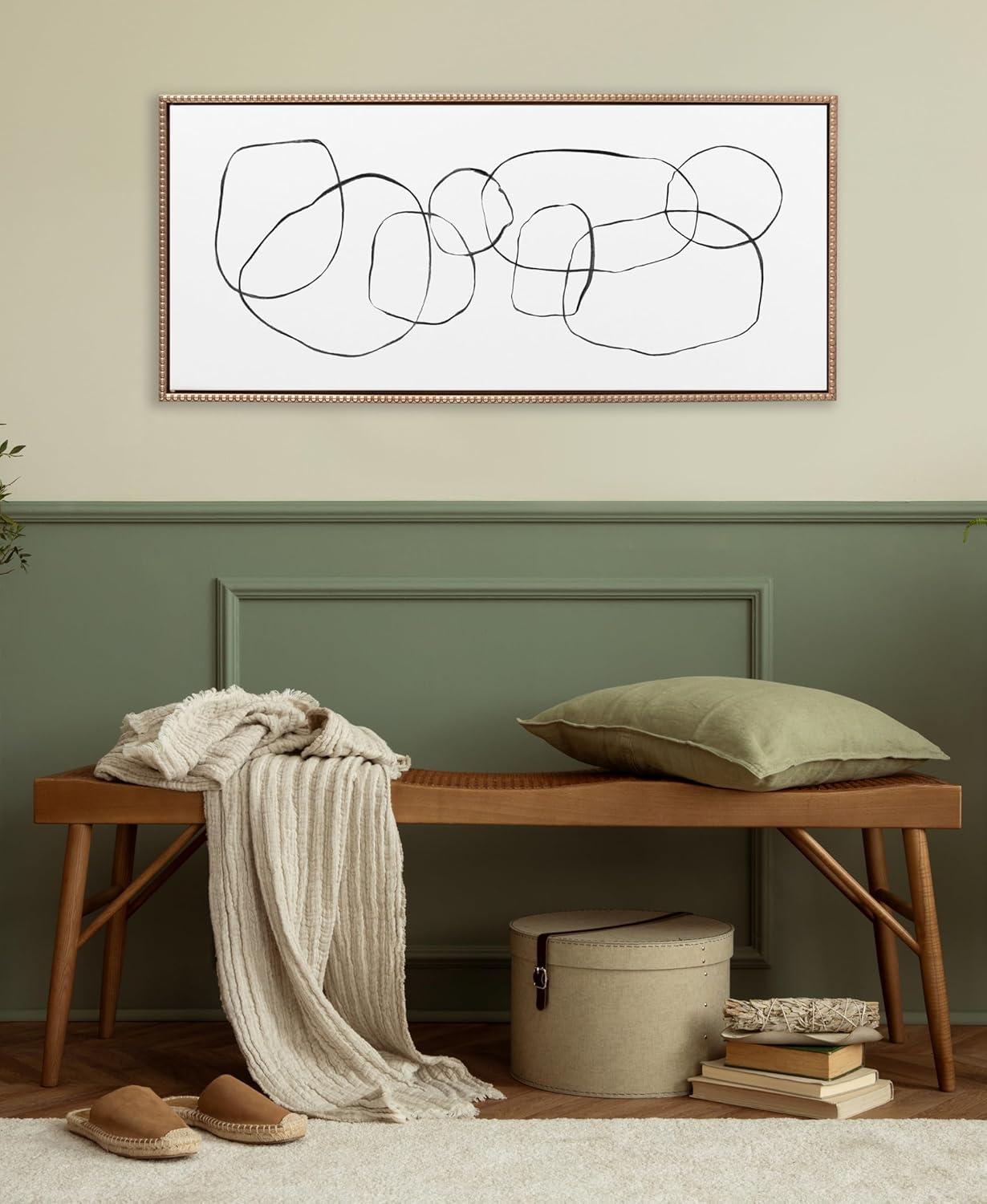 Add a modern abstract touch to your space with this delightful geometric art piece by Teju Reval of SnazzyHues. These dancing circles give your walls great texture and dimension. Framed in the USA in Waunakee, Wisconsin, this traditional floating canvas art is sure to bring joy to your space. Featuring our charming beaded frame, this art piece can fully embrace the vintage décor scheme without overwhelming the artwork or the rest of your home decor. This antique look is great for someone seeking a unique frame style to elevate their living room décor or their bedroom décor aesthetic. Our design team curates art that will fit perfectly in any room of your home. We create living room art wall decor, bedroom art wall décor, home office art wall décor, kitchen art wall décor, bathroom wall art décor, nursery wall art décor, or anywhere you want to bring a little beauty and charm to your walls. Specializing in home décor, we are continually bringing timeless works of art for the traditional decorator as well as trend-forward pieces for that eclectic art lover. Our high-quality framed canvas art also makes excellent gifts for birthdays, holidays, or housewarming parties. Printed on gallery-wrapped canvas and framed with a simple gallery frame this wall art is easy to display on the wall and will match with any décor style. The outer dimensions are 18 inches by 40 inches by 1.6 inches. Print Name: “Dancing Circles”