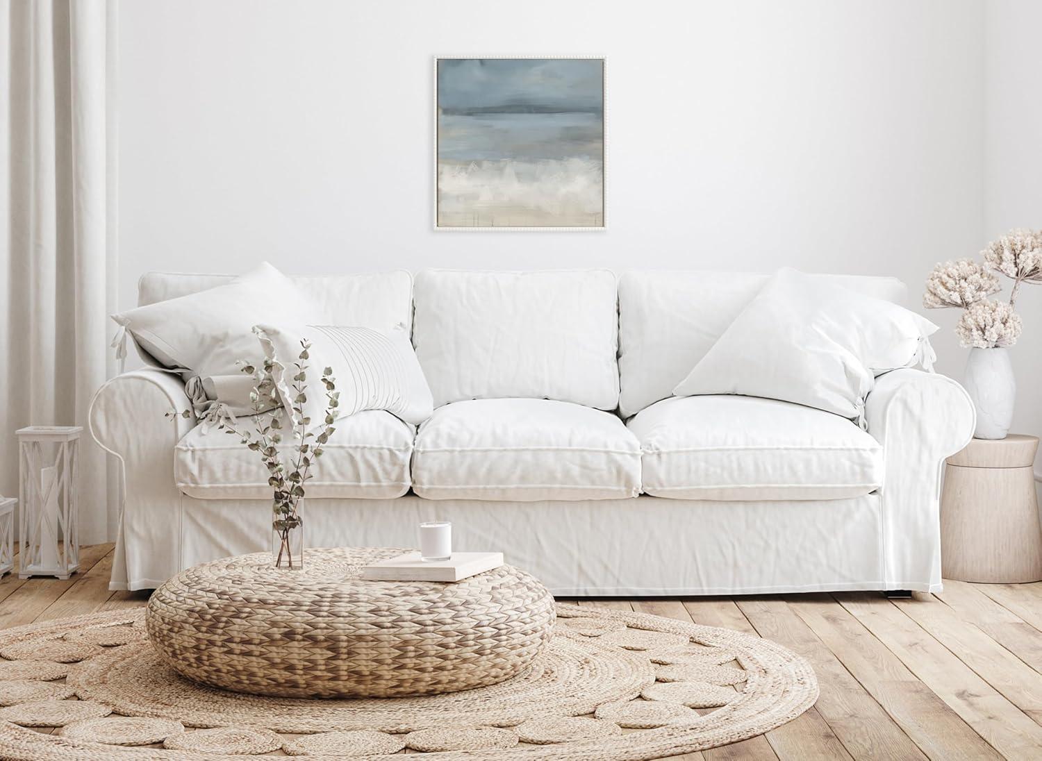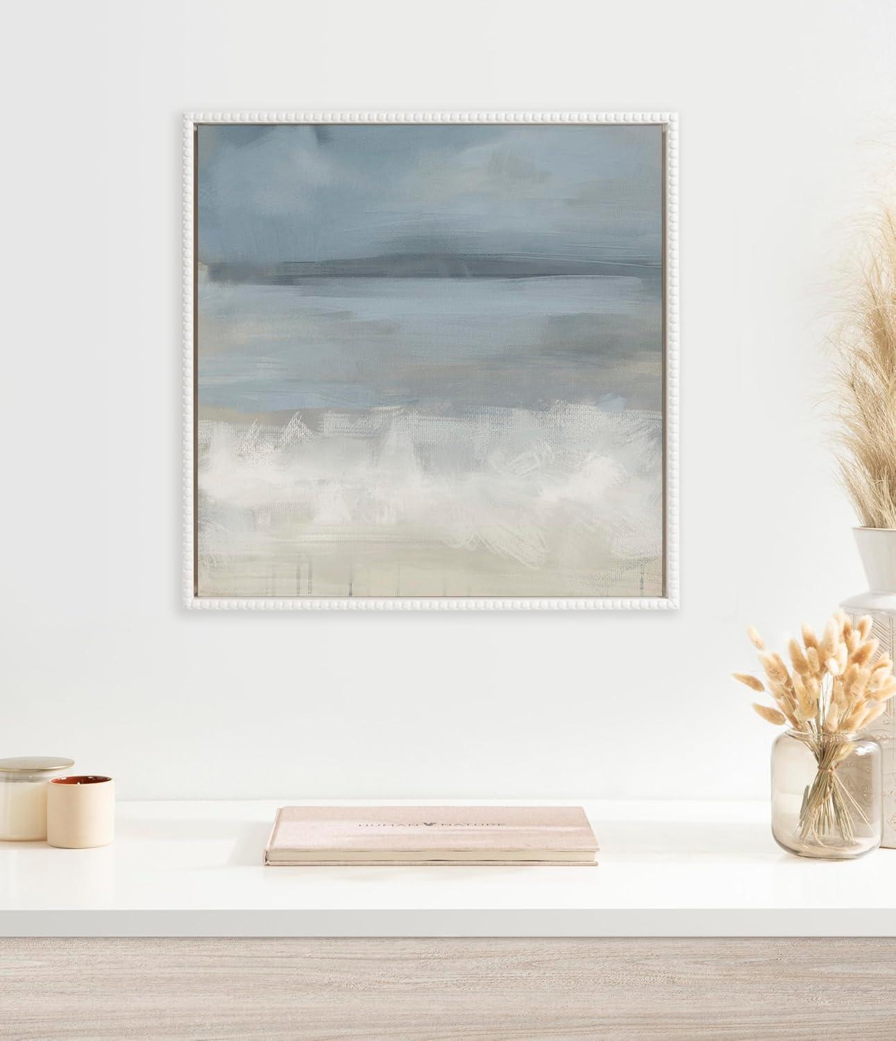 This canvas wall art by Mary Sparrow features a soft abstract landscape in calming blue tones, perfect for adding tranquility to any space. The gentle hues and delicate brushstrokes create a serene atmosphere, ideal for bedrooms or living rooms. Framed in the USA in Waunakee, Wisconsin, this traditional floating canvas art is sure to bring joy to your space. Featuring our charming beaded frame, this art piece can fully embrace the vintage décor scheme without overwhelming the artwork or the rest of your home decor. This antique look is great for someone seeking a unique frame style to elevate their living room décor or their bedroom décor aesthetic. Our design team curates art that will fit perfectly in any room of your home. We create living room art wall decor, bedroom art wall décor, home office art wall décor, kitchen art wall décor, bathroom wall art décor, nursery wall art décor, or anywhere you want to bring a little beauty and charm to your walls. Specializing in home décor, we are continually bringing timeless works of art for the traditional decorator as well as trend-forward pieces for that eclectic art lover. Our high-quality framed canvas art also makes excellent gifts for birthdays, holidays, or housewarming parties. Printed on gallery-wrapped canvas and framed with a simple gallery frame this wall art is easy to display on the wall and will match with any décor style. The outer dimensions are 22 inches by 22 inches by 1.6 inches. Print Name: “The Blues”