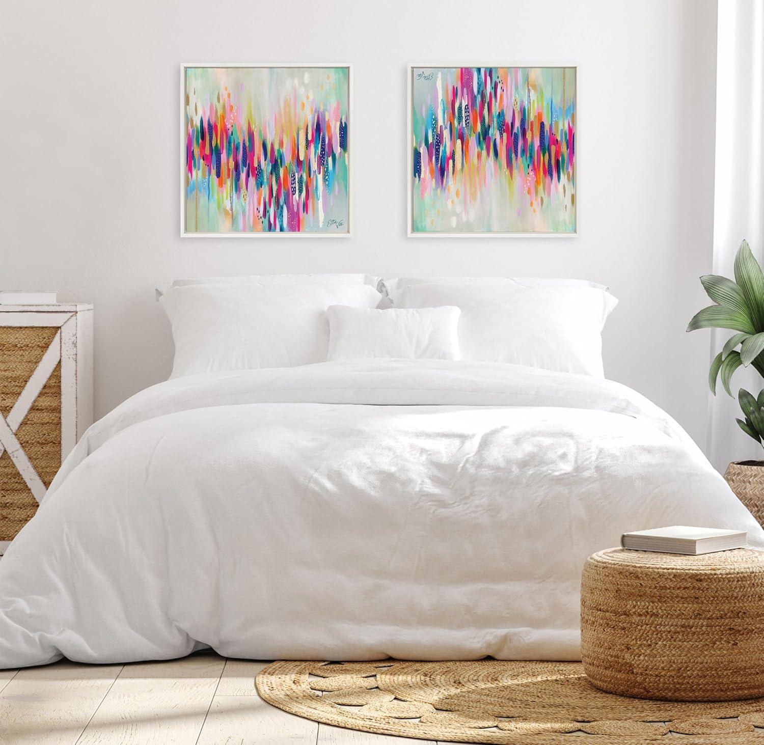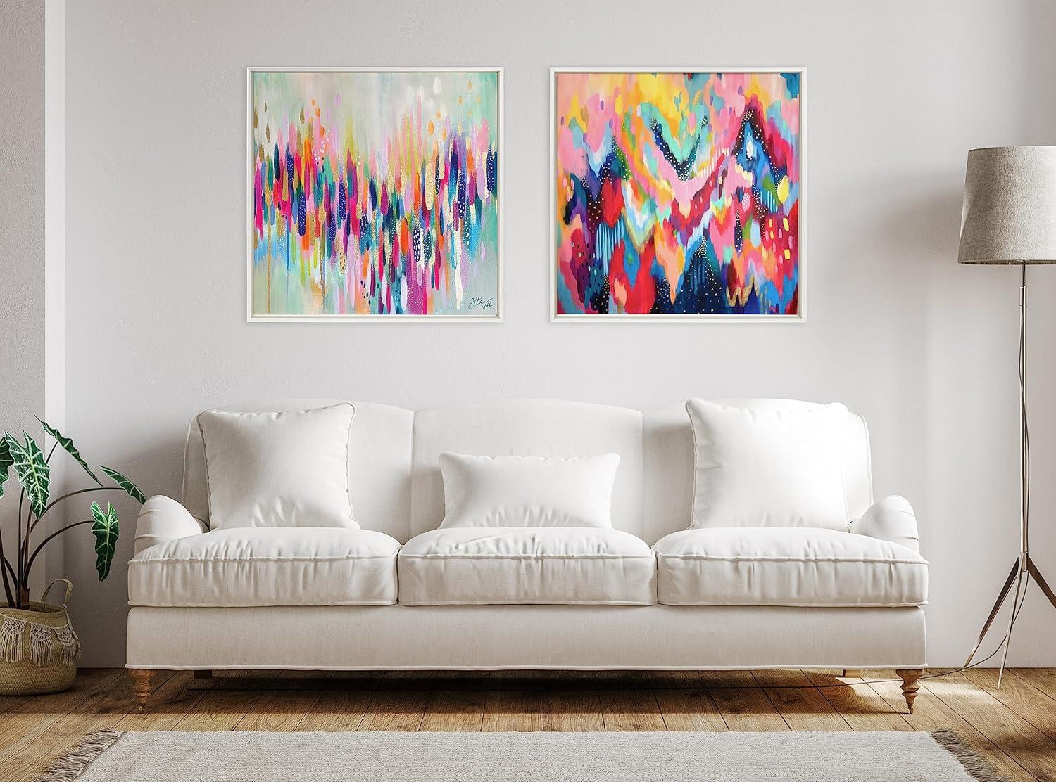 imageKate and Laurel Sylvie Brushstroke 154 Framed Canvas Wall Art by EttaVee 22x22 White Modern Abstract Colorful Fun Art for WallWhite