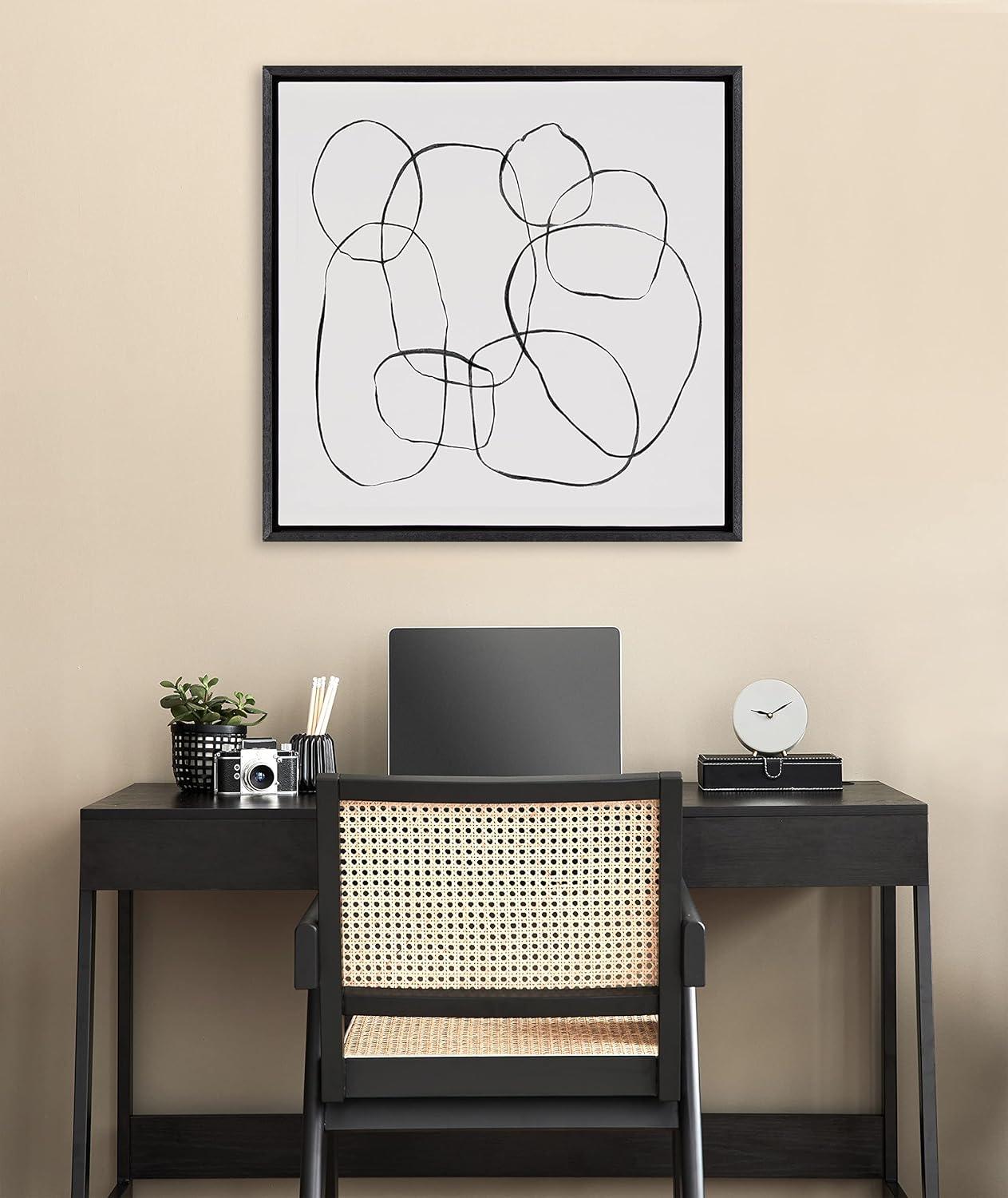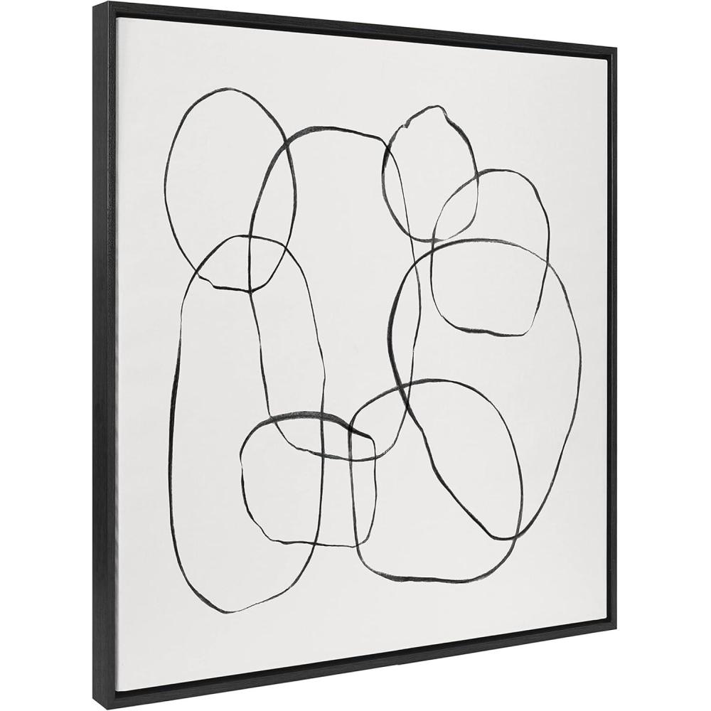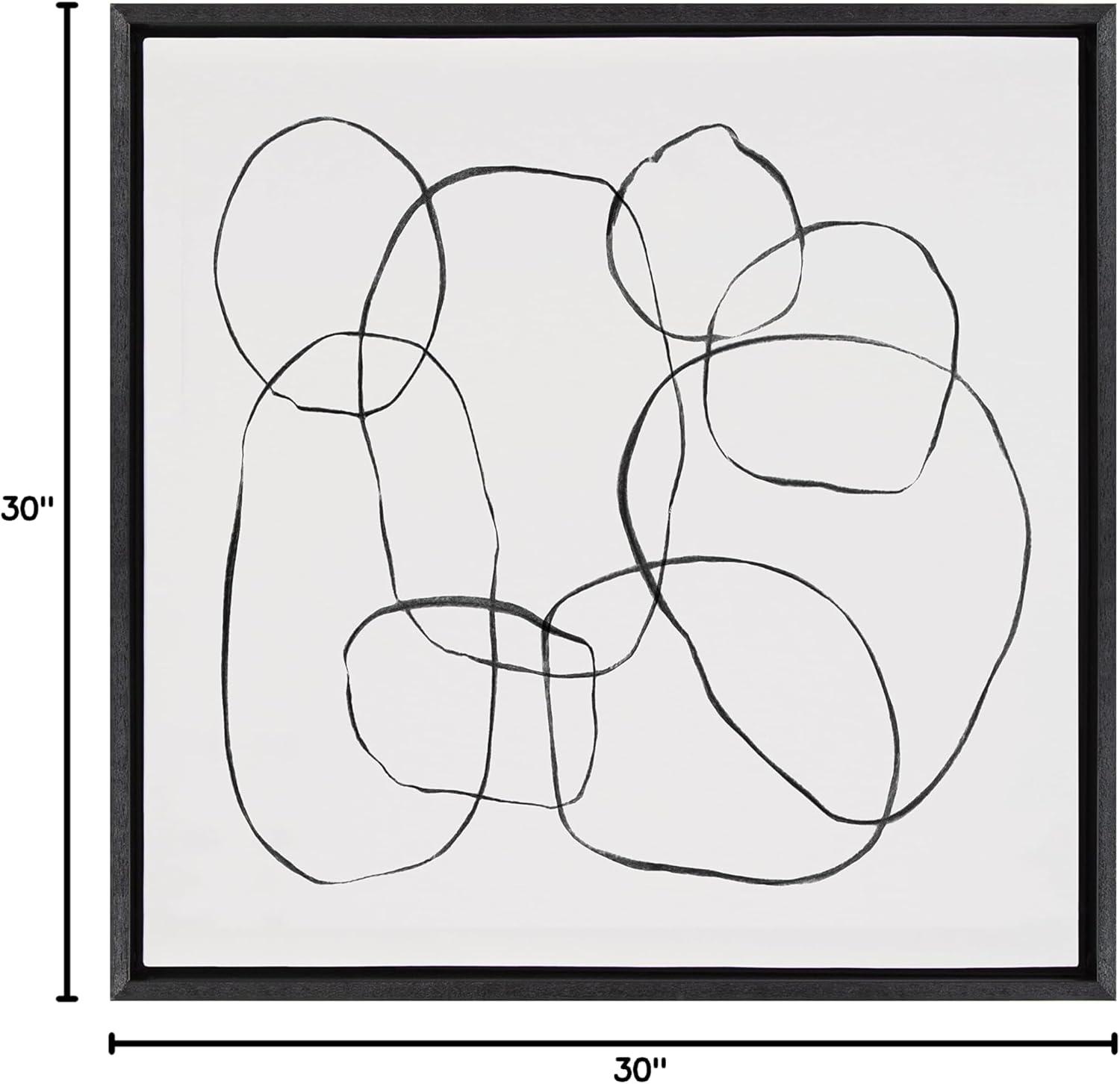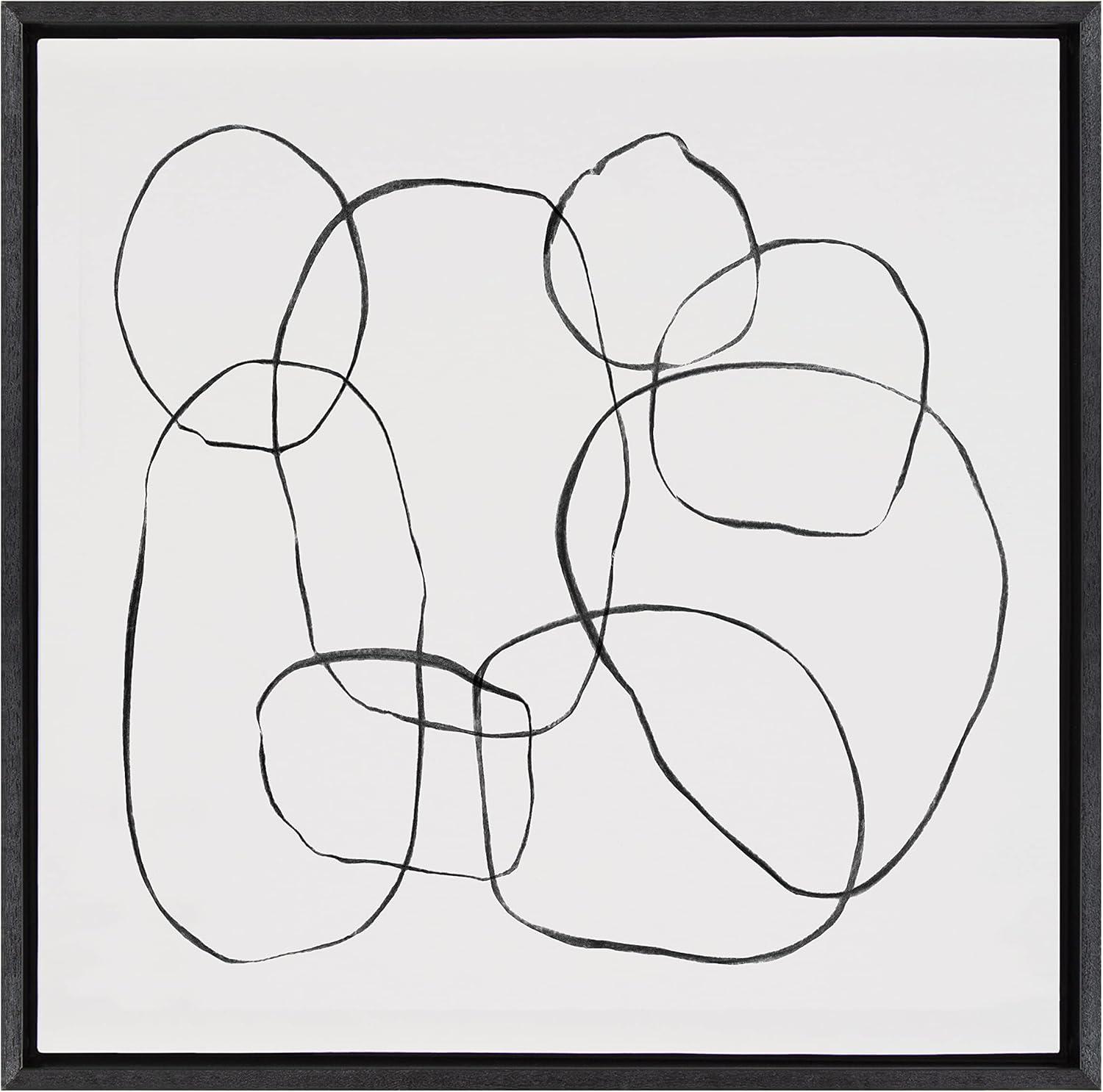 Introduce a modern style to your home with this classic abstract art print. The neutral color tones and simplistic shapes make this the perfect minimalist abstract that your home needs. Framed in the USA in Waunakee, Wisconsin, this floating canvas art will be a pleasure to look at every day in your living room, bedroom, nursery, or any room in the home. This art print also makes an excellent gift for birthdays, holidays, or house-warming parties. Printed on gallery-wrapped canvas and framed with a lightweight polystyrene frame, this wall art is easy to display on the wall. The outer dimensions are 30 inches by 30 inches by 1.6 inches. Print Name: “Dancing Circles Black and Soft White”