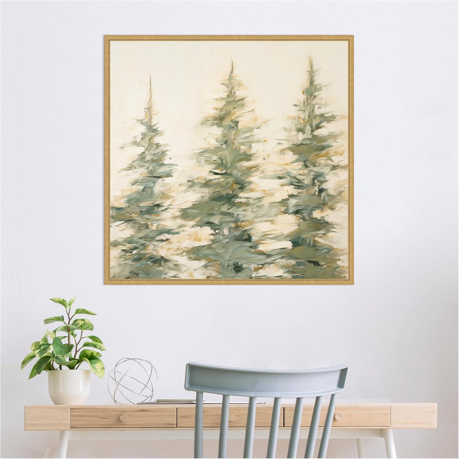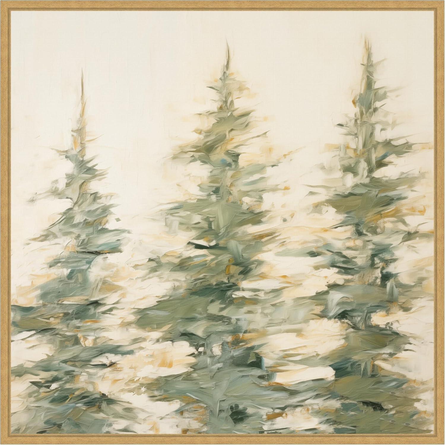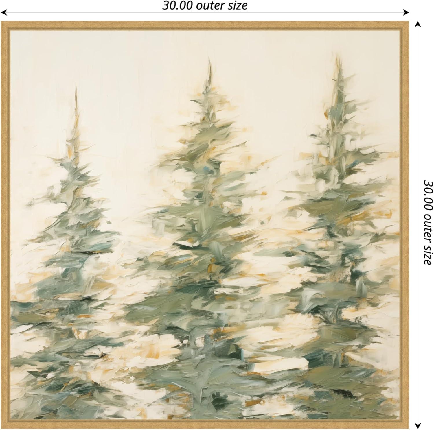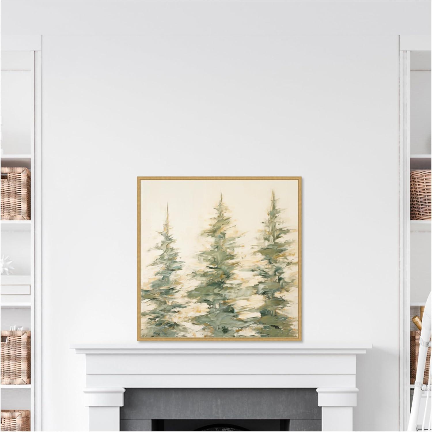 Kate and Laurel Sylvie Evergreen Trees Abstract Framed Canvas Wall Art by The Creative Bunch Studio 30 x 30 Natural, Rustic Farmhouse, Landscapes, Nature Art for Wall Decor, Living Room, Bedroom(Bright Gold)