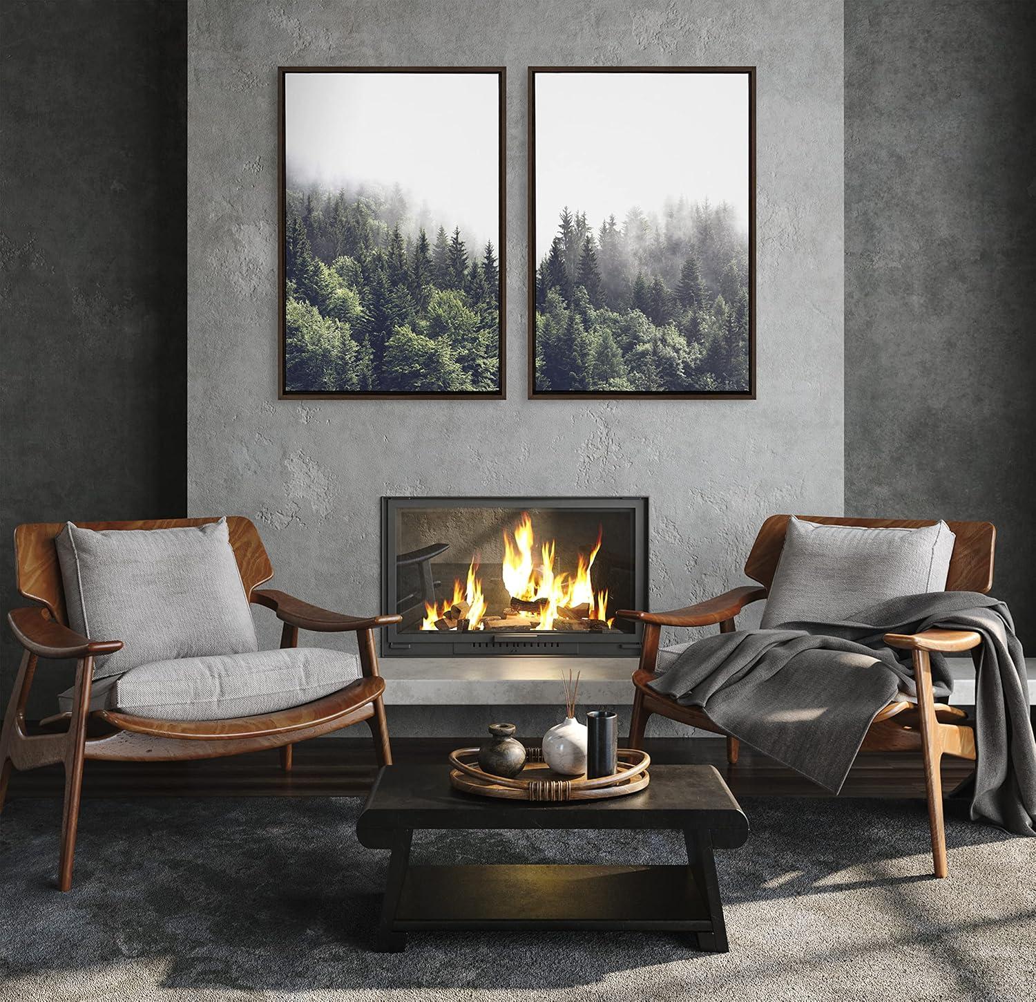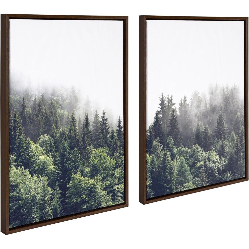 imageKate and Laurel Sylvie Lush Green Forest on a Foggy Day Left and Right Framed Canvas Wall Art Set by The Creative Bunch Studio 2 Piece 23x33 Brown Nature Mountains Forest Landscape Art Set for Wall