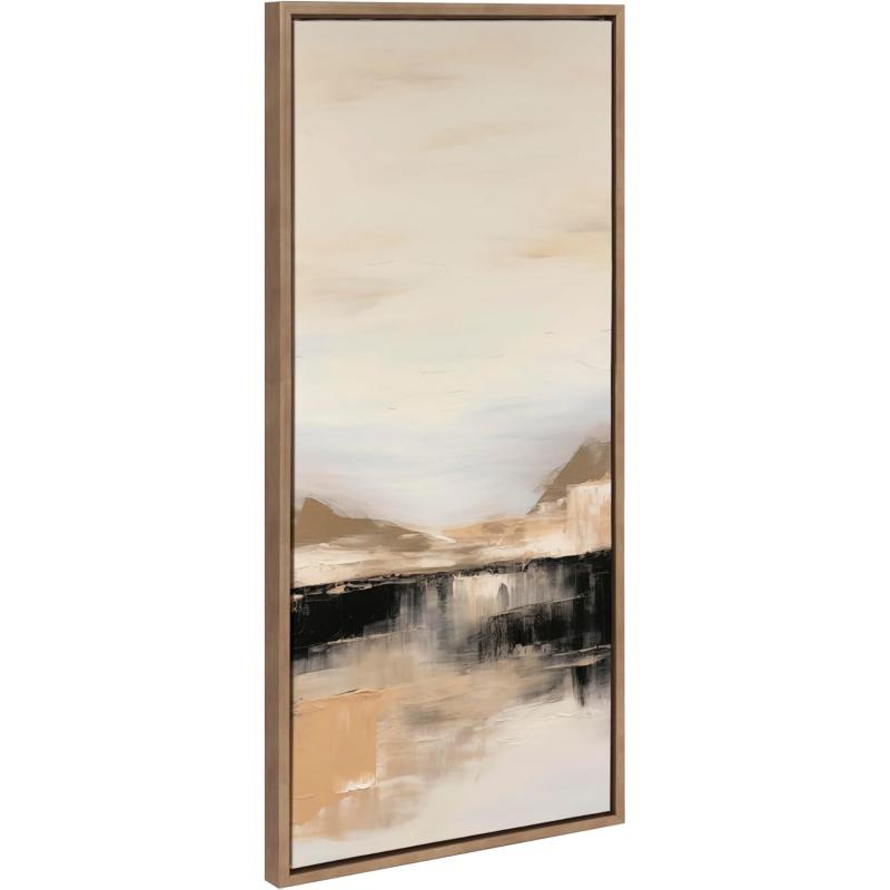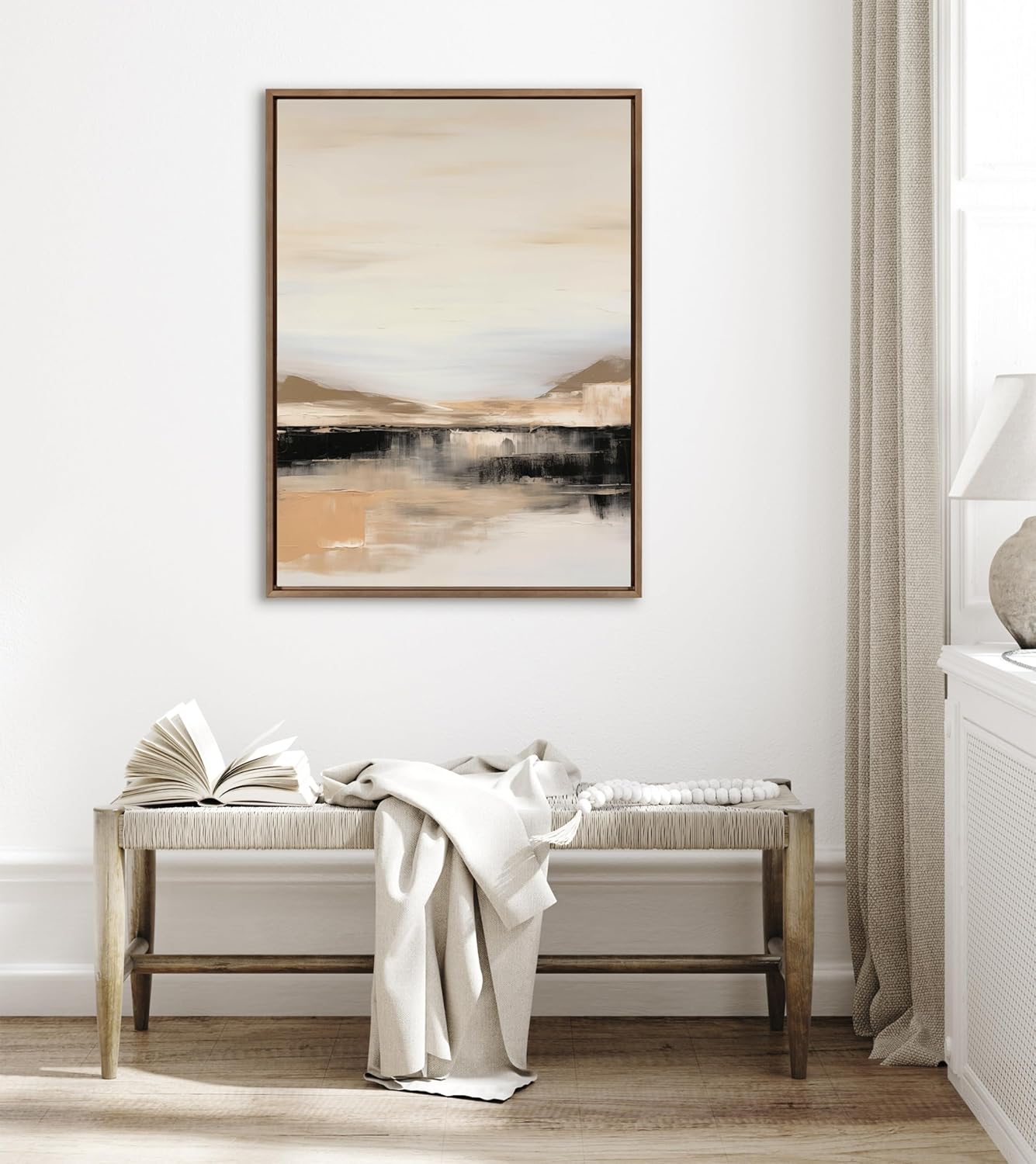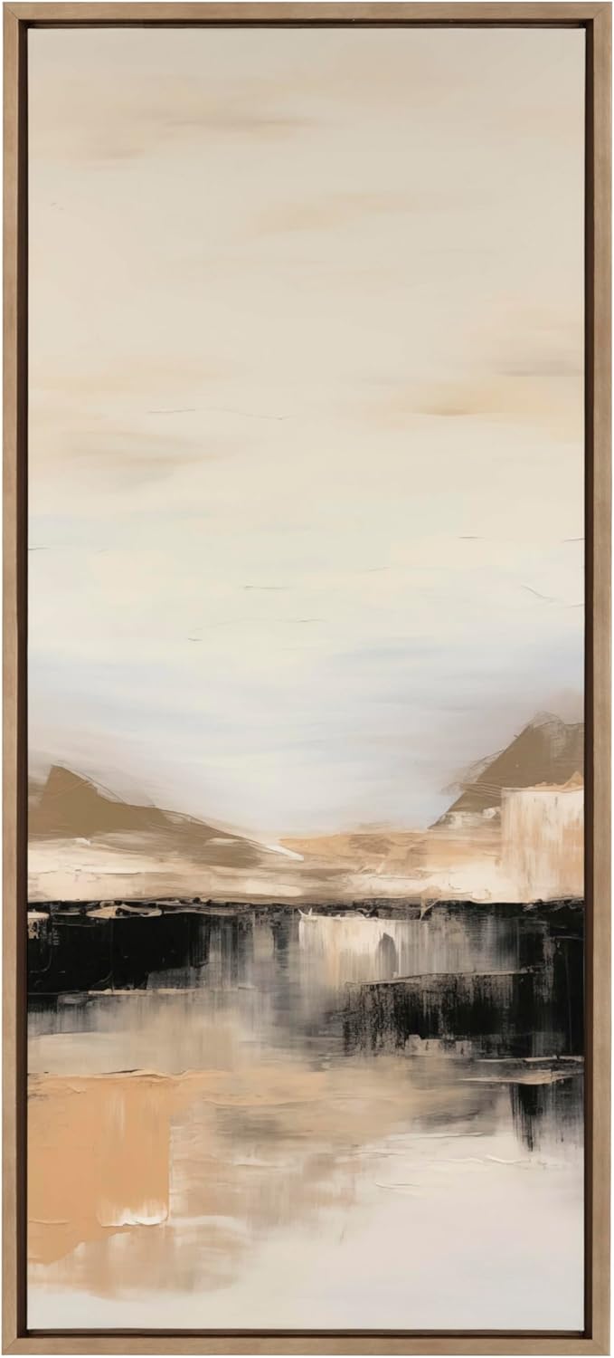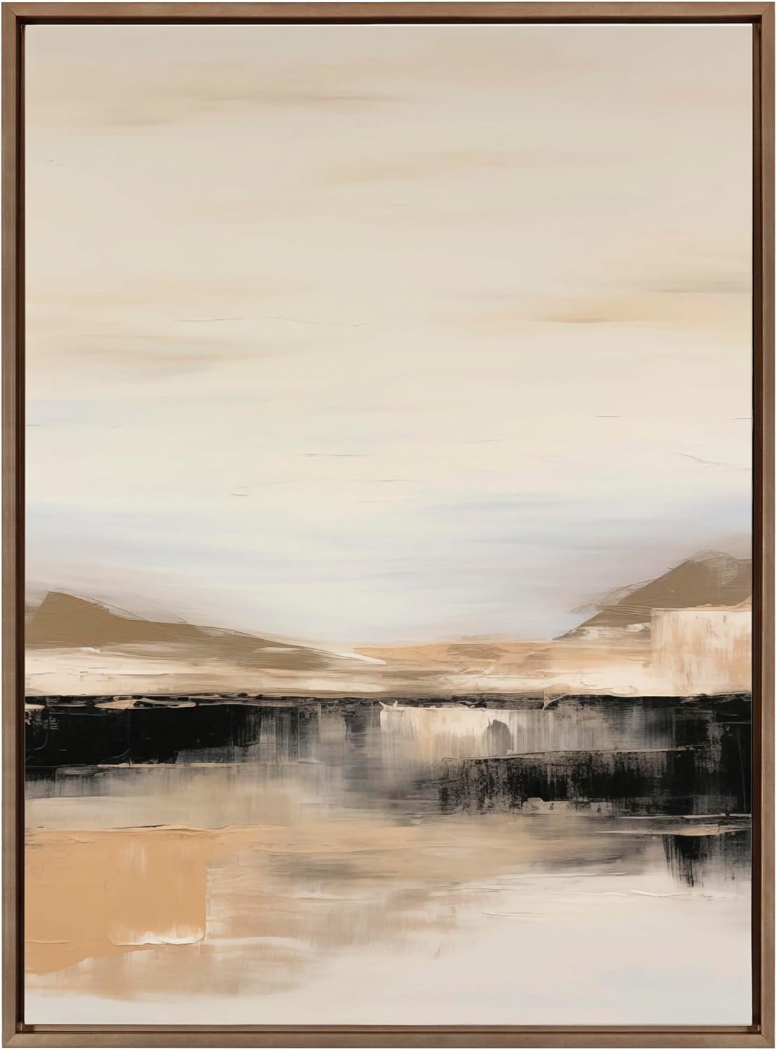 Experience the beauty of abstract landscapes with this serene artwork, featuring a peaceful vista rendered in subtle tones and gentle brushstrokes. Its minimalist design and modern aesthetic add a touch of sophistication to your decor, making it a versatile piece for complementing various interior styles. Framed in the USA in Waunakee, Wisconsin, this modern floating canvas art is sure to bring joy to your space. Our design team curates art that will fit perfectly in any room of your home. Showcase this art in your living room, bedroom, home office, kitchen, bathroom, nursery, or anywhere you want to bring a little beauty and charm to your walls. Specializing in home décor, we are continually bringing timeless works of art for the traditional decorator as well as trend-forward pieces for that eclectic art lover. Our high-quality framed canvas art also makes excellent gifts for birthdays, holidays, or housewarming parties. Printed on gallery-wrapped canvas and framed with a simple gallery frame this wall art is easy to display on the wall and will match with any décor style. The outer dimensions are 18 inches by 40 inches by 1.6 inches. Print Name: “Peaceful Landscape II”