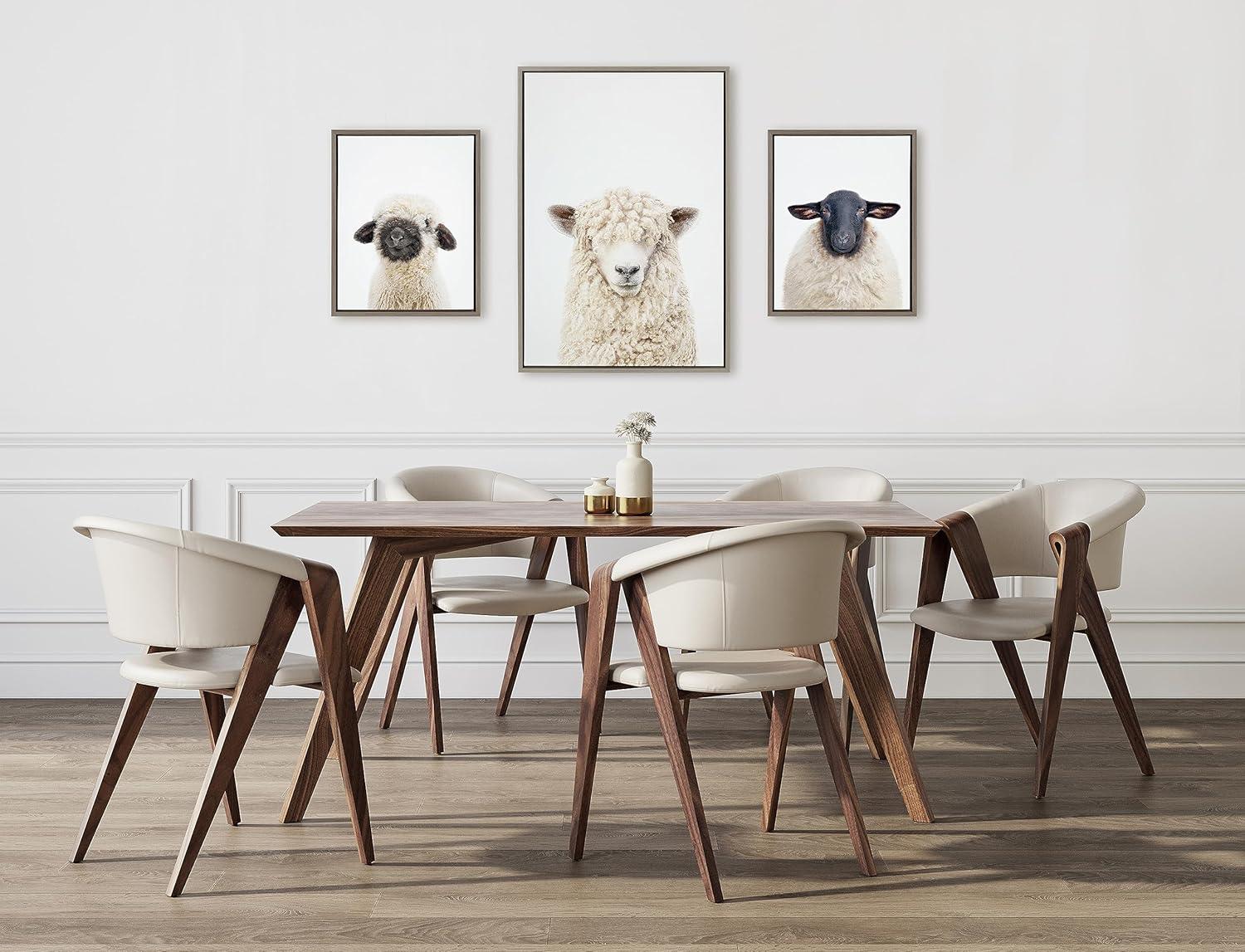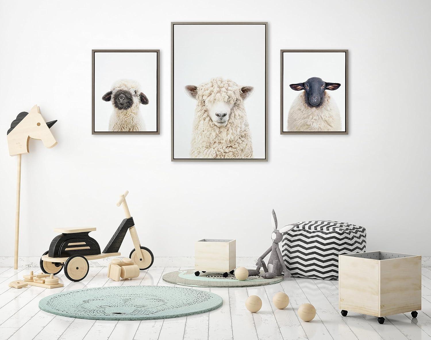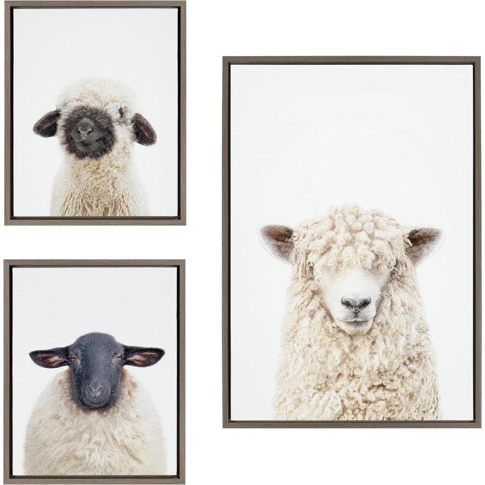 Add farmhouse charm to your space with this set of framed canvas art featuring sheep portraits. The diverse collection of artwork creates a heartwarming and rustic atmosphere. Framed in the USA in Waunakee, Wisconsin, this modern floating canvas art set of 3 is sure to bring joy to your space. Our design team curates art that will fit perfectly in any room of your home. Showcase this art in your living room, bedroom, home office, kitchen, bathroom, nursery, or anywhere you want to bring a little beauty and charm to your walls. Specializing in home décor, we are continually bringing timeless works of art for the traditional decorator as well as trend-forward pieces for that eclectic art lover. Our high-quality framed canvas art also makes excellent gifts for birthdays, holidays, or housewarming parties. Printed on gallery-wrapped canvas and framed with a simple gallery frame this wall art is easy to display on the wall and will match with any décor style. Display dimensions of the largest piece are 23 inches by 33 inches and the two smaller canvases are each 16 inches by 20 inches. Print Names: “Sheep Bangs Portrait, Animal Studio Black Nosed Sheep and Dorper Sheep”