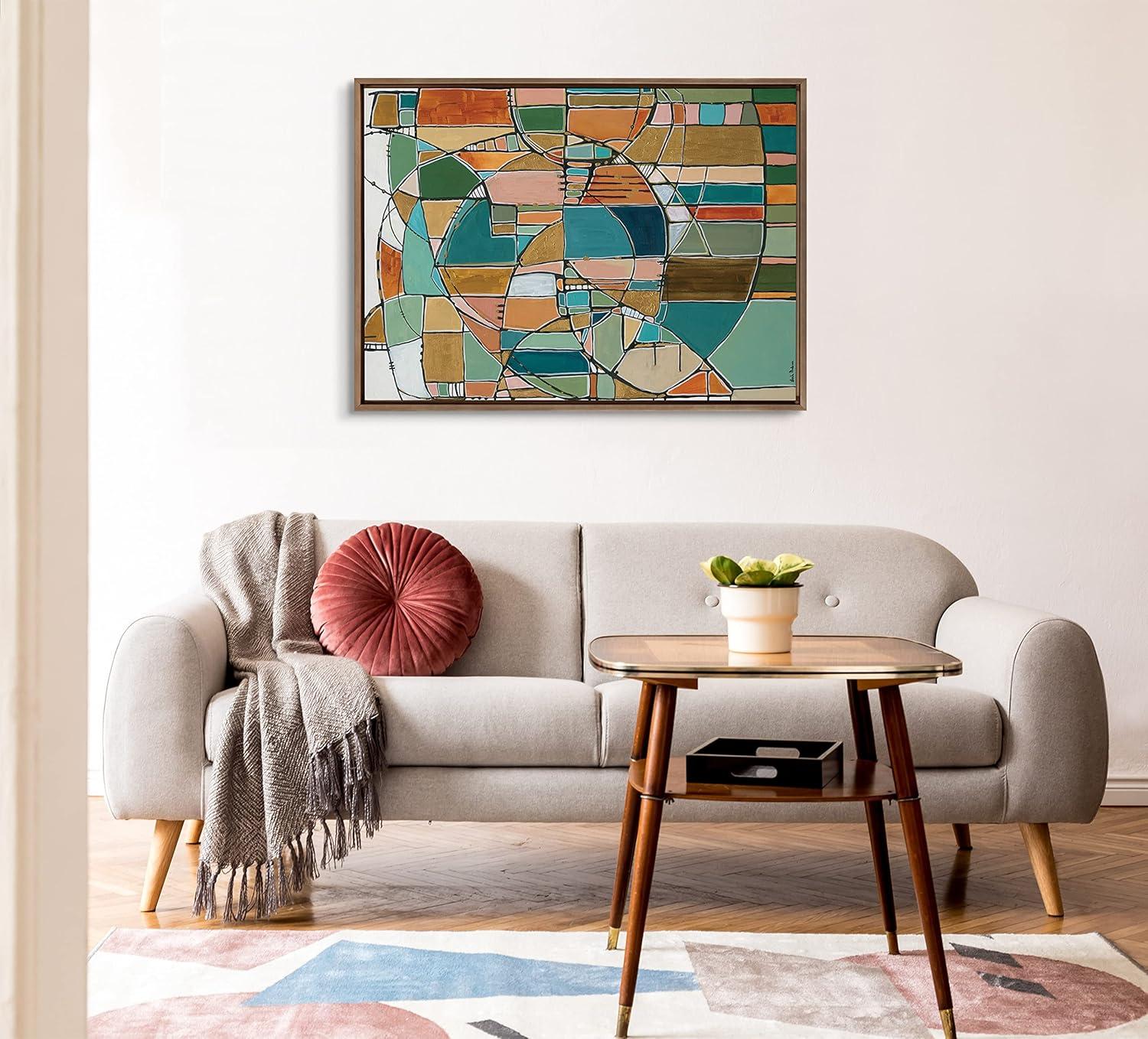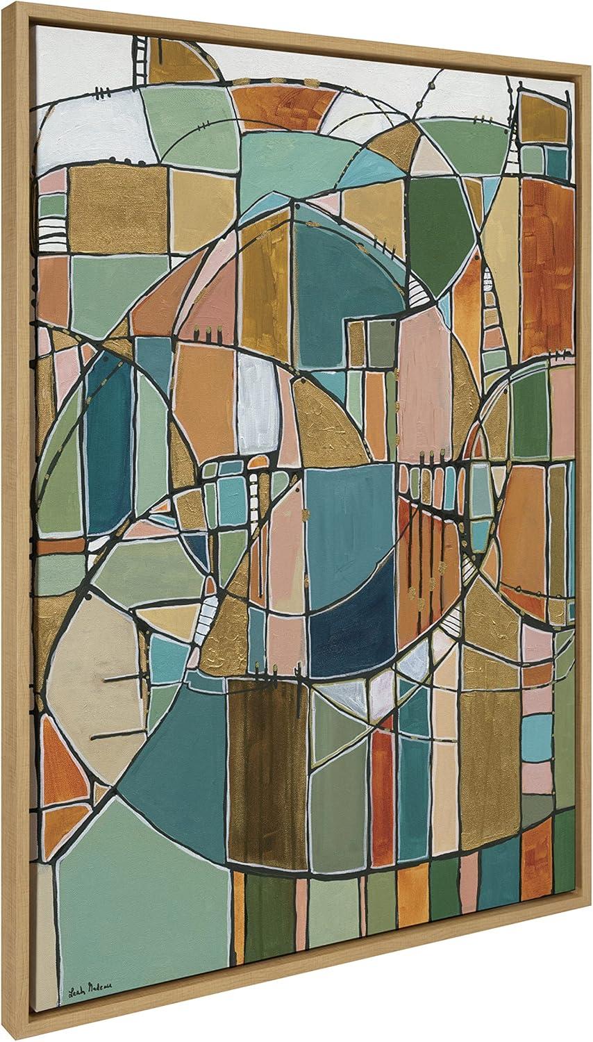 Kate and Laurel Sylvie Stardust Chords Framed Canvas Wall Art by Leah Nadeau; 28×38 Natural; Decorative Abstract Mosaic Inspired Art Print(Natural)
