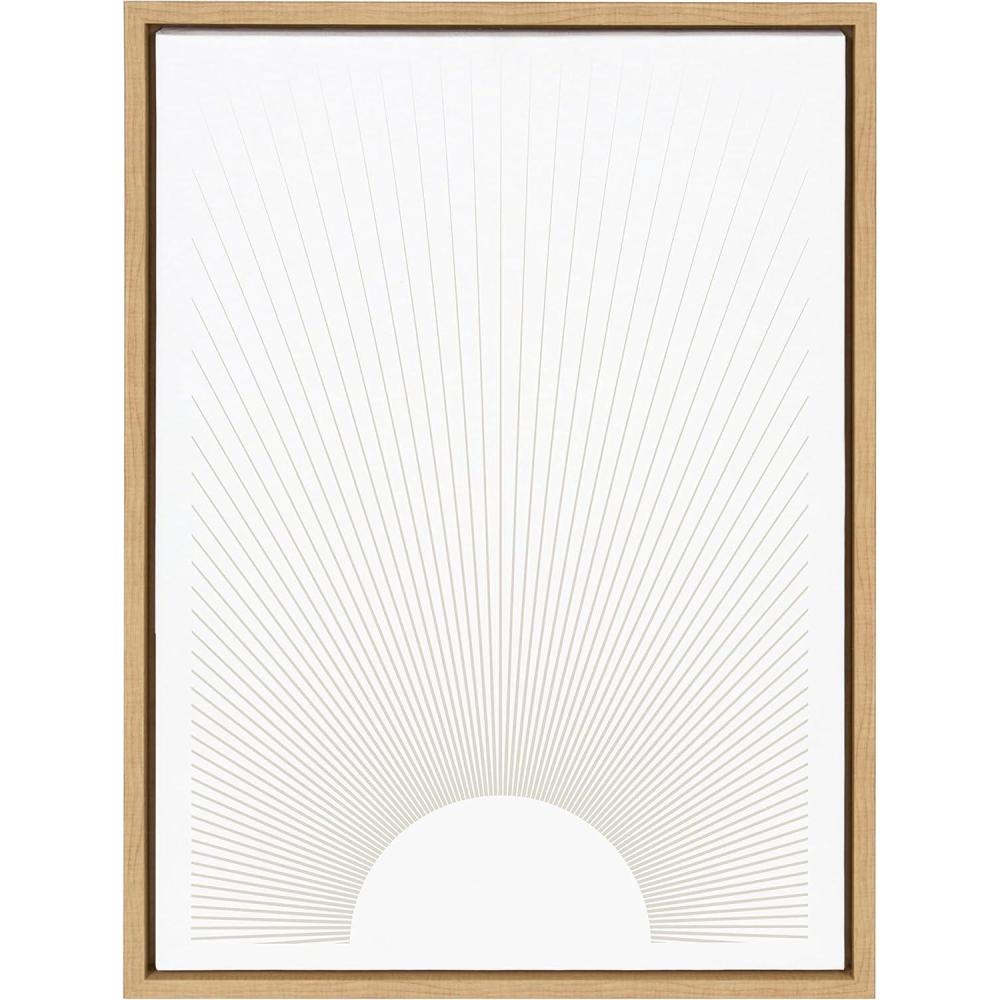 Add a chic, modern art piece to your home that frames a beautiful sunset within a minimalist, monochromatic print. Framed in the USA in Waunakee, Wisconsin, this floating canvas art will be a pleasure to look at every day in your living room, bedroom, office, or any room in the home that requires a minimal focal point. Printed on gallery-wrapped canvas and framed with a lightweight polystyrene frame, this wall art has two hangers already attached to the MDF back for easy wall display. The outer dimensions are 24 inches tall by 18 inches wide by 1.63 inches deep. Print Name: “Sun Rays”