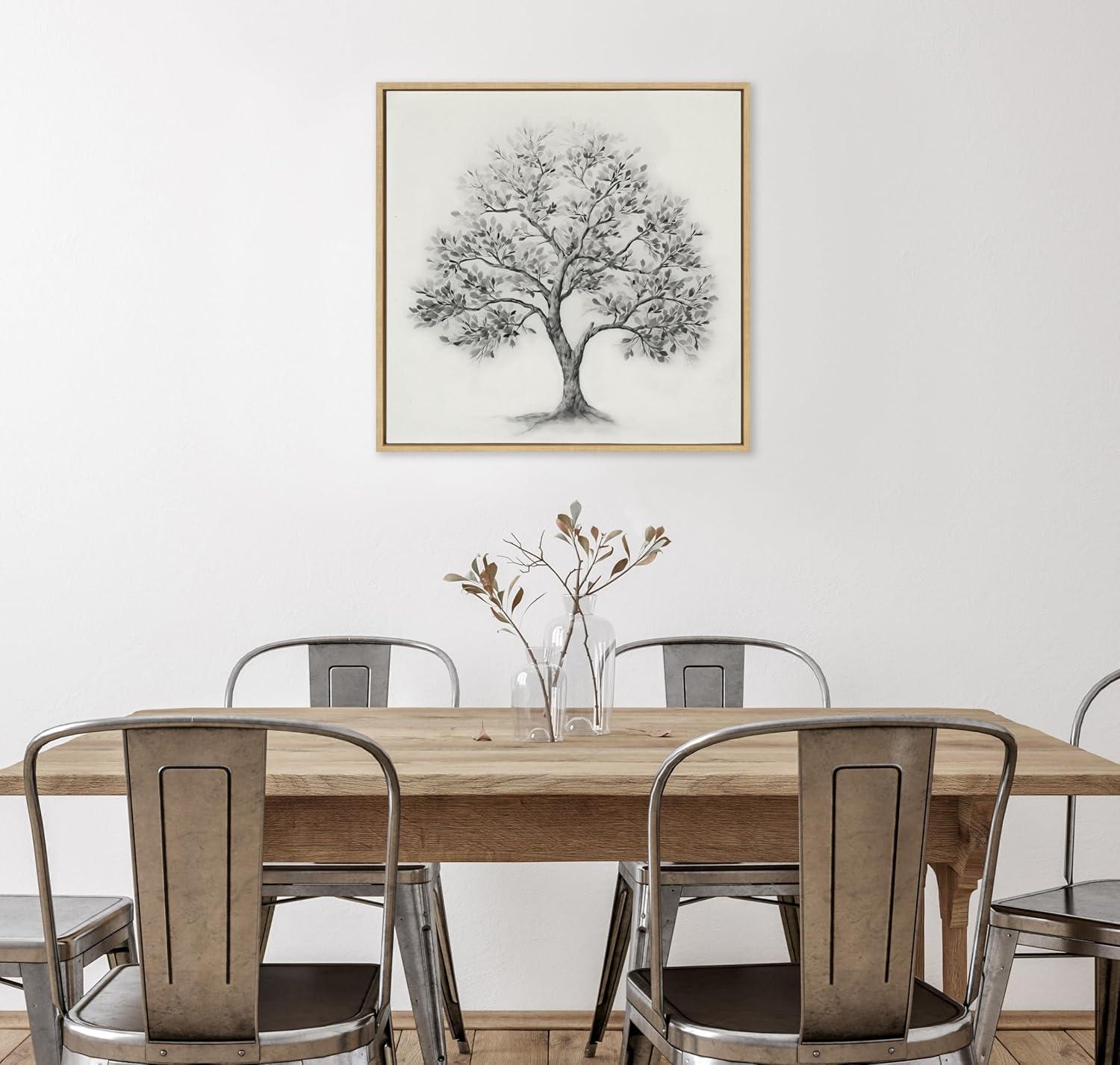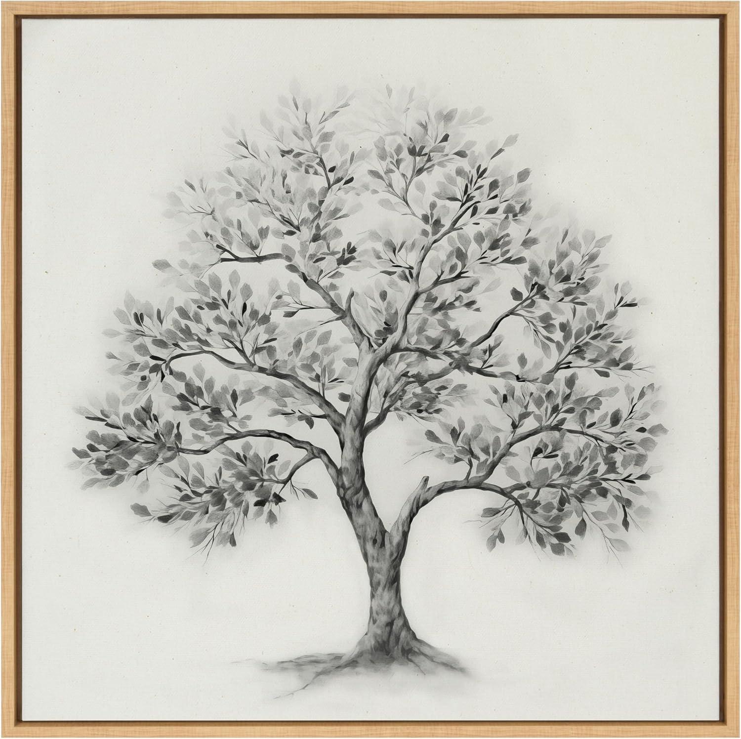 This elegant tree illustration features delicate details and a subtle linen-textured background for a timeless look. Its minimalist grayscale design brings a sense of balance and sophistication to any space. Framed in the USA in Waunakee, Wisconsin, this modern floating canvas art is sure to bring joy to your space. Our design team curates art that will fit perfectly in any room of your home. Showcase this art in your living room, bedroom, home office, kitchen, bathroom, nursery, or anywhere you want to bring a little beauty and charm to your walls. Specializing in home décor, we are continually bringing timeless works of art for the traditional decorator as well as trend-forward pieces for that eclectic art lover. Our high-quality framed canvas art also makes excellent gifts for birthdays, holidays, or housewarming parties. Printed on gallery-wrapped canvas and framed with a simple gallery frame this wall art is easy to display on the wall and will match with any décor style. The outer dimensions are 30 inches by 30 inches by 1.6 inches. Print Name: “Traditional Tree Linen Textured”